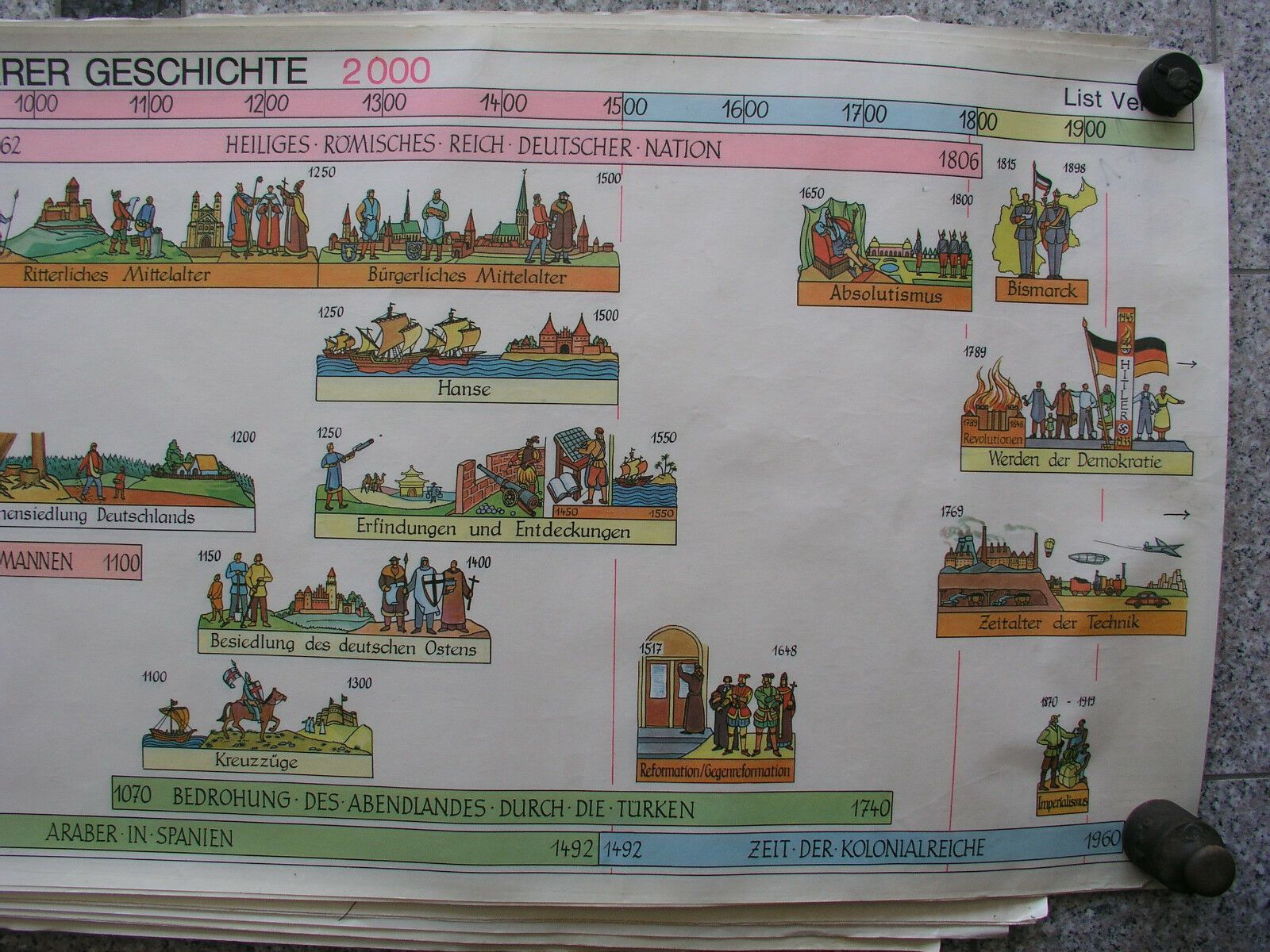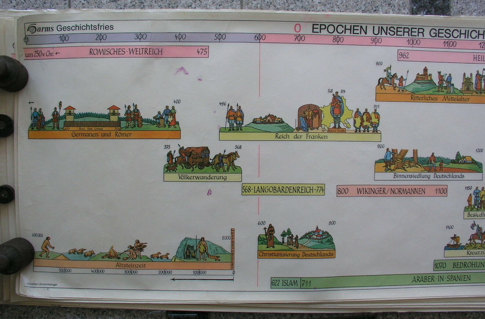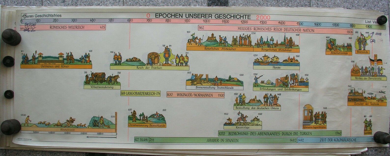 Wandbild Geschichtsfries Zeitepochen Ära 139x50 vintage history wall chart 1965