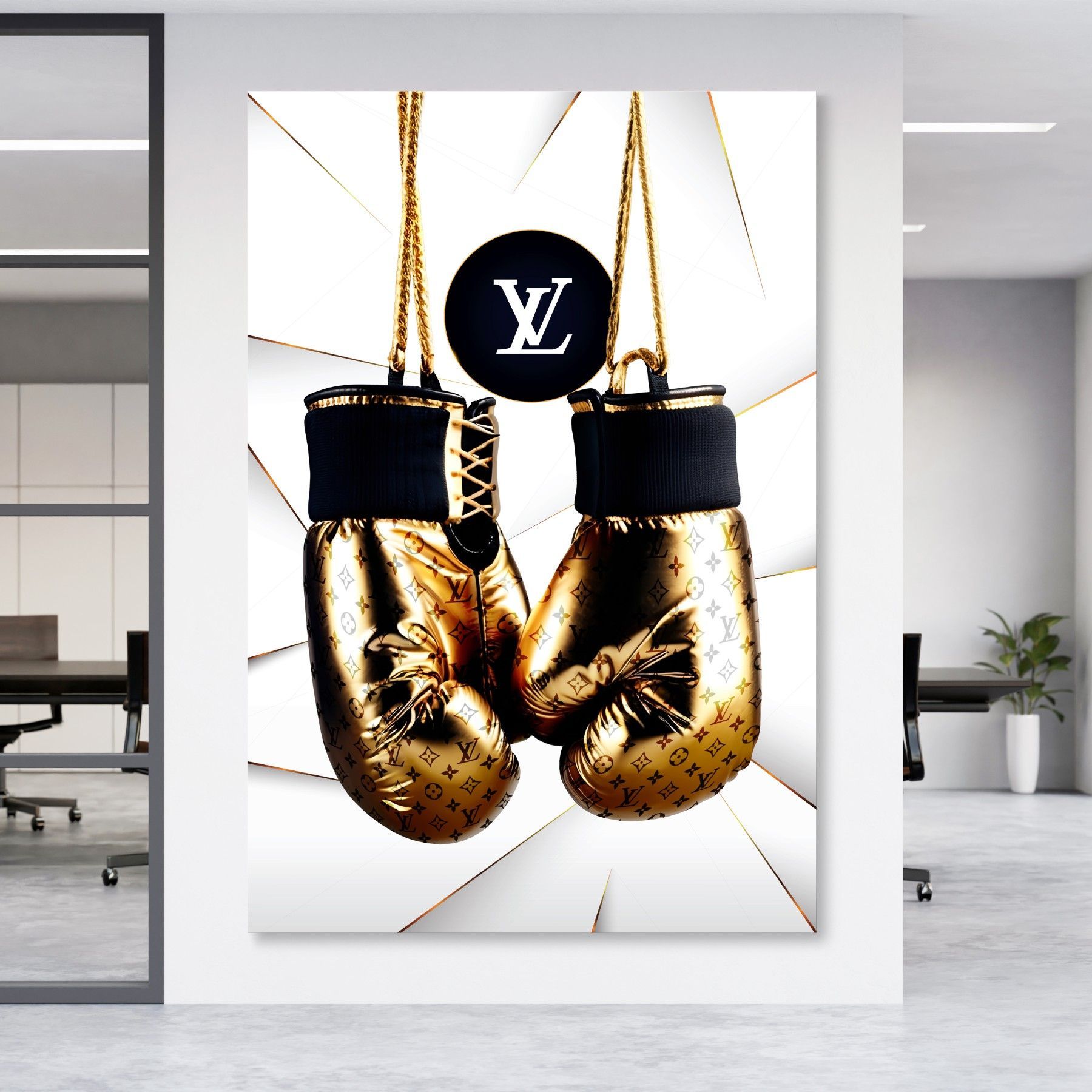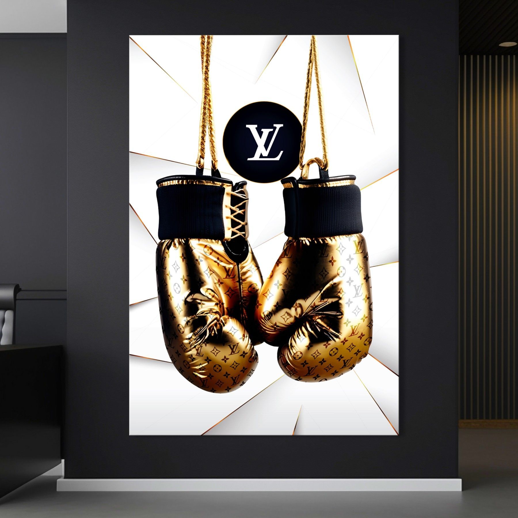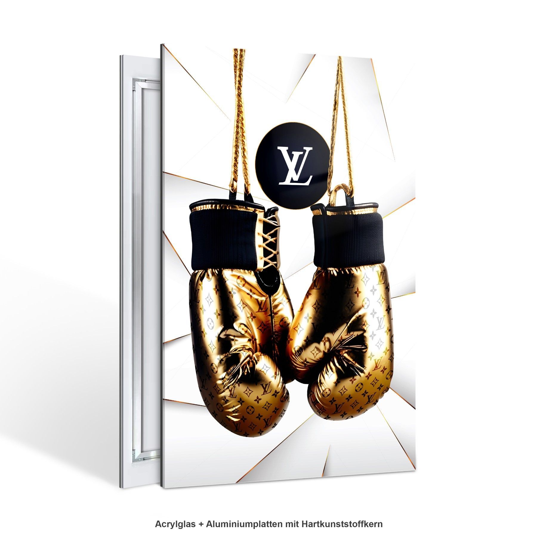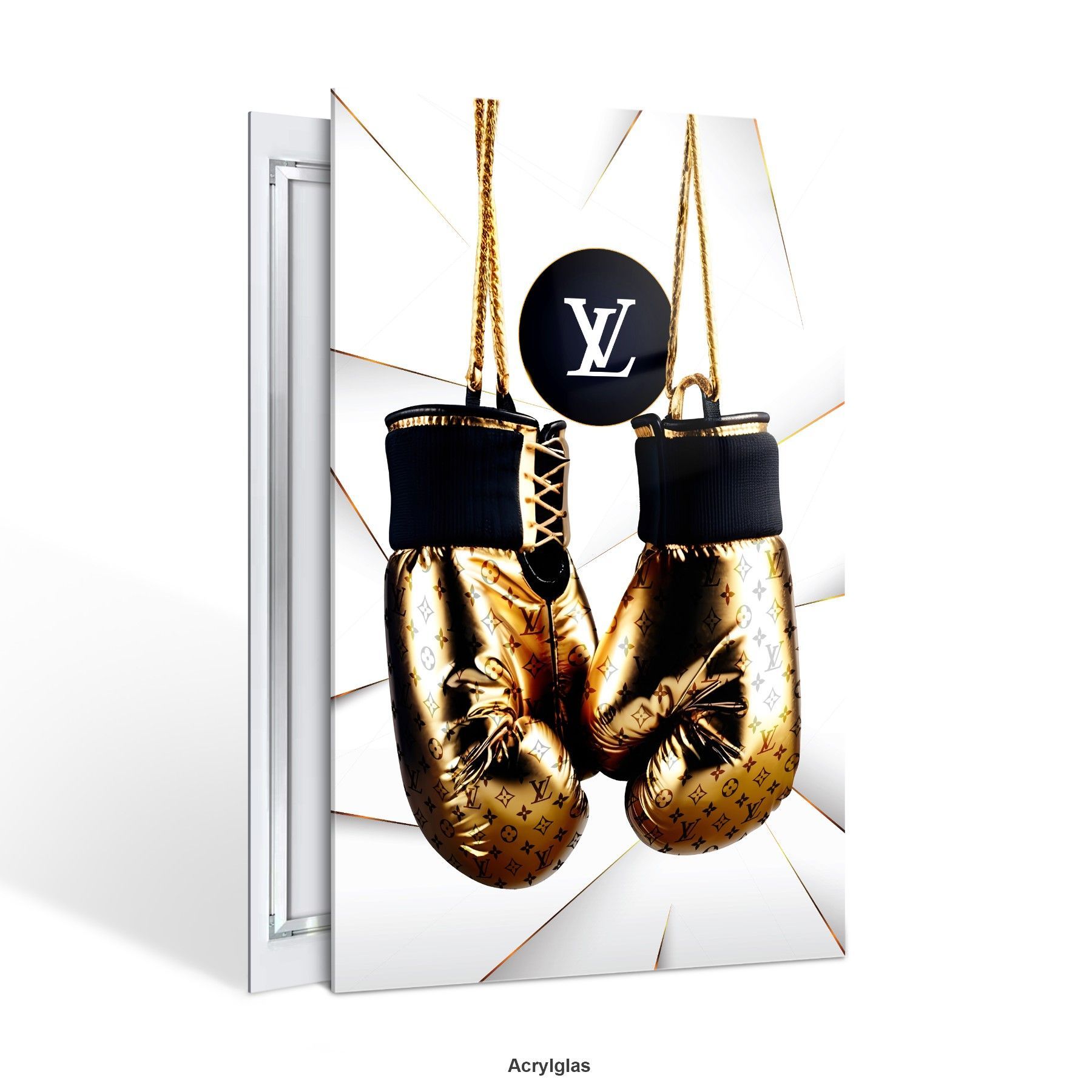 Wandbild GOLDEN Boxhandschuhe LUXUS LV MARKE Leinwand , ACRYL , POSTER KUNST