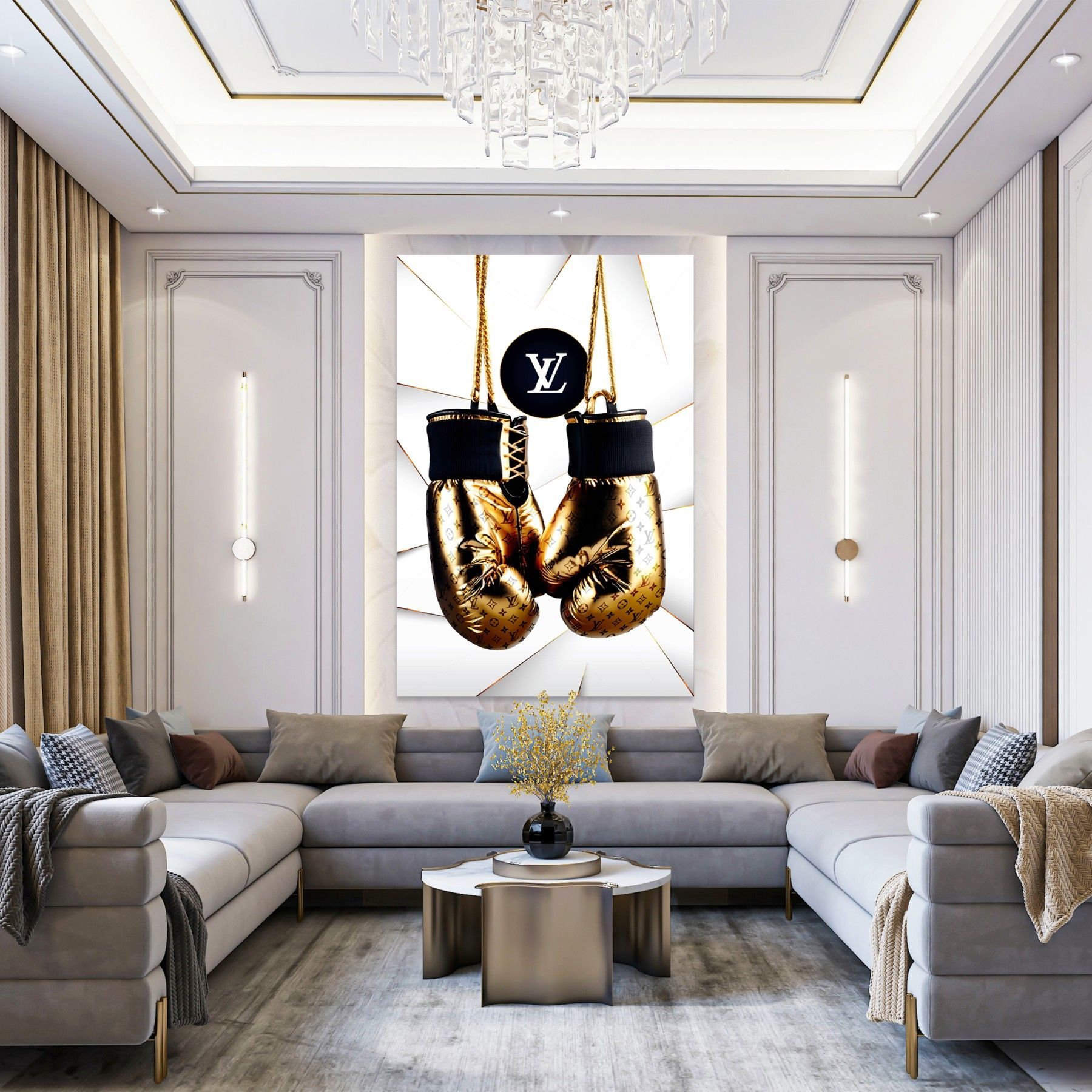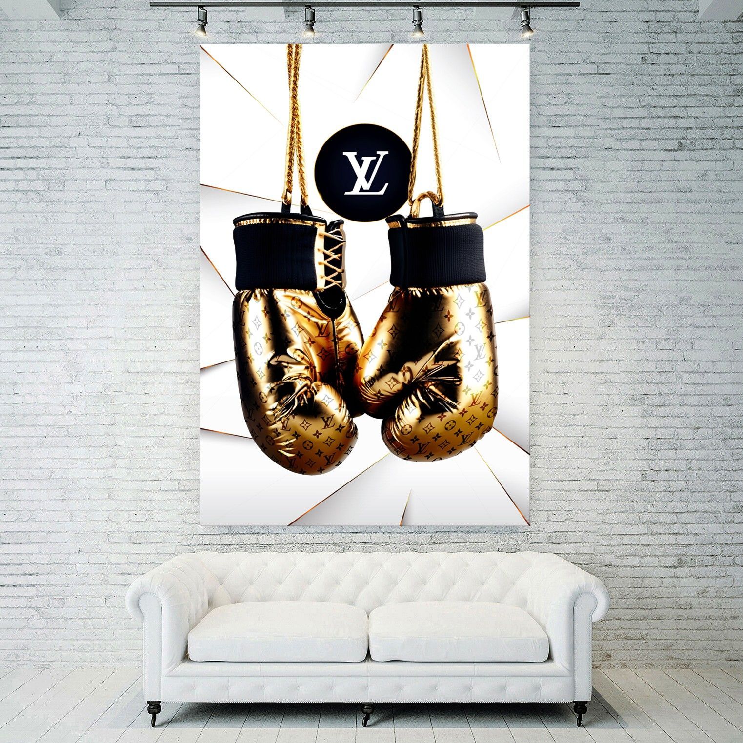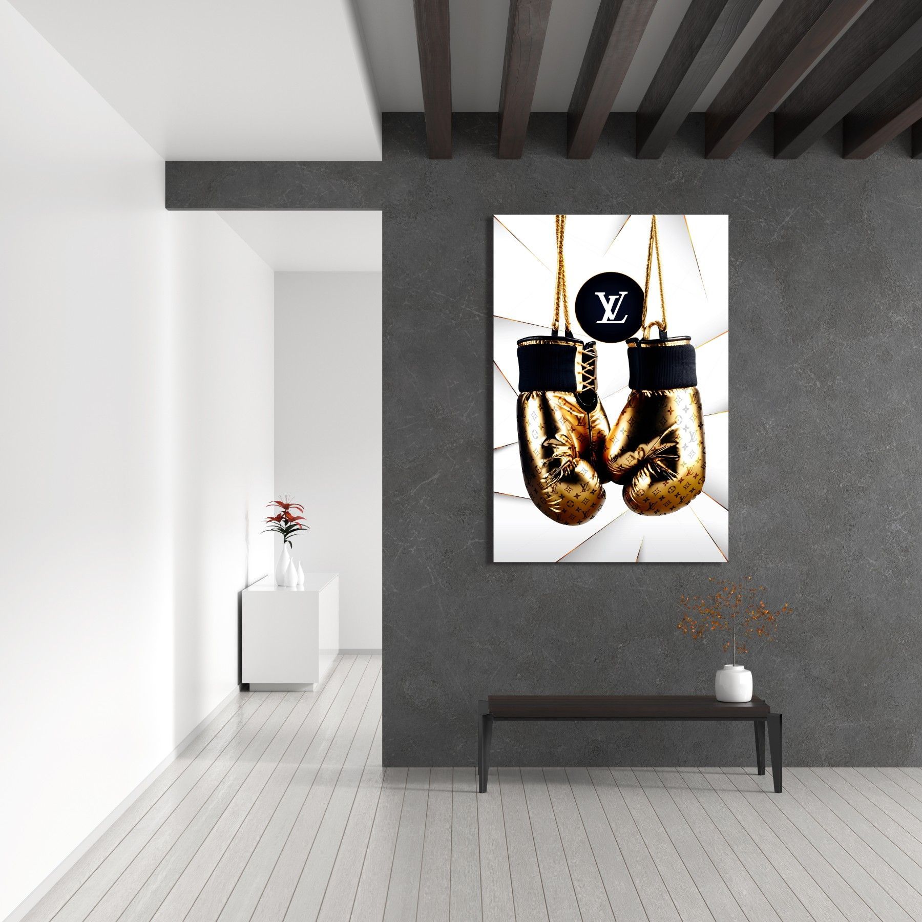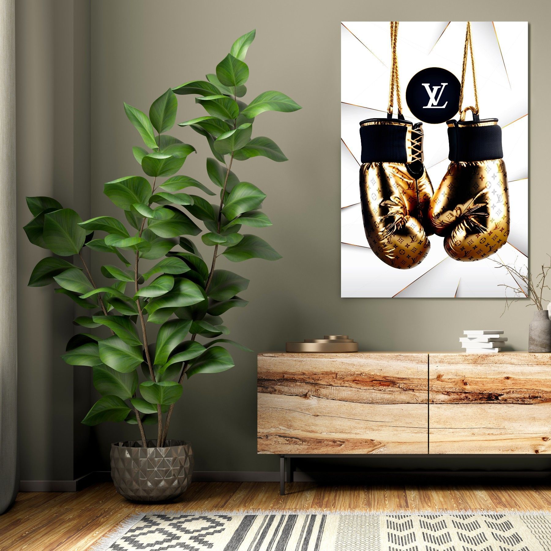 Wandbild GOLDEN Boxhandschuhe LUXUS LV MARKE Leinwand , ACRYL , POSTER KUNST