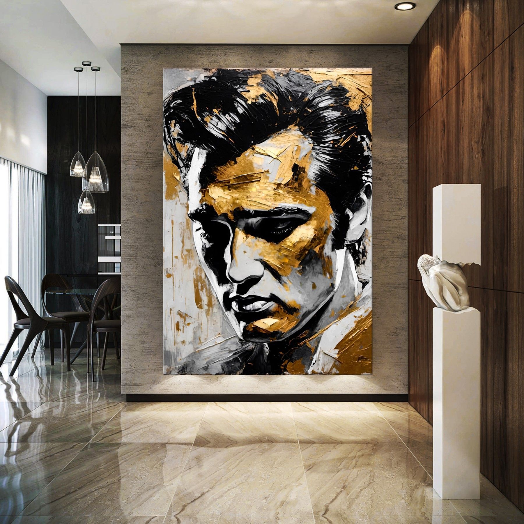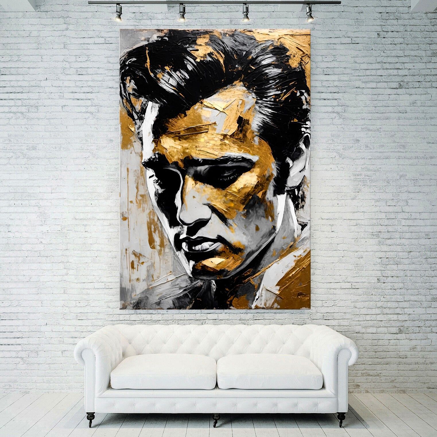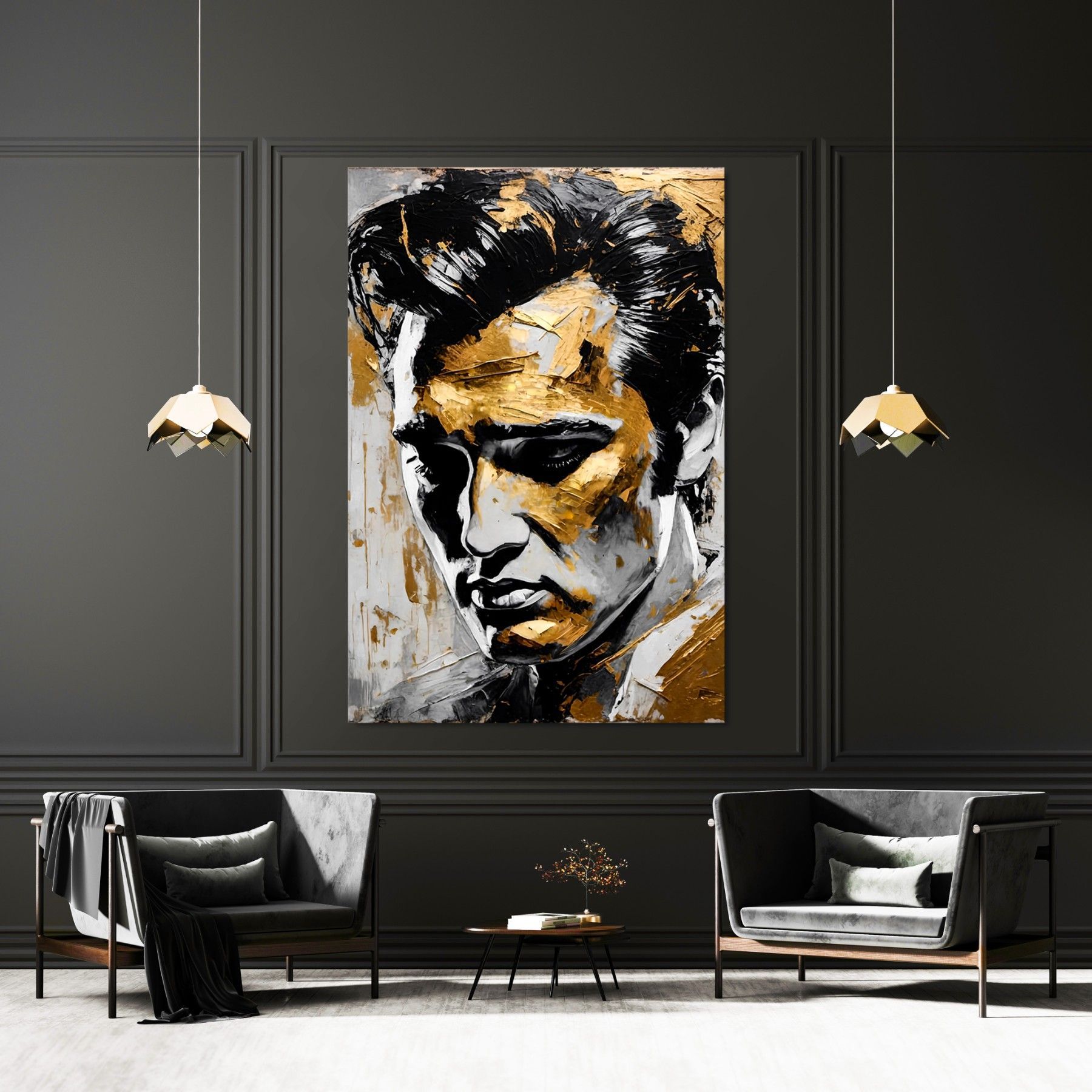 Wandbild Golden Ink Elvis Presley Face Leinwand , Acrylglas , Poster Deko Kunst