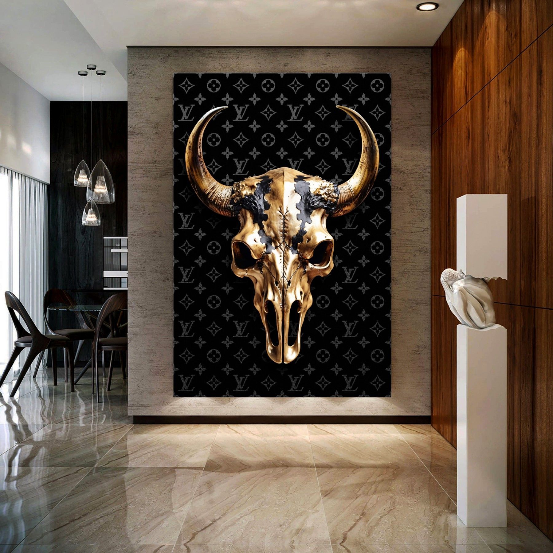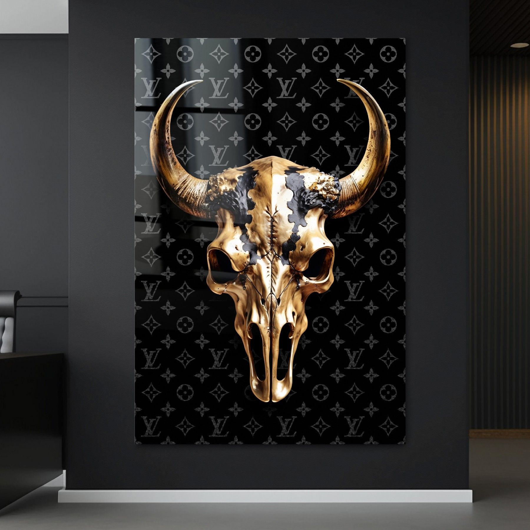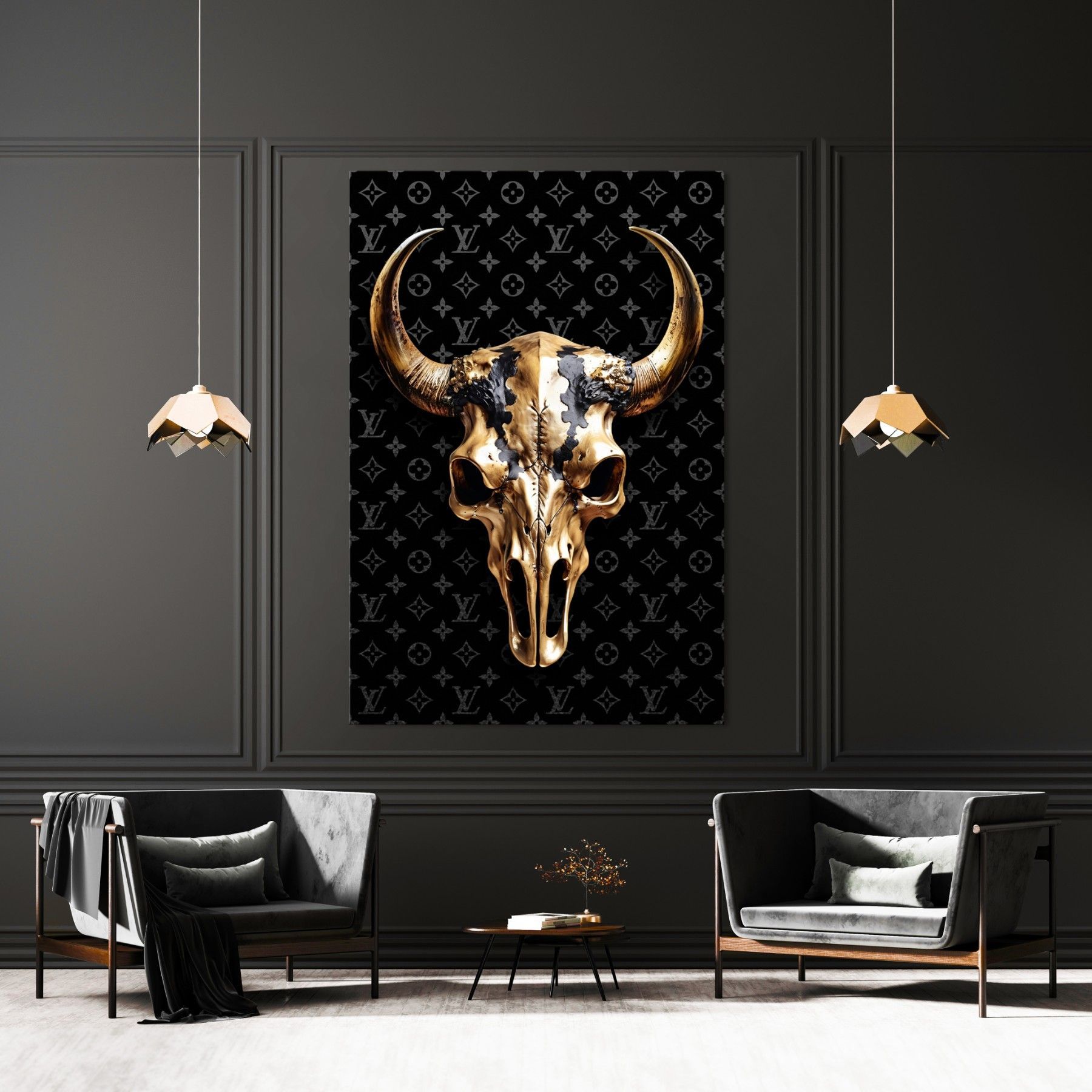Wandbild Goldener Kuhschädel, LV Luxusmarke Poster , Leinwand , Acrylglas Kunst