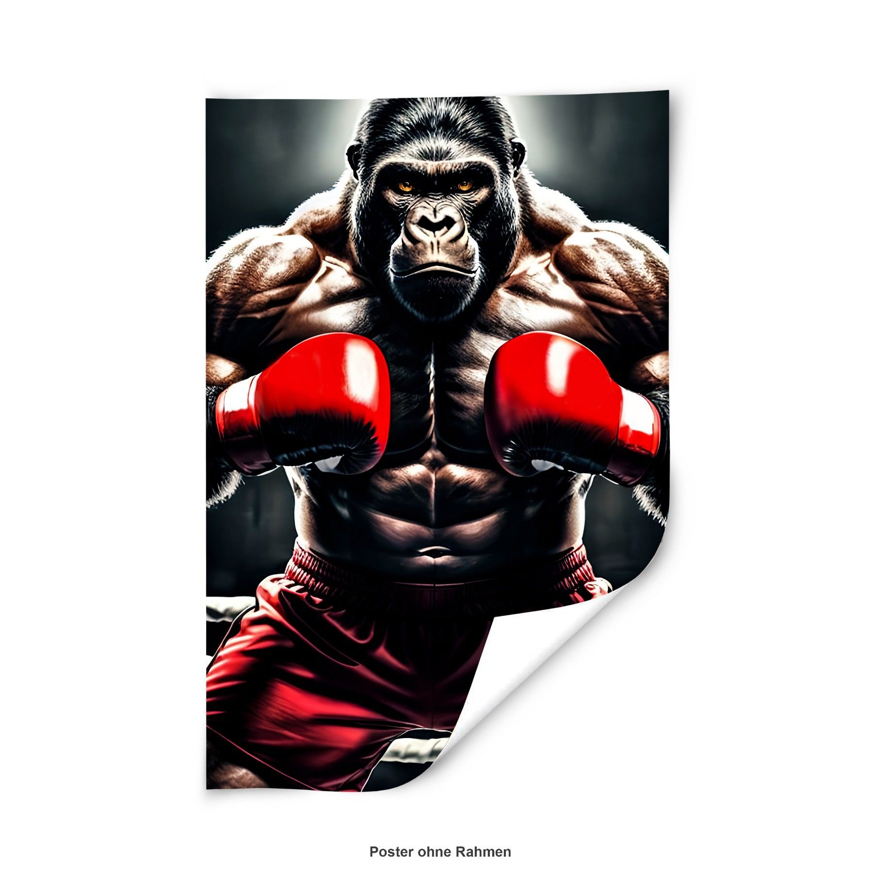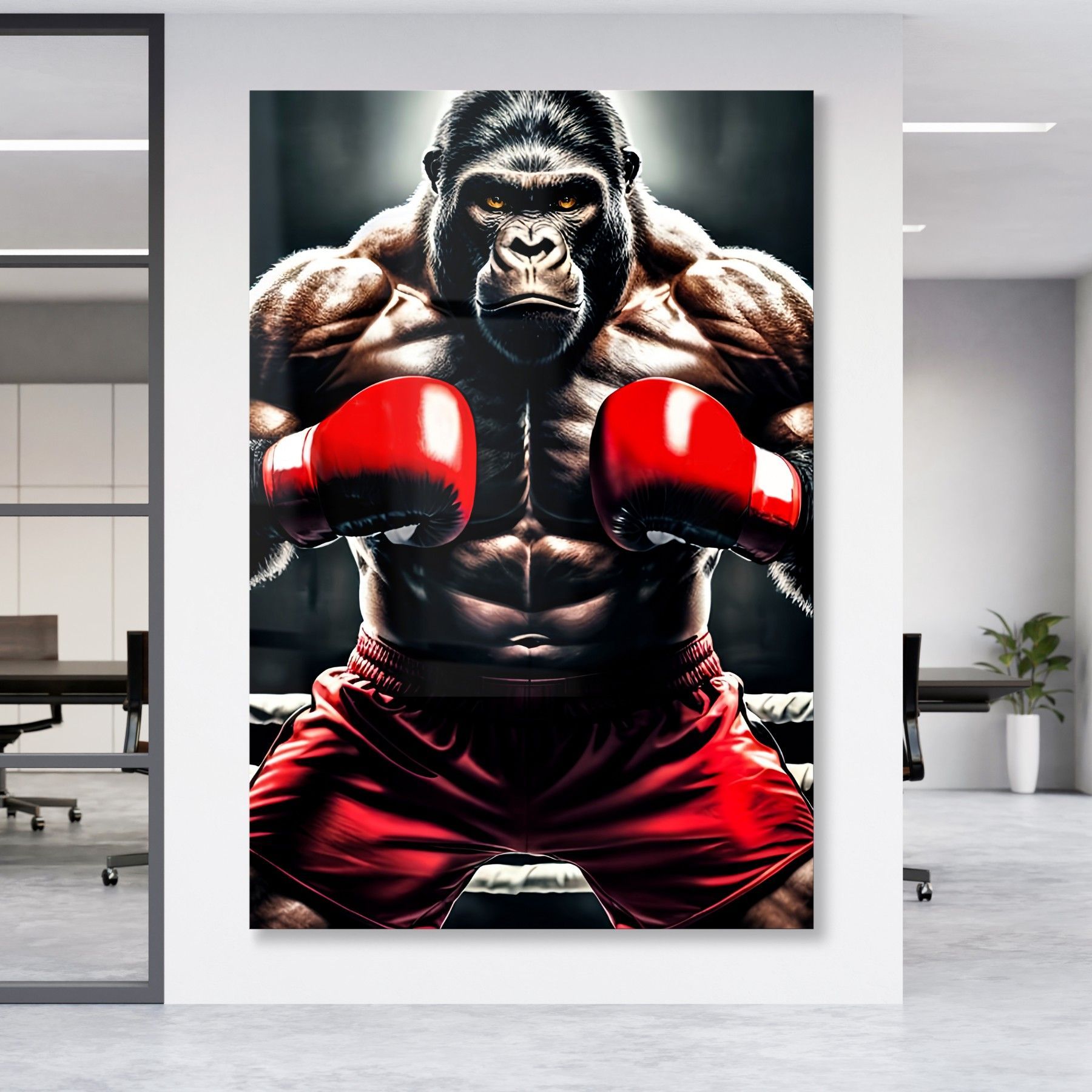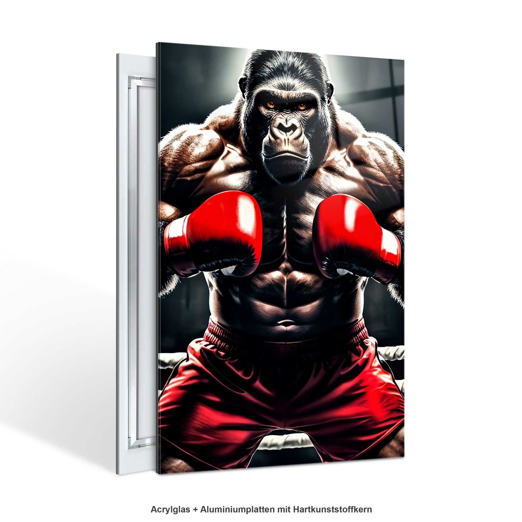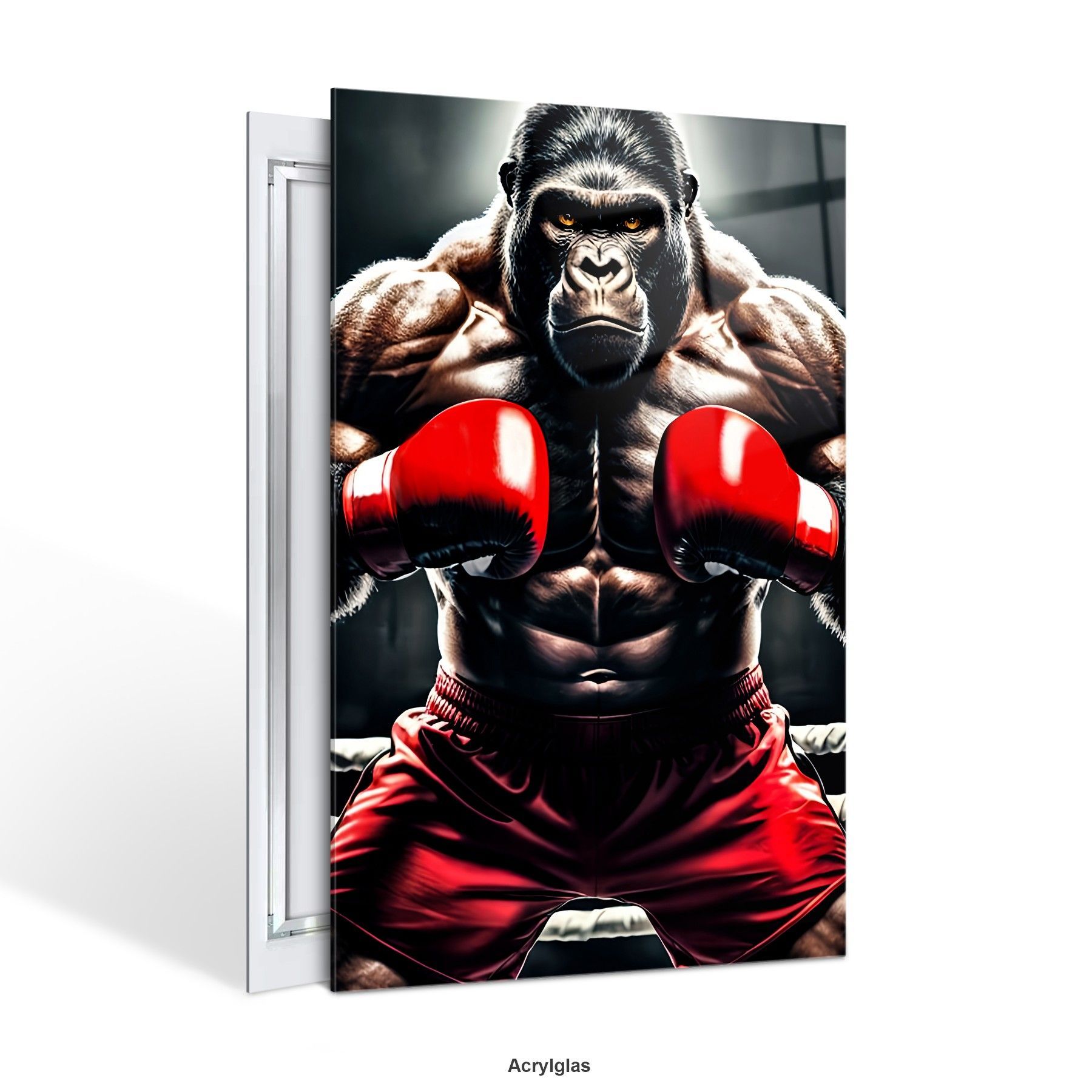 Wandbild, Gorilla mit Boxhandschuhen, kämpfend Acrylglas Aluminium , Leinwand, Poster