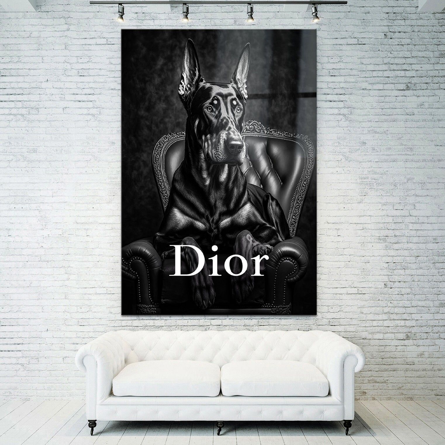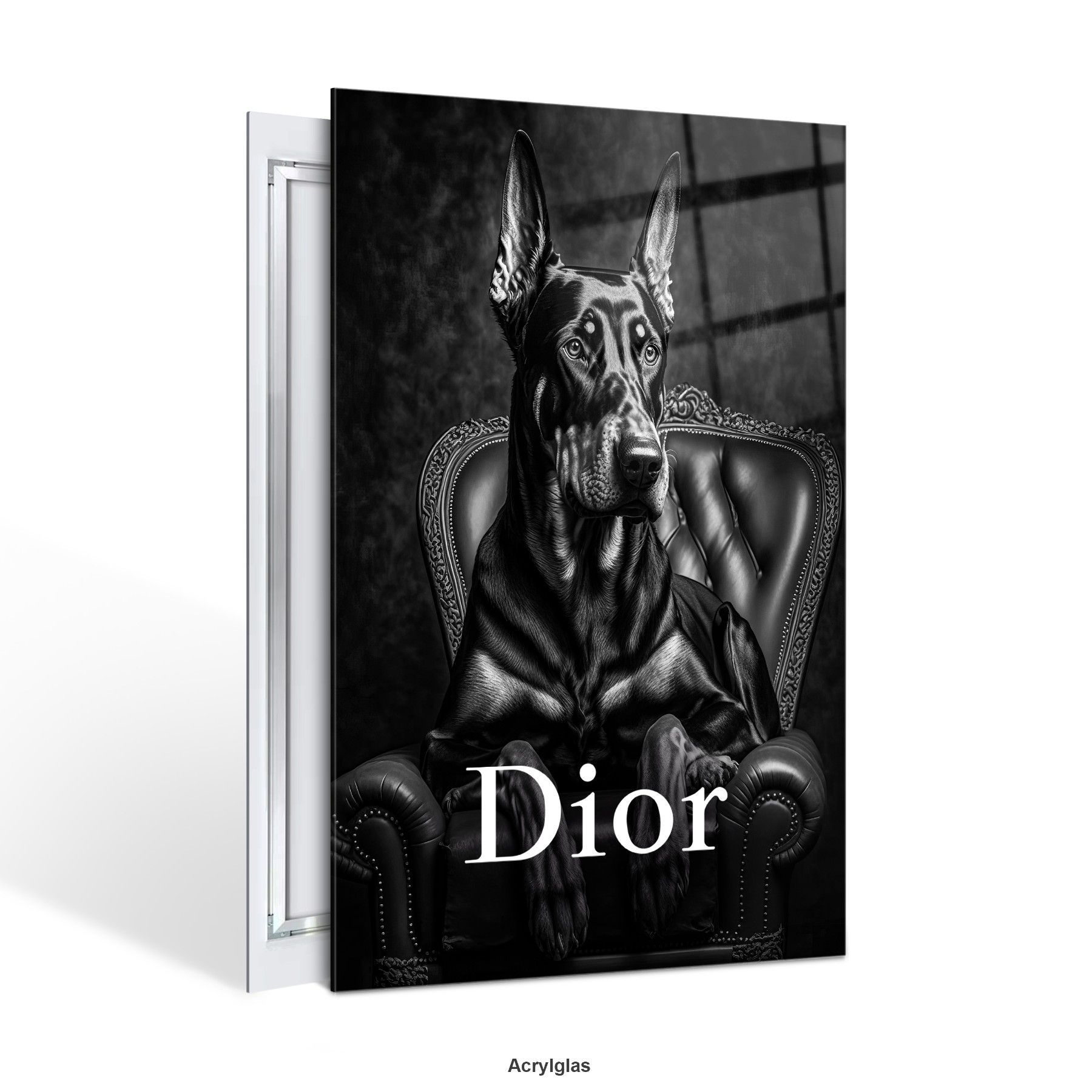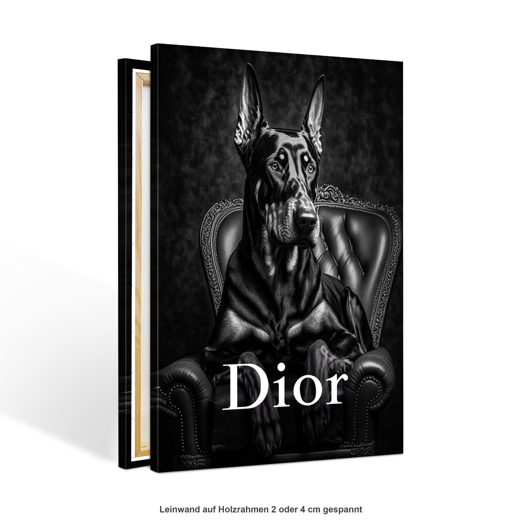 Wandbild Hund Dior Dobermann Luxus Mode Leinwand , Acrylglas + Aluminium , Poster