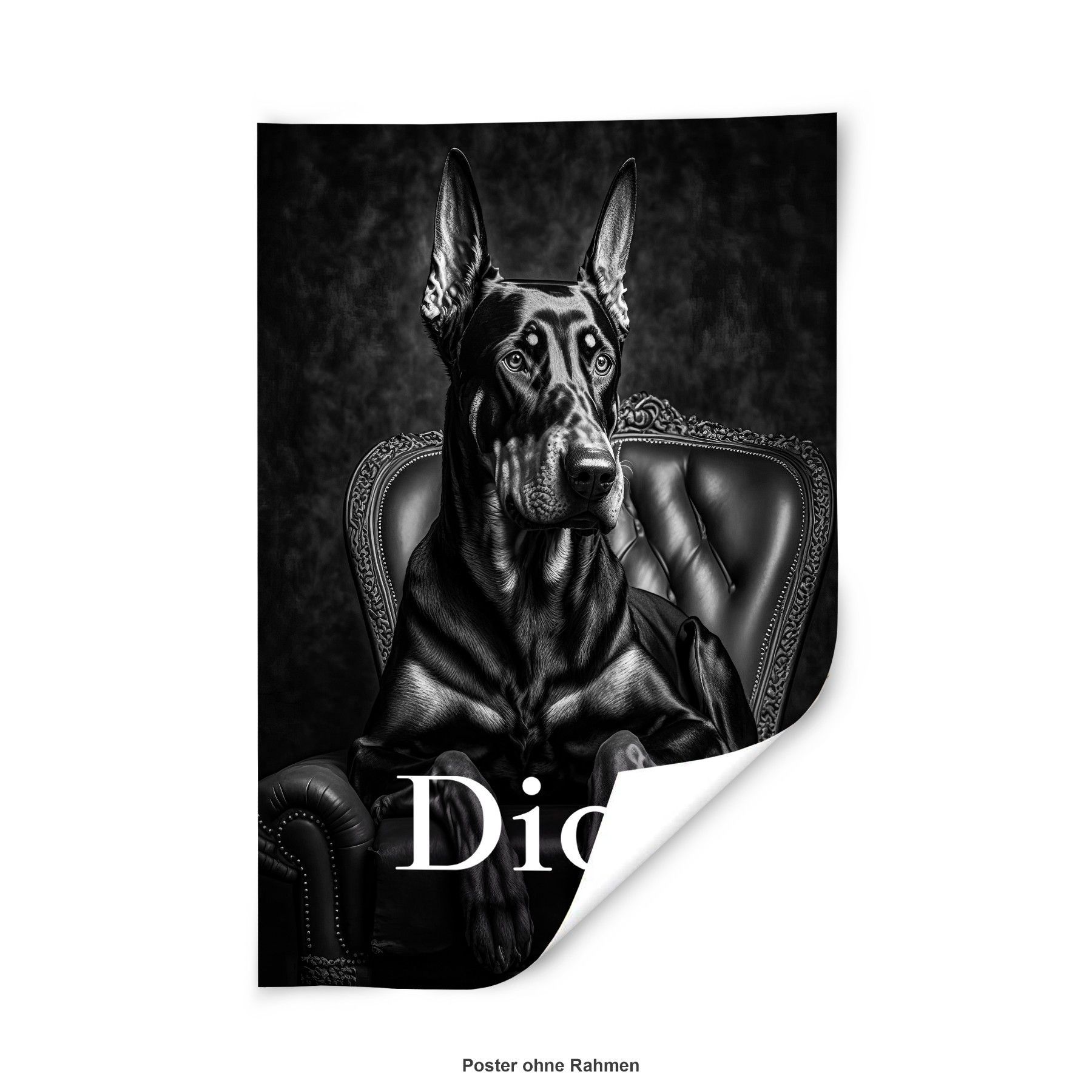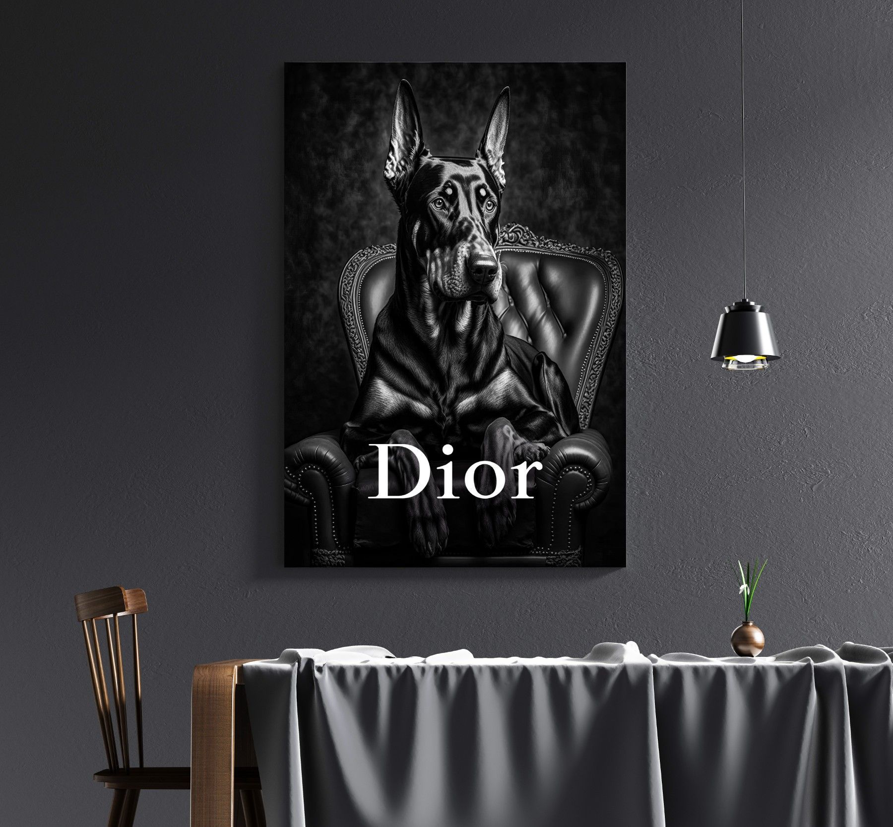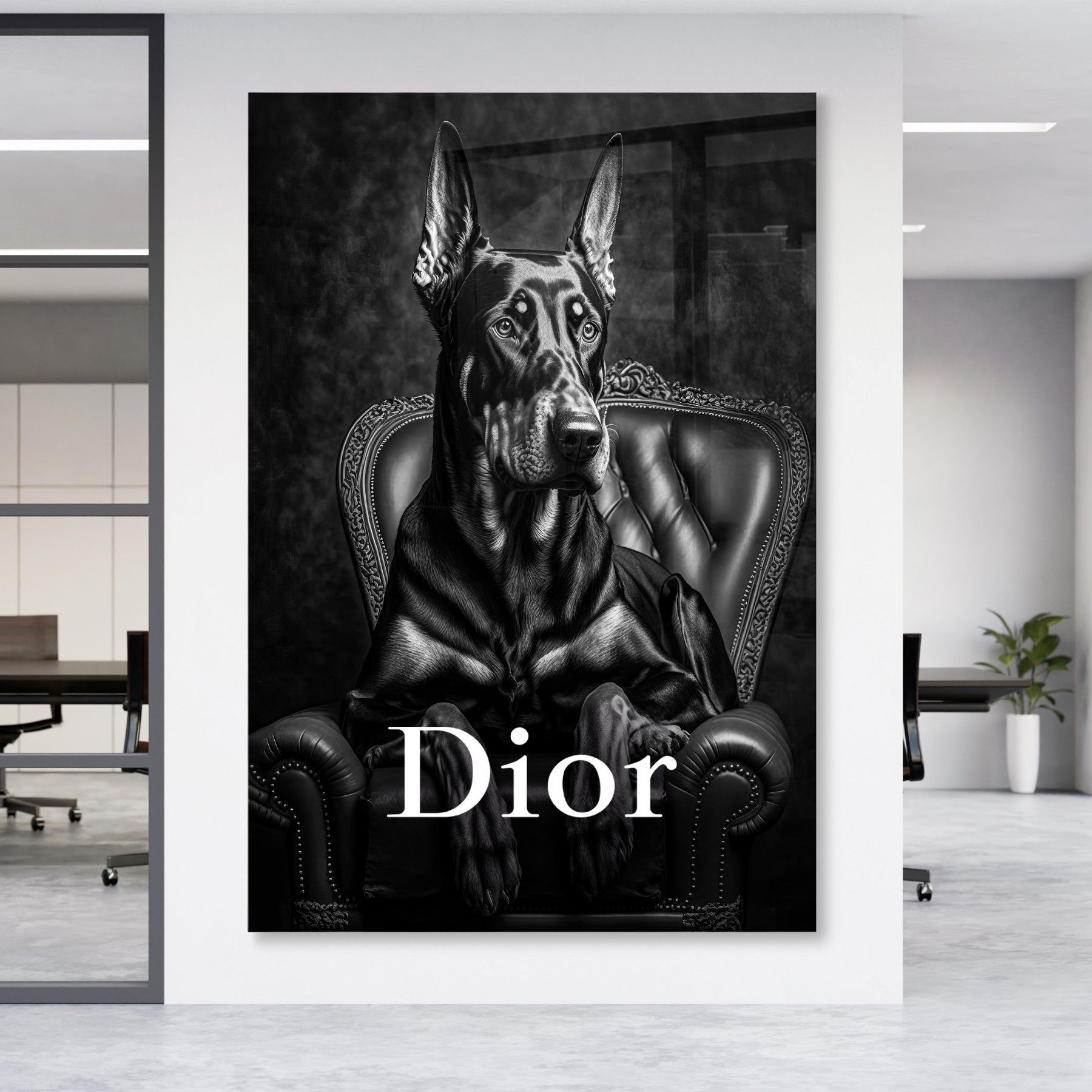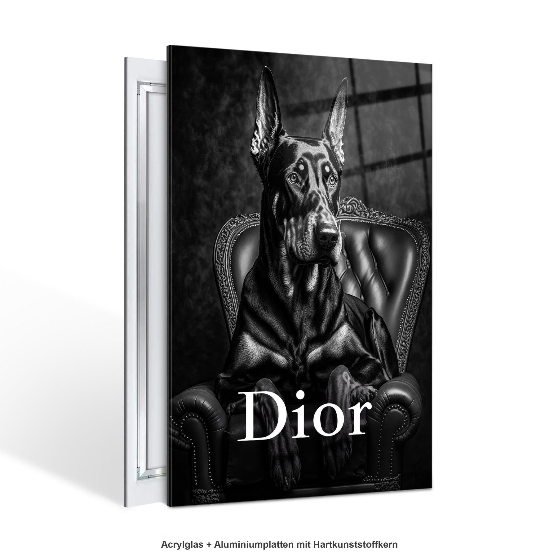 Wandbild Hund Dior Dobermann Luxus Mode Leinwand , Acrylglas + Aluminium , Poster