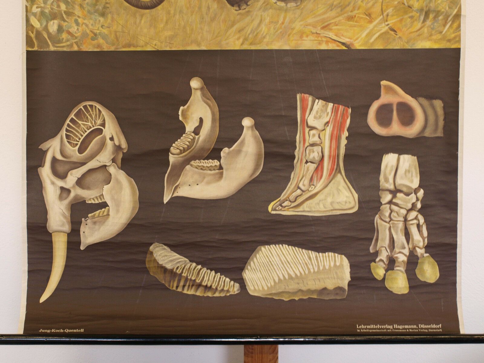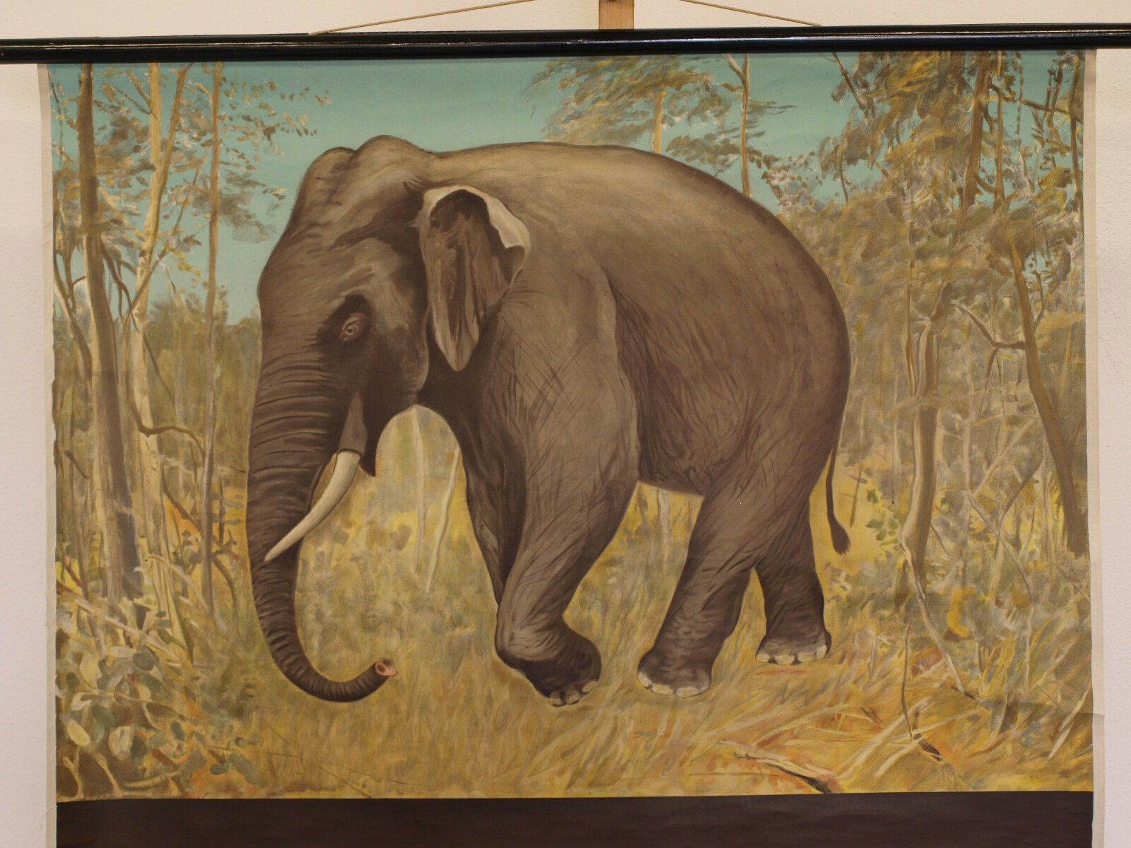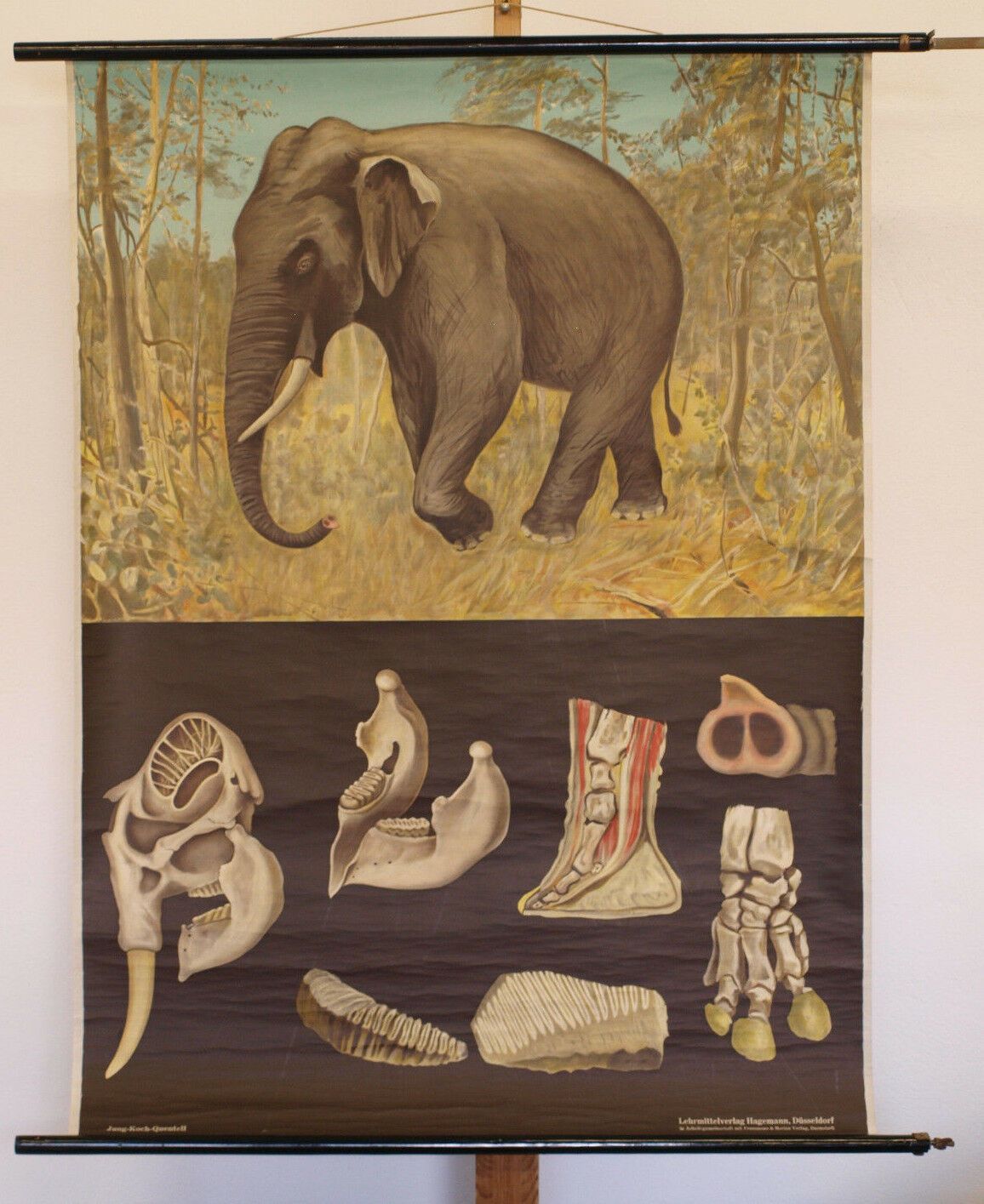 Wandbild JKQ Jung Koch Quentell Asien Elefant 84x113 1960 vintage Elephant chart