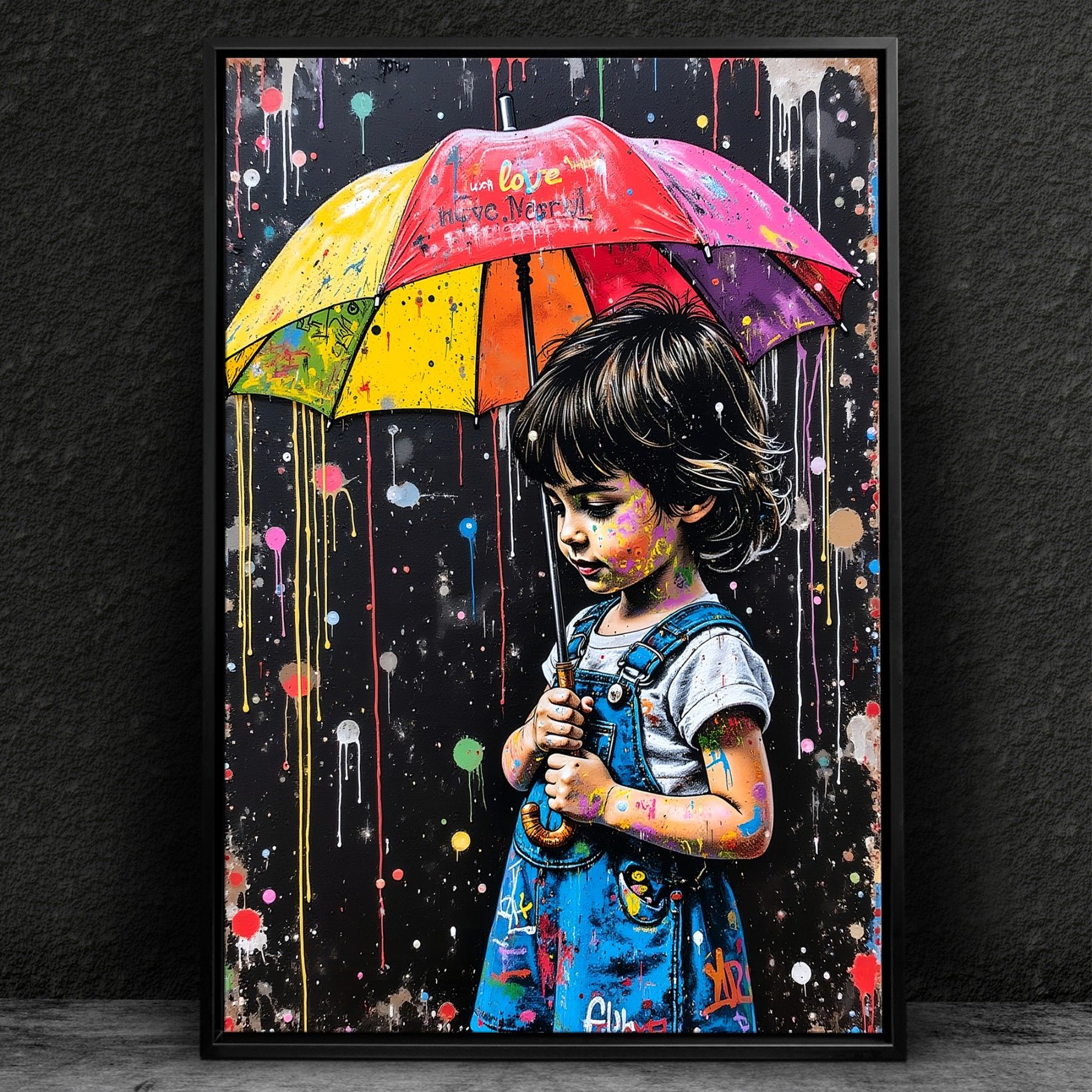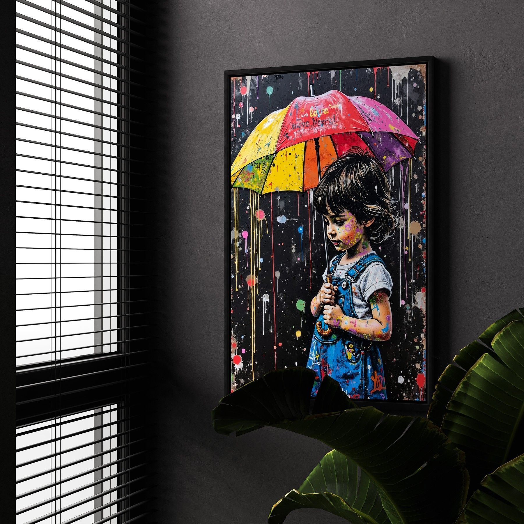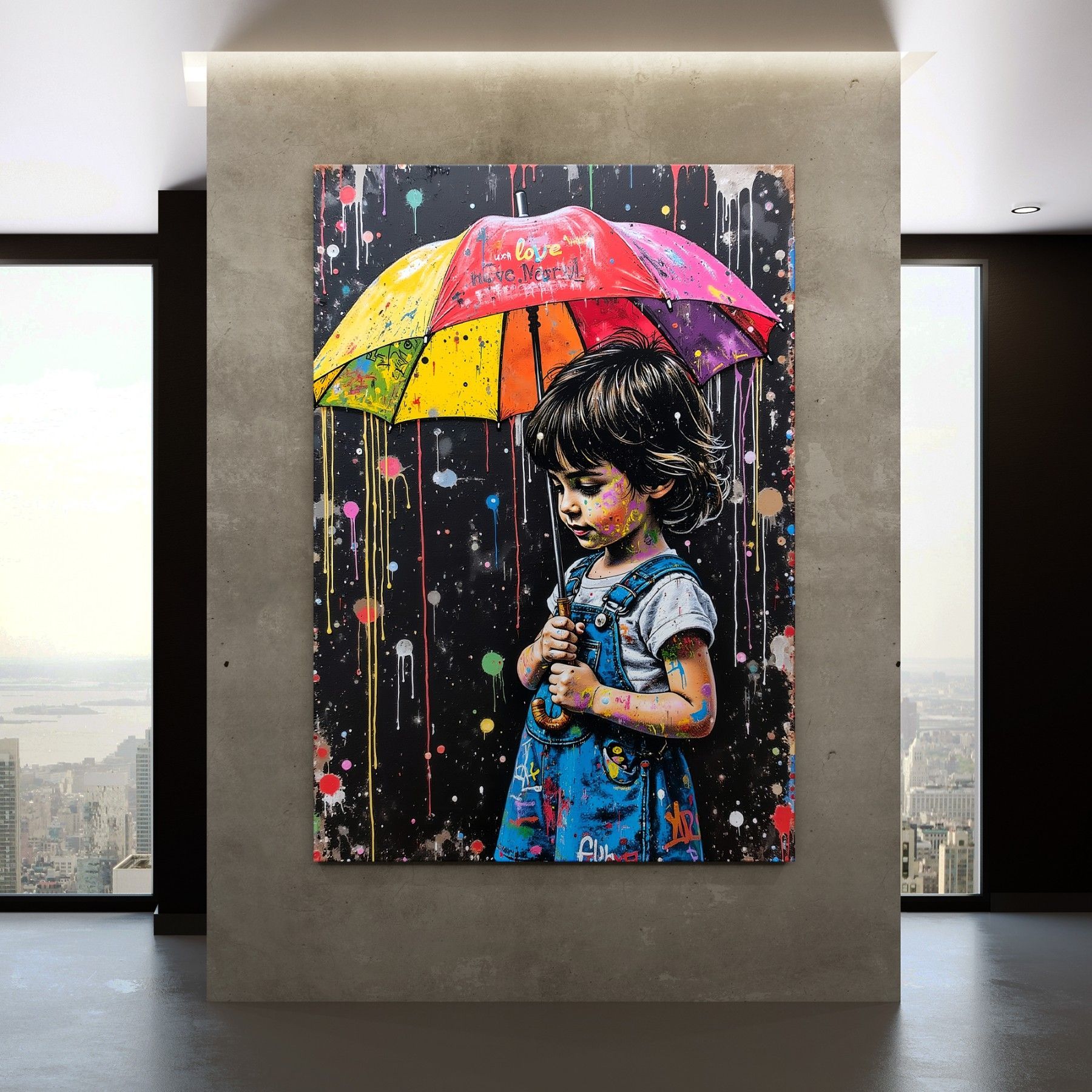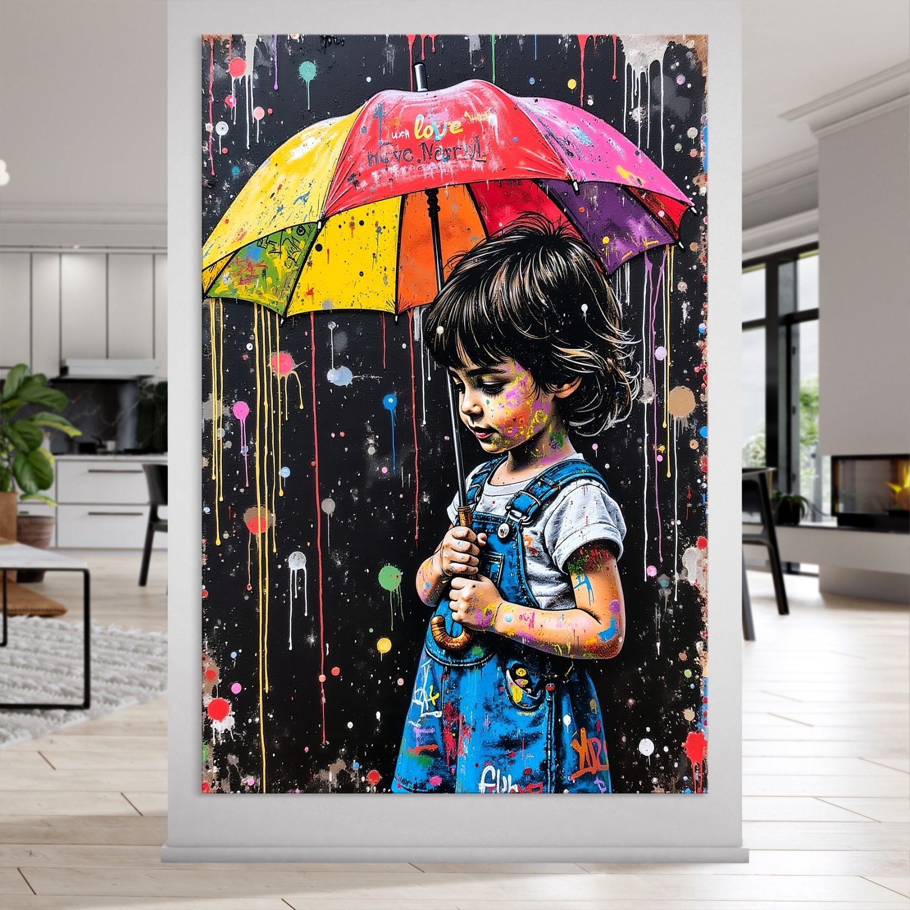 Wandbild - Kind mit Regenschirm, Pop Art Kunst Leinwand, Acrylglas, Poster Nr17