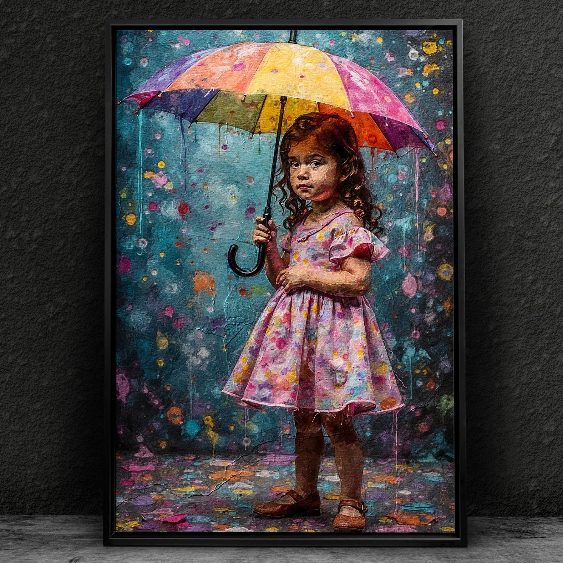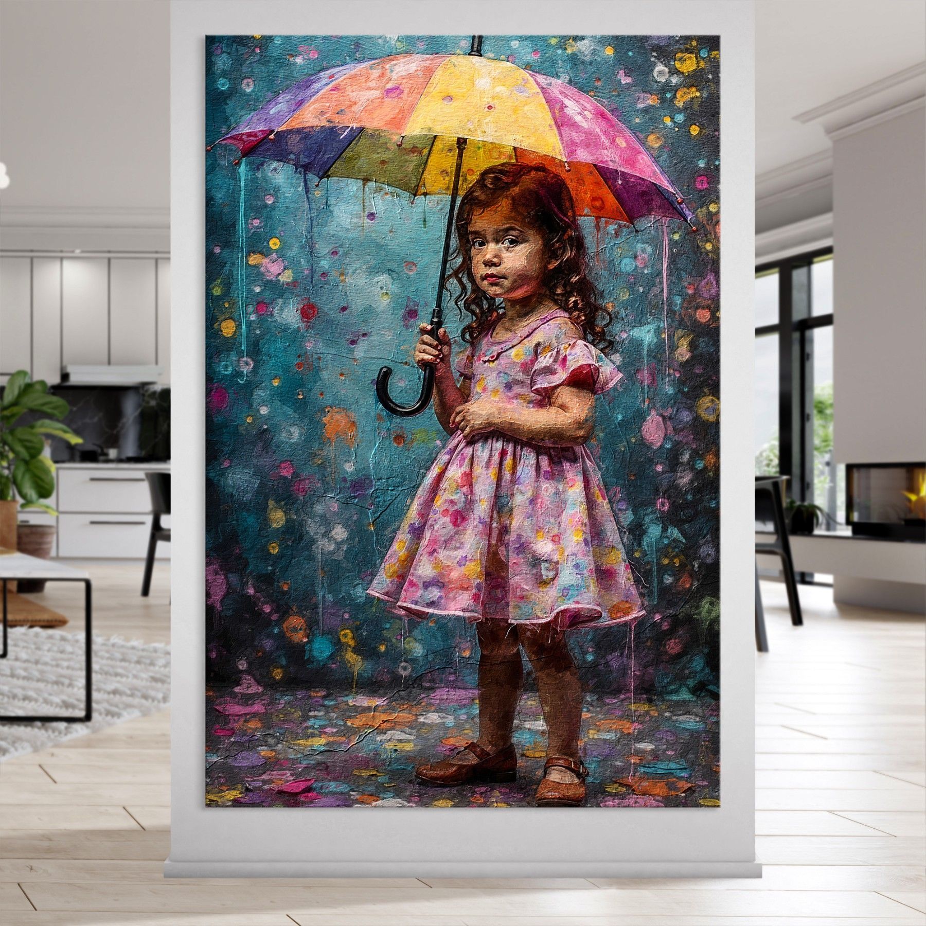 Wandbild - Kind mit Regenschirm, Pop Art Kunst Leinwand, Acrylglas, Poster Nr8