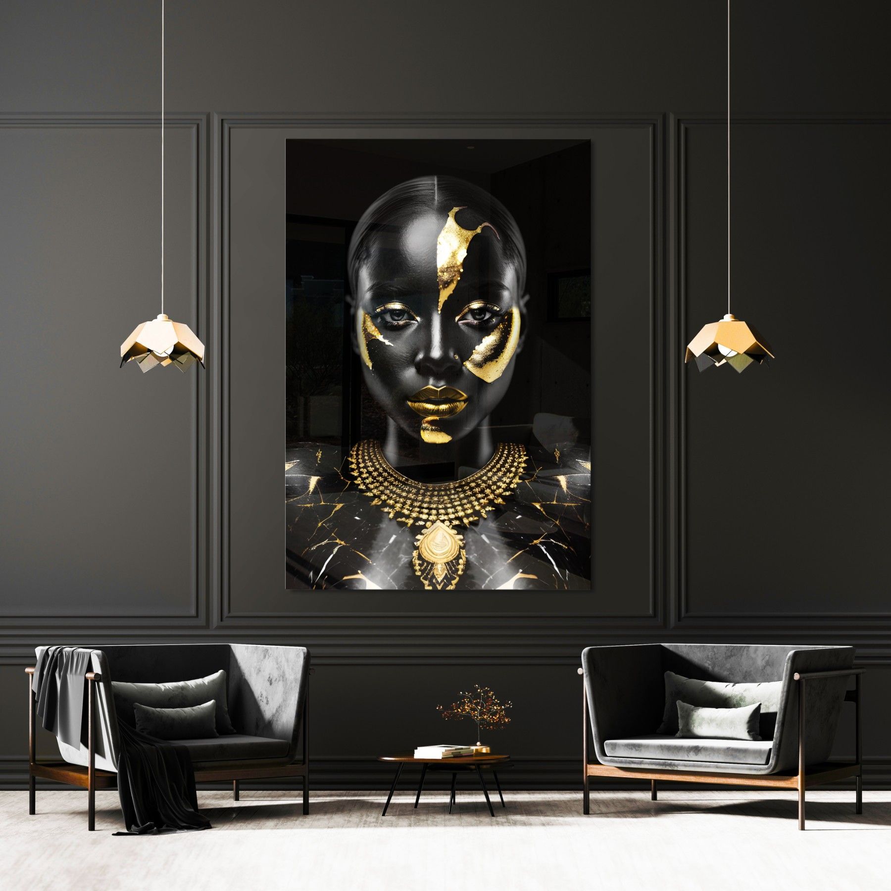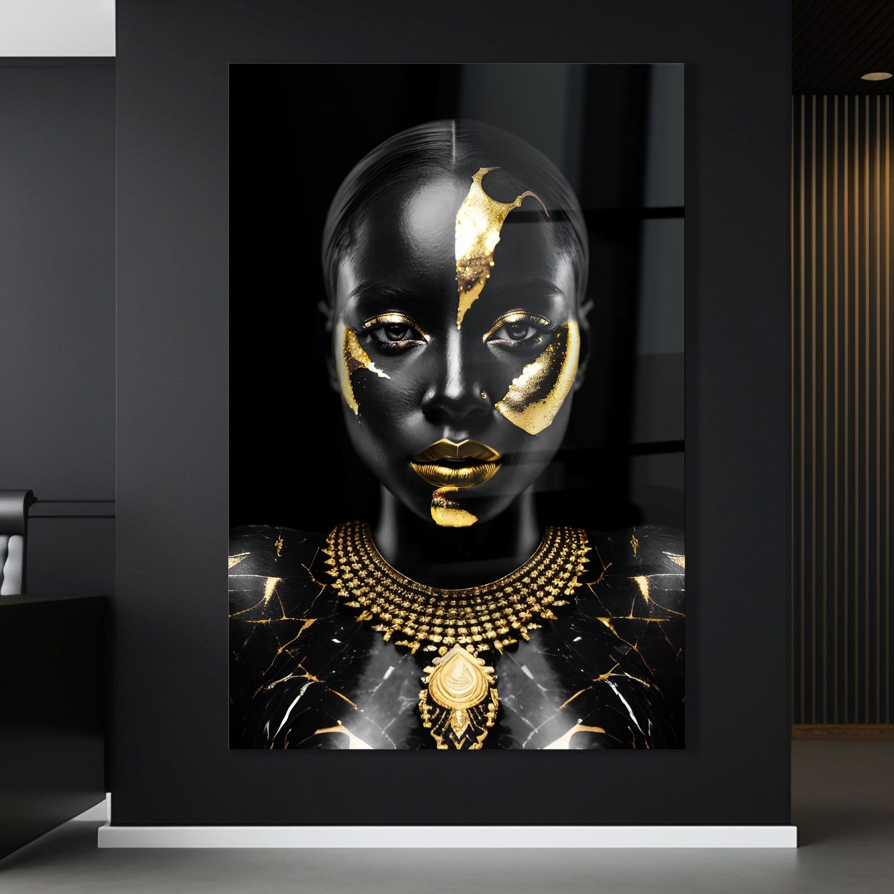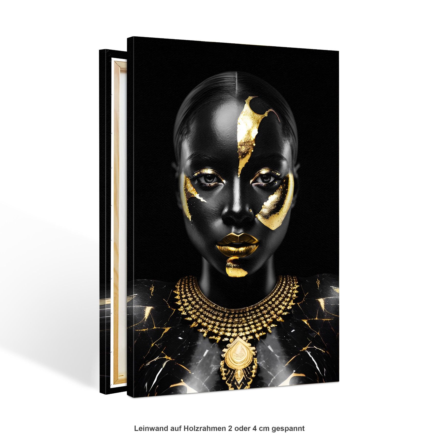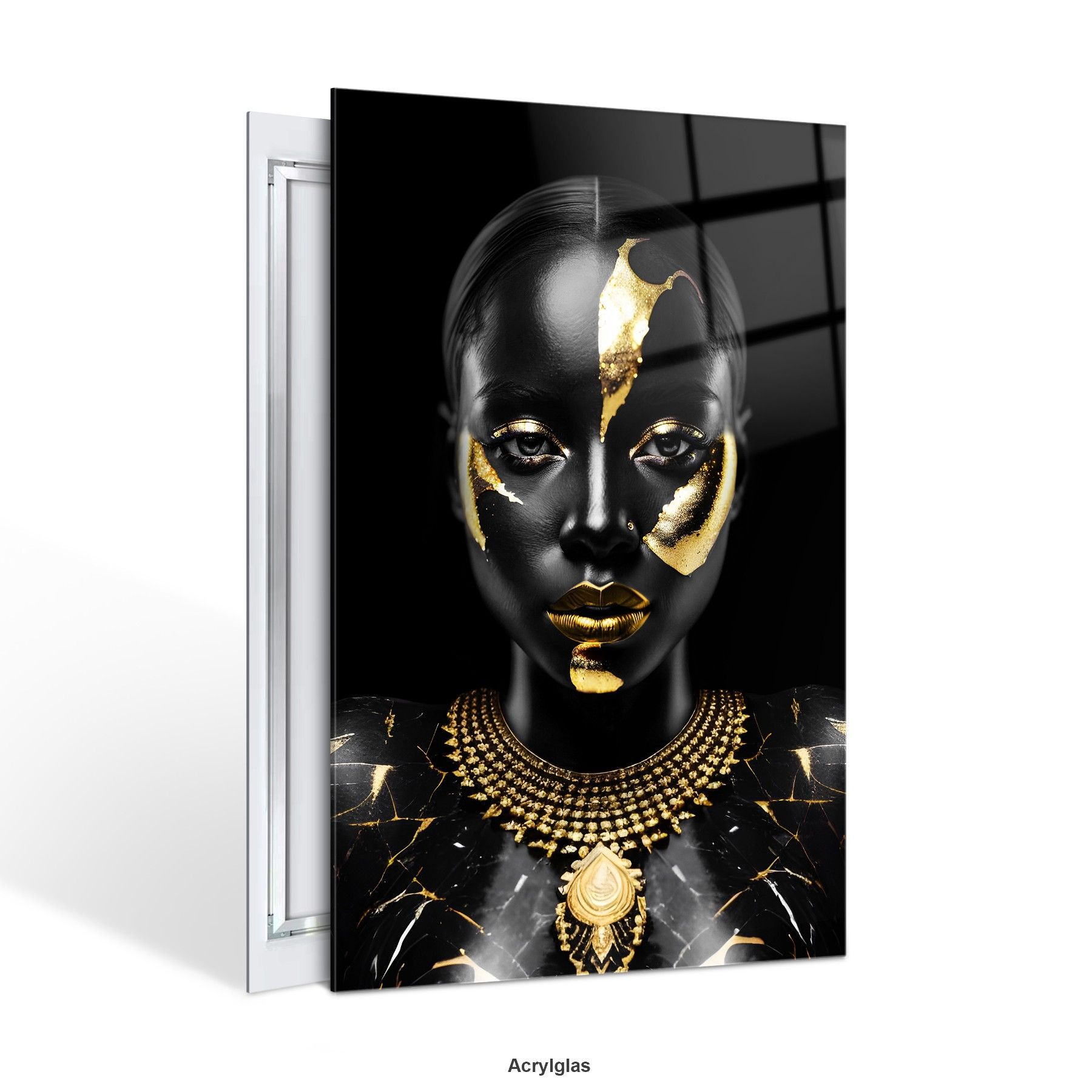 Wandbild Luxury Black Gold Woman , Fashion Leinwand, Acrylglas + Aluminium, Poster