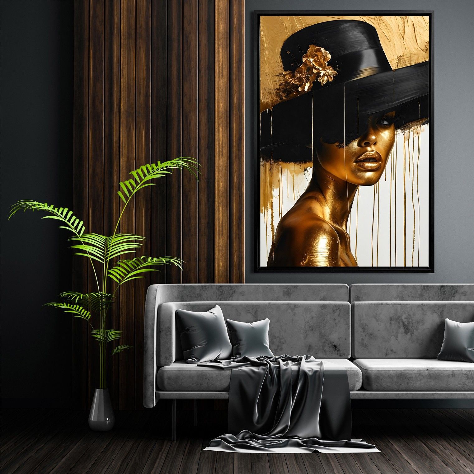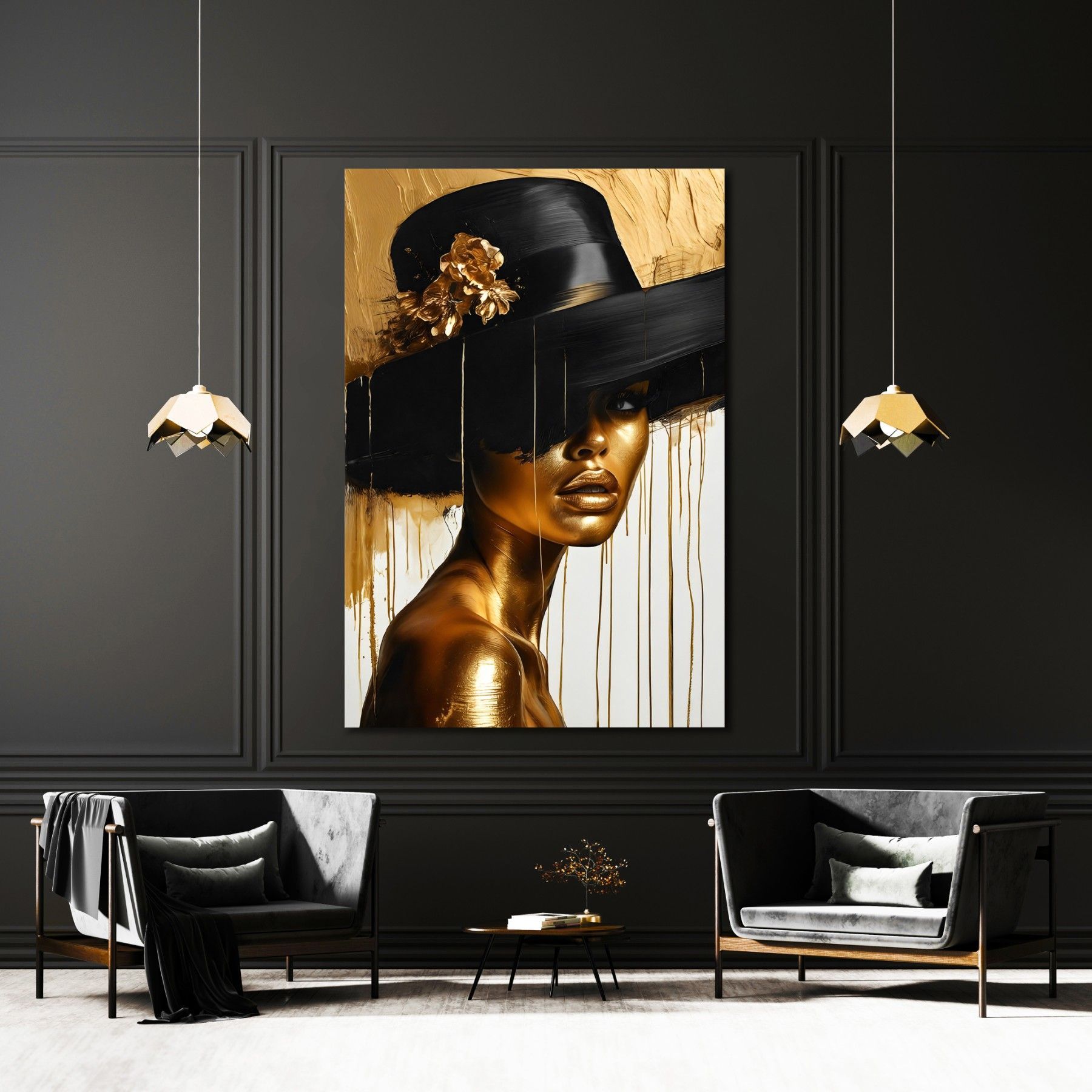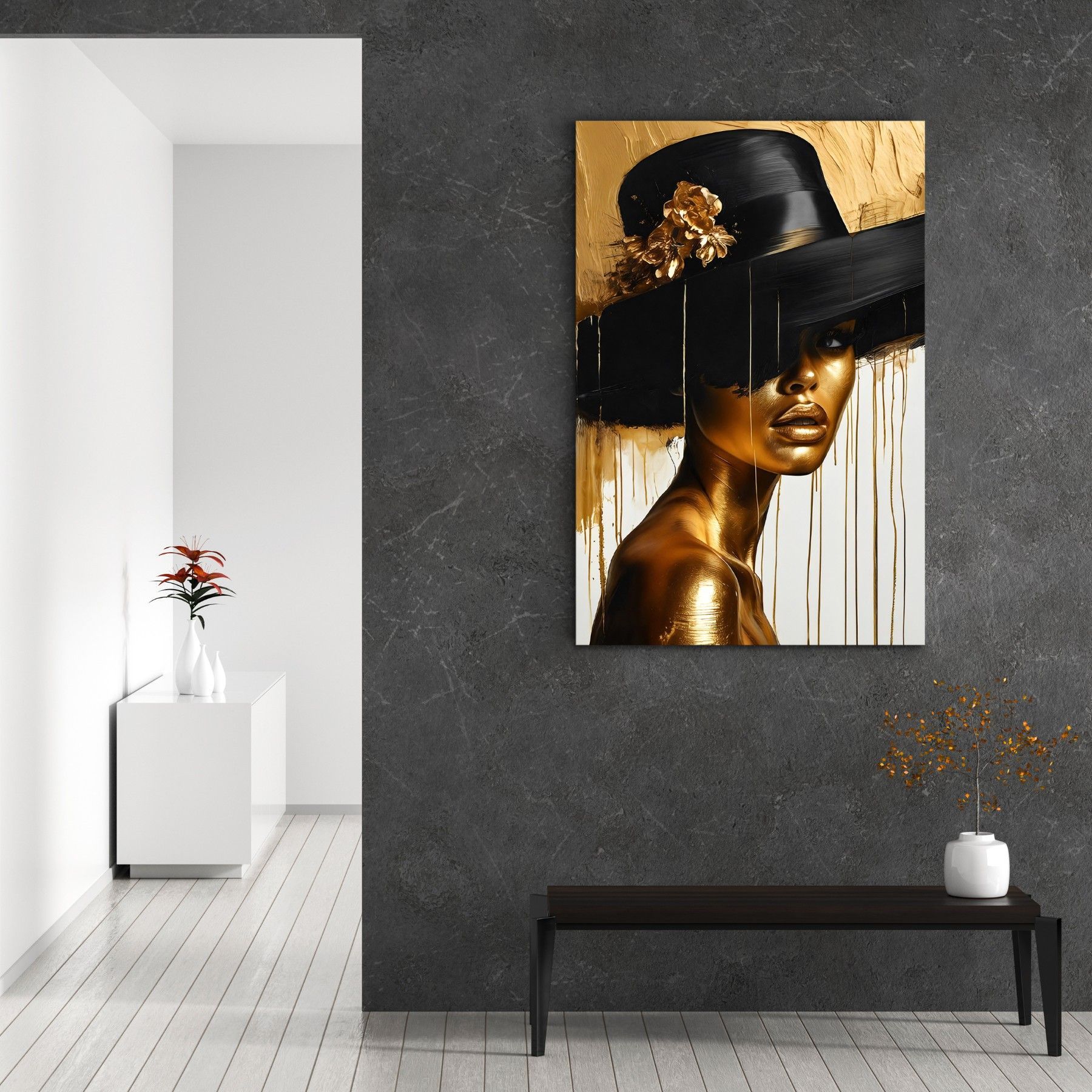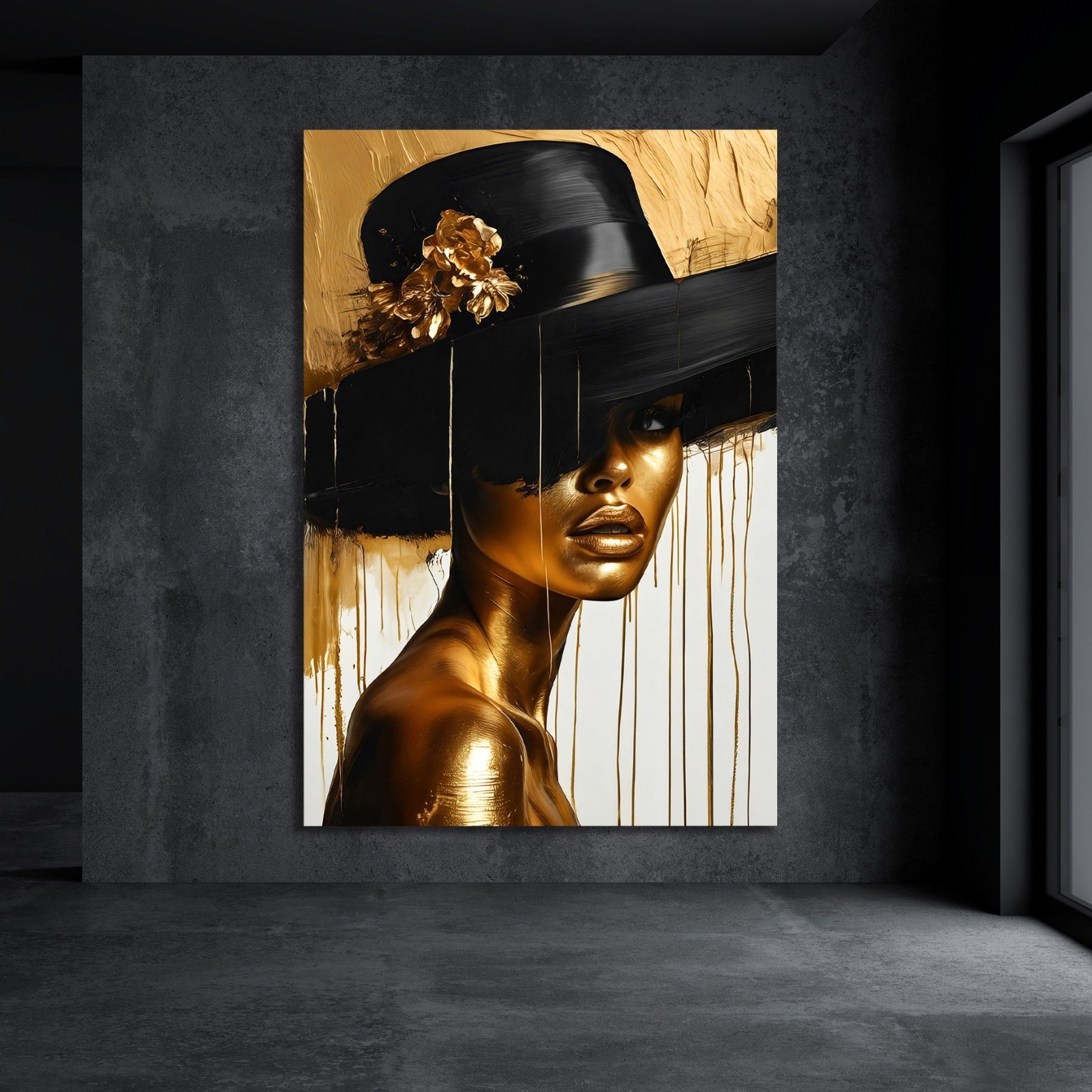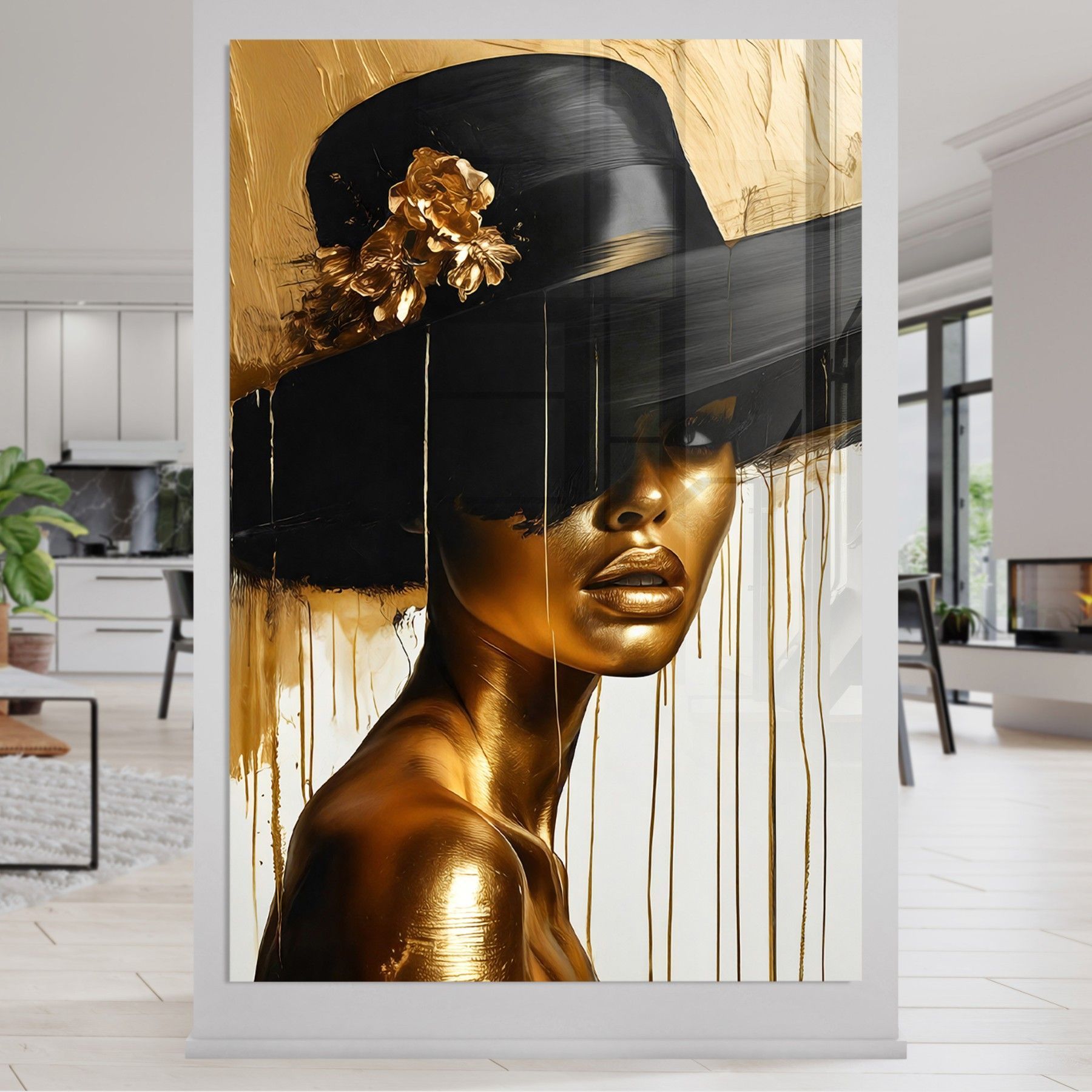 Wandbild, Mode Frau, Goldene, Leinwand, Acrylglas, Poster - Kunst Art