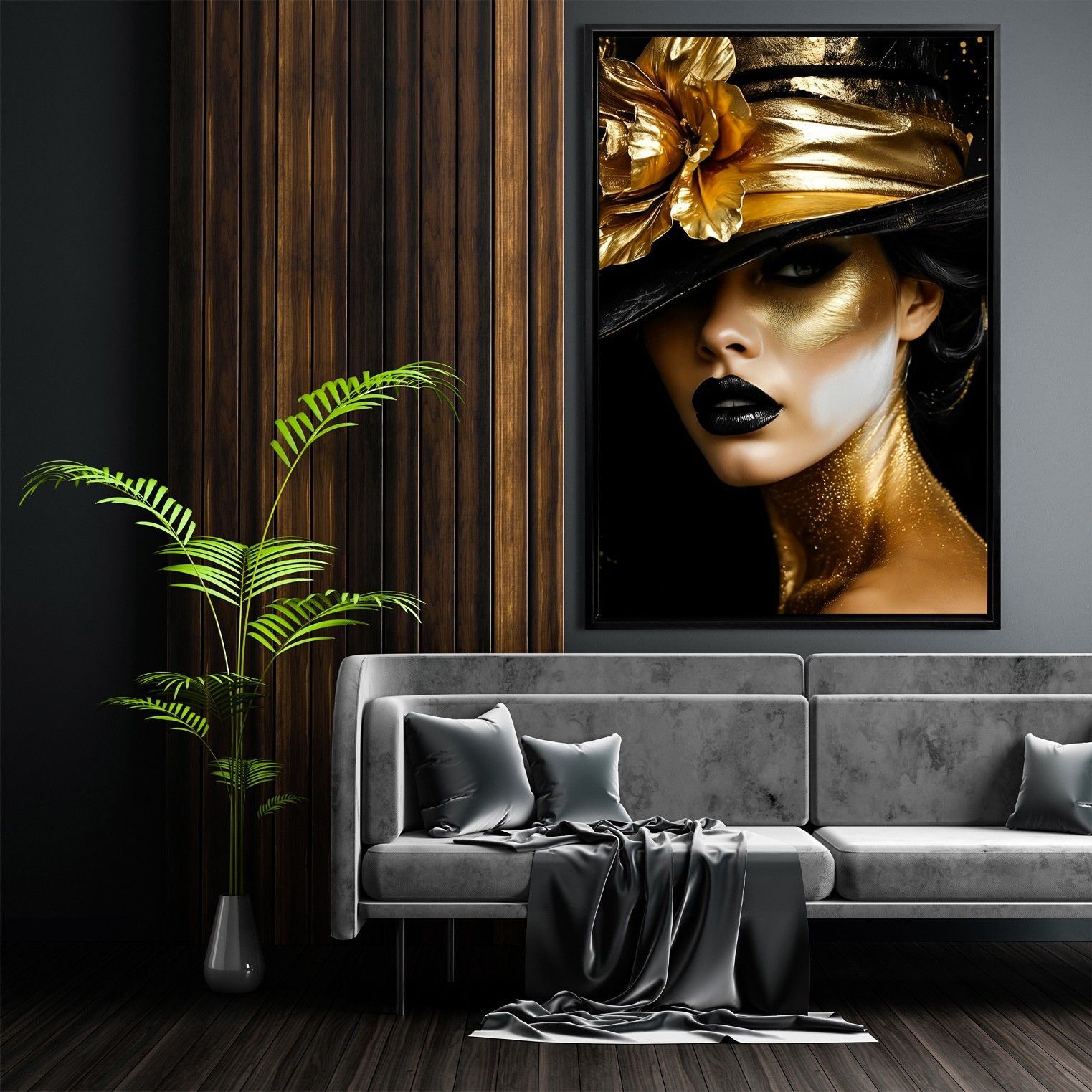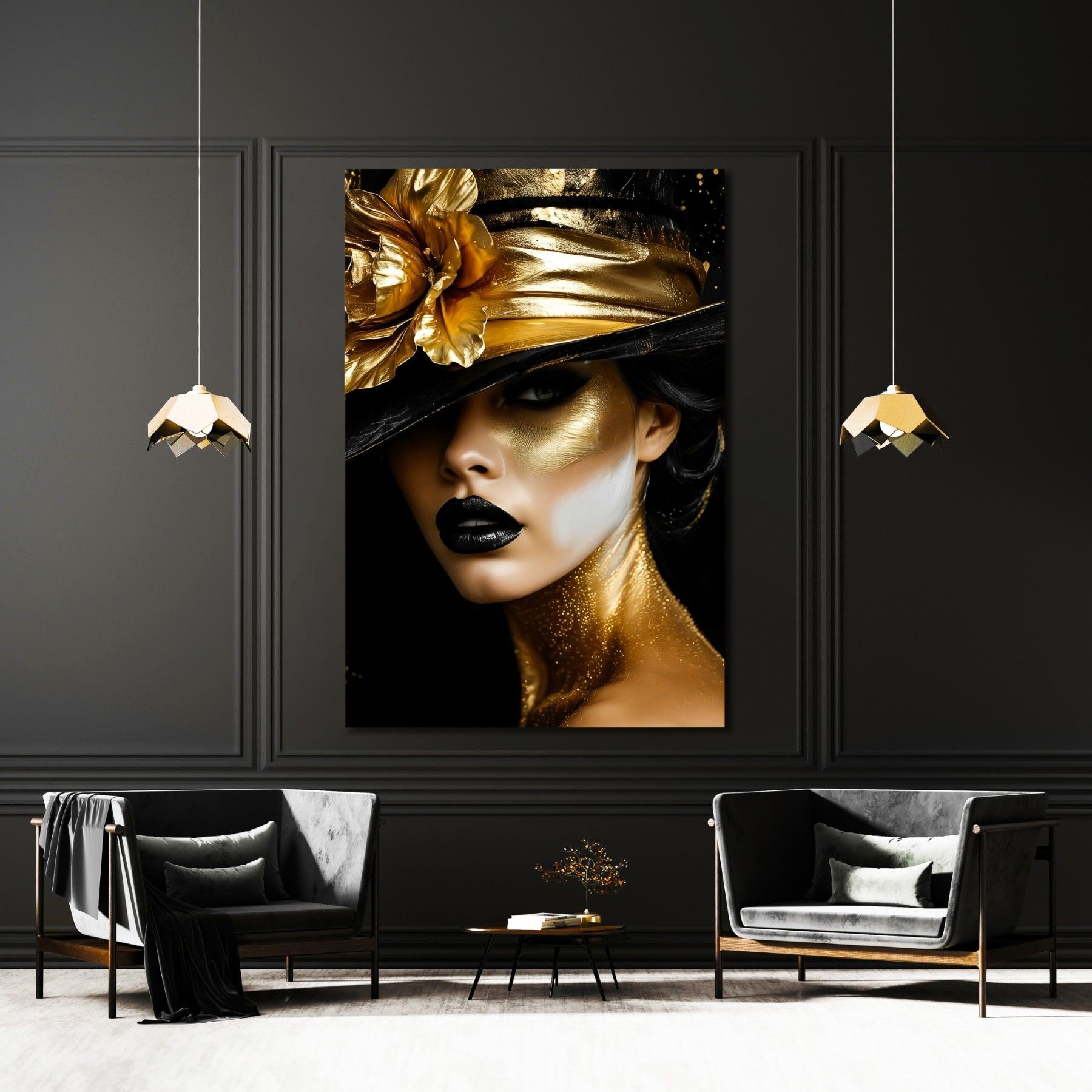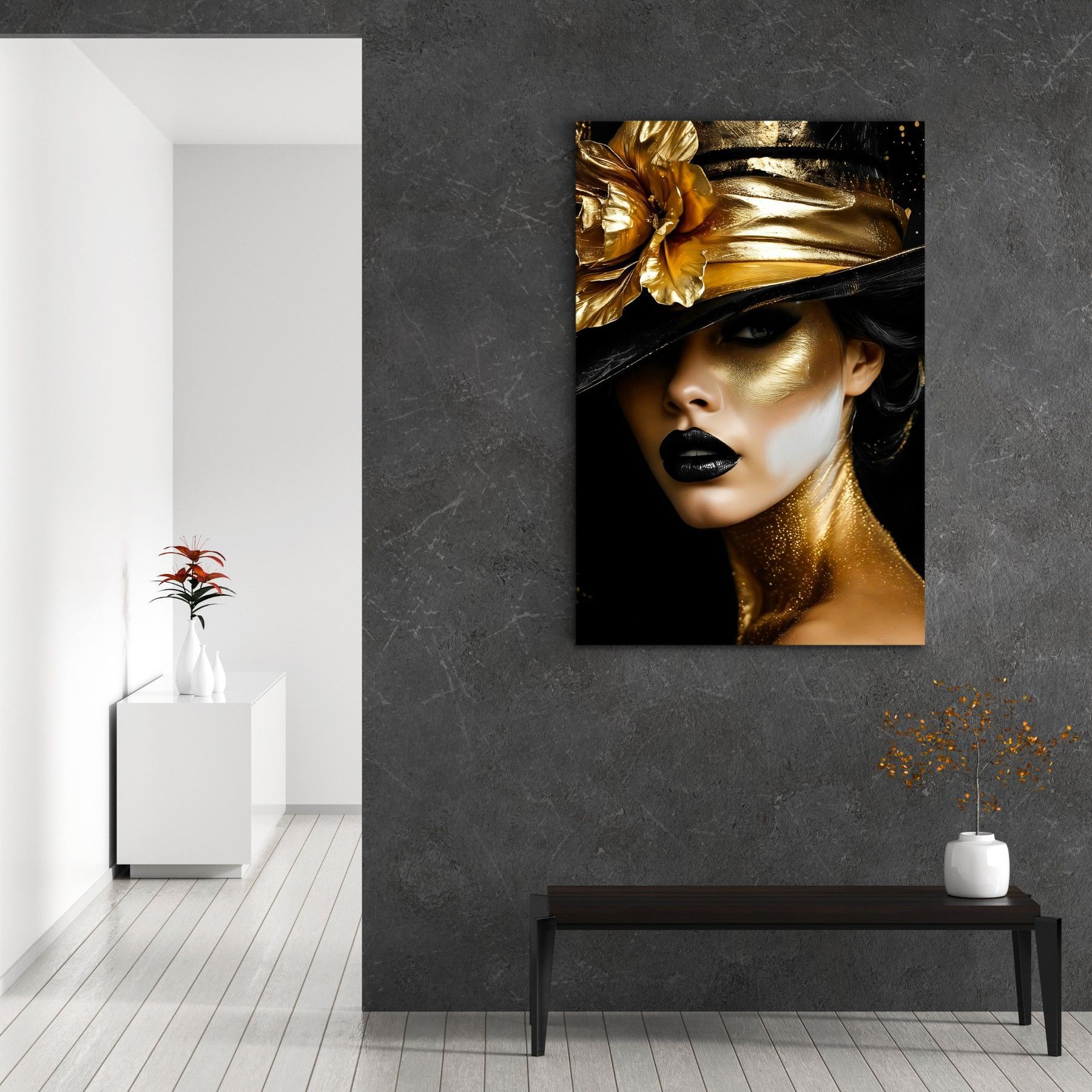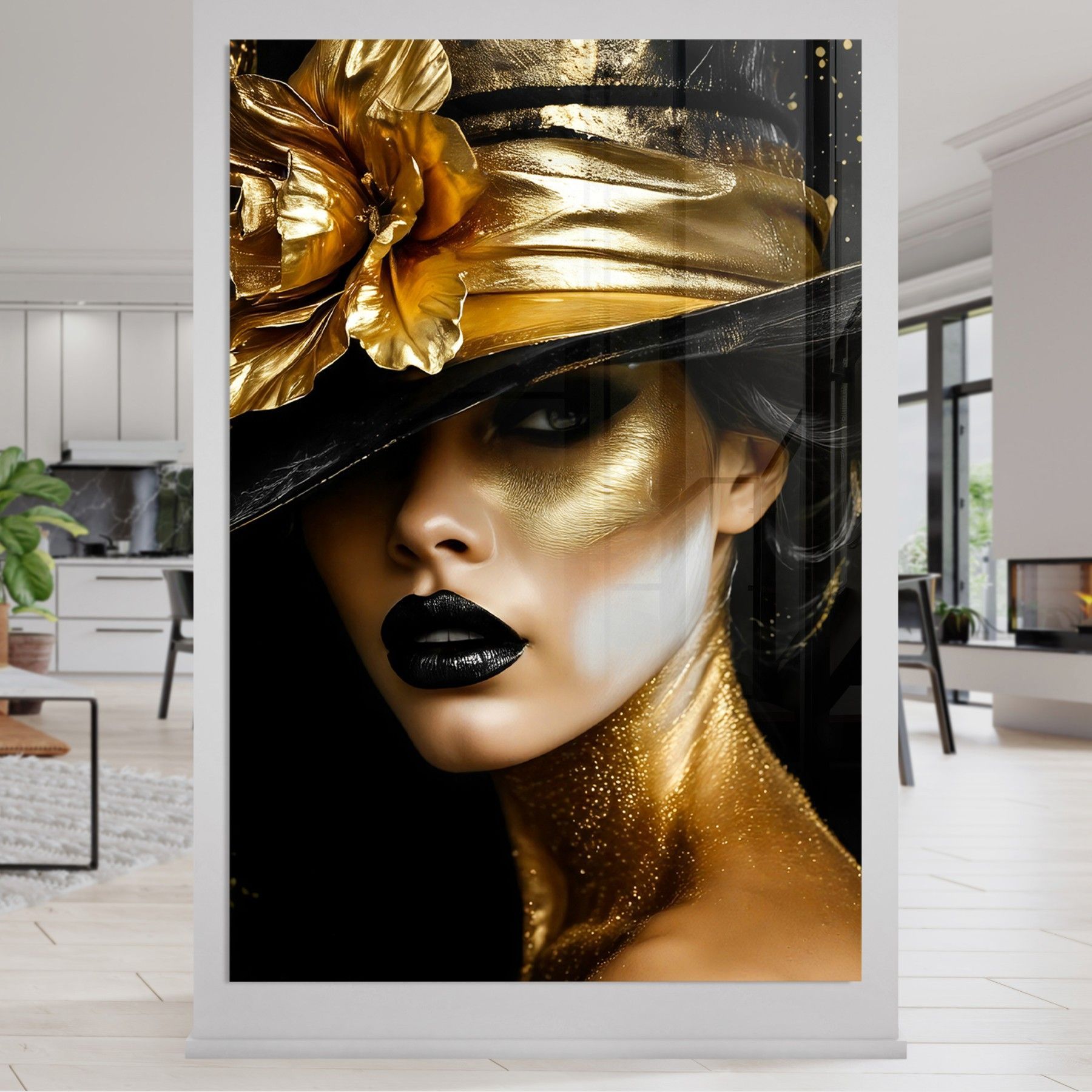 Wandbild, Mode Goldene Frau, Leinwand, Acrylglas, Poster - Kunst Art