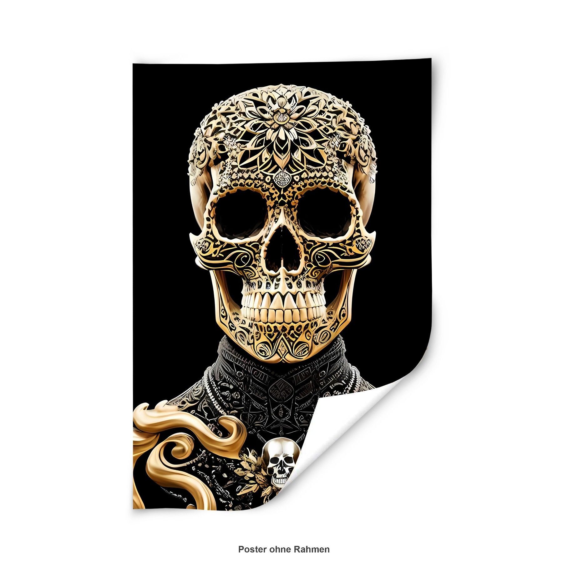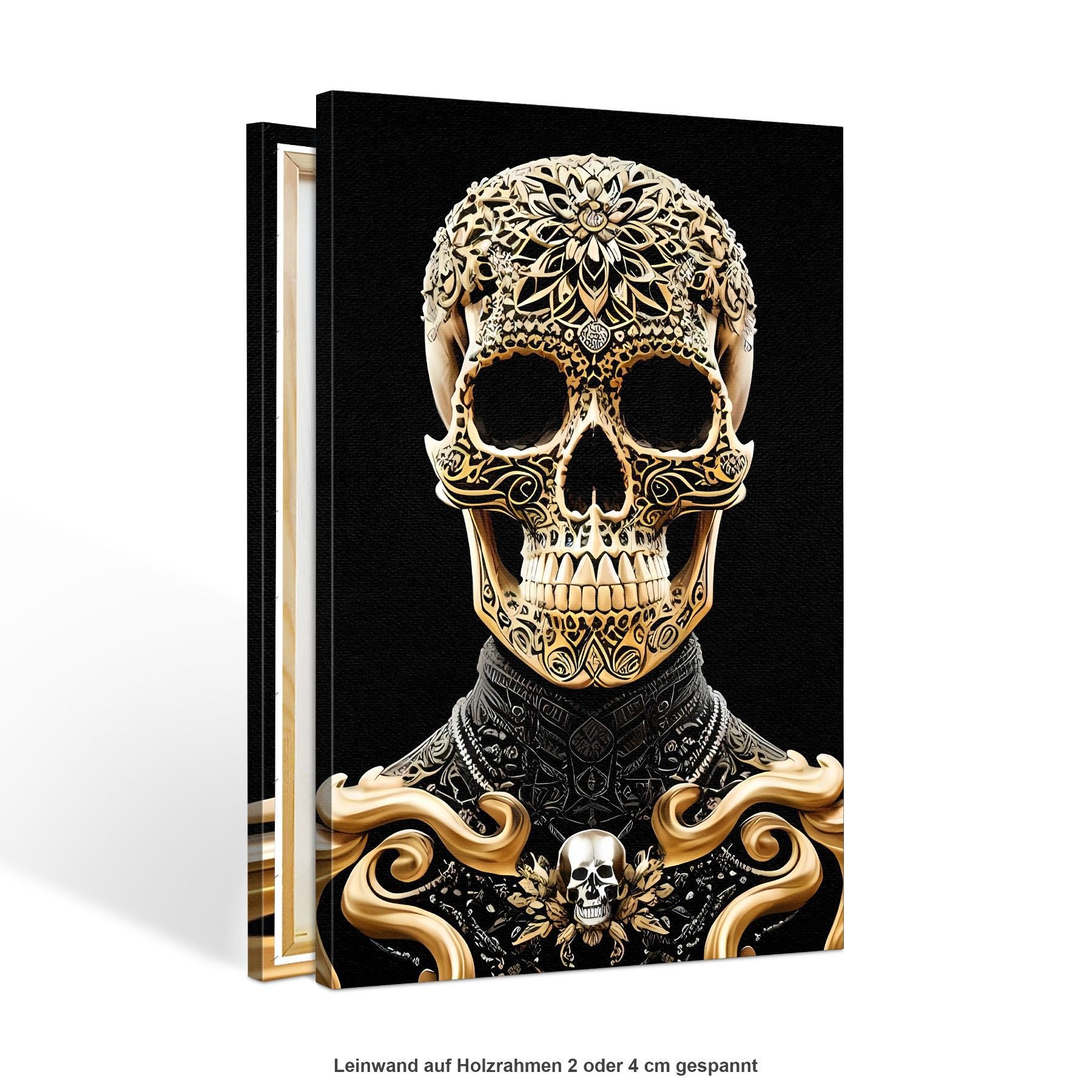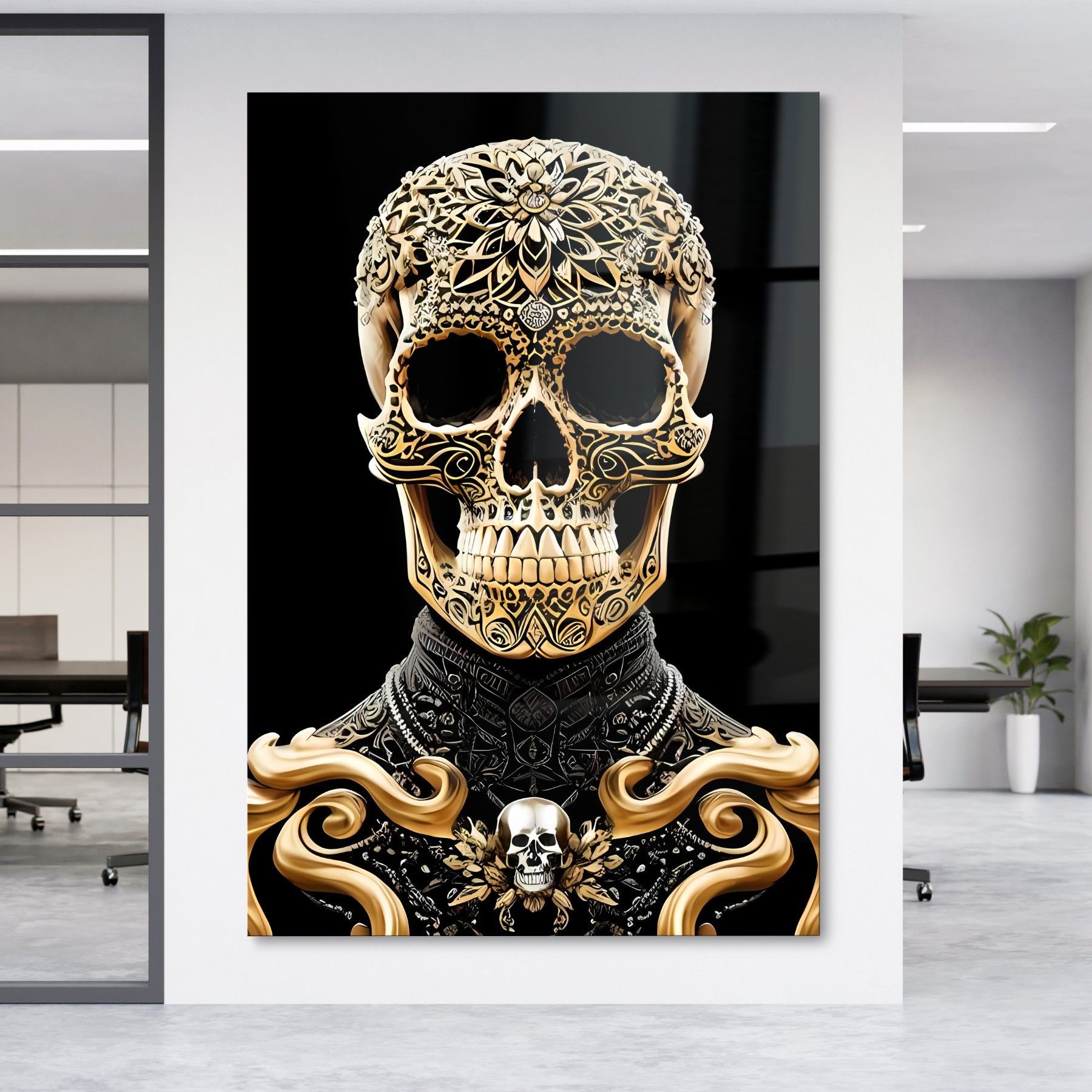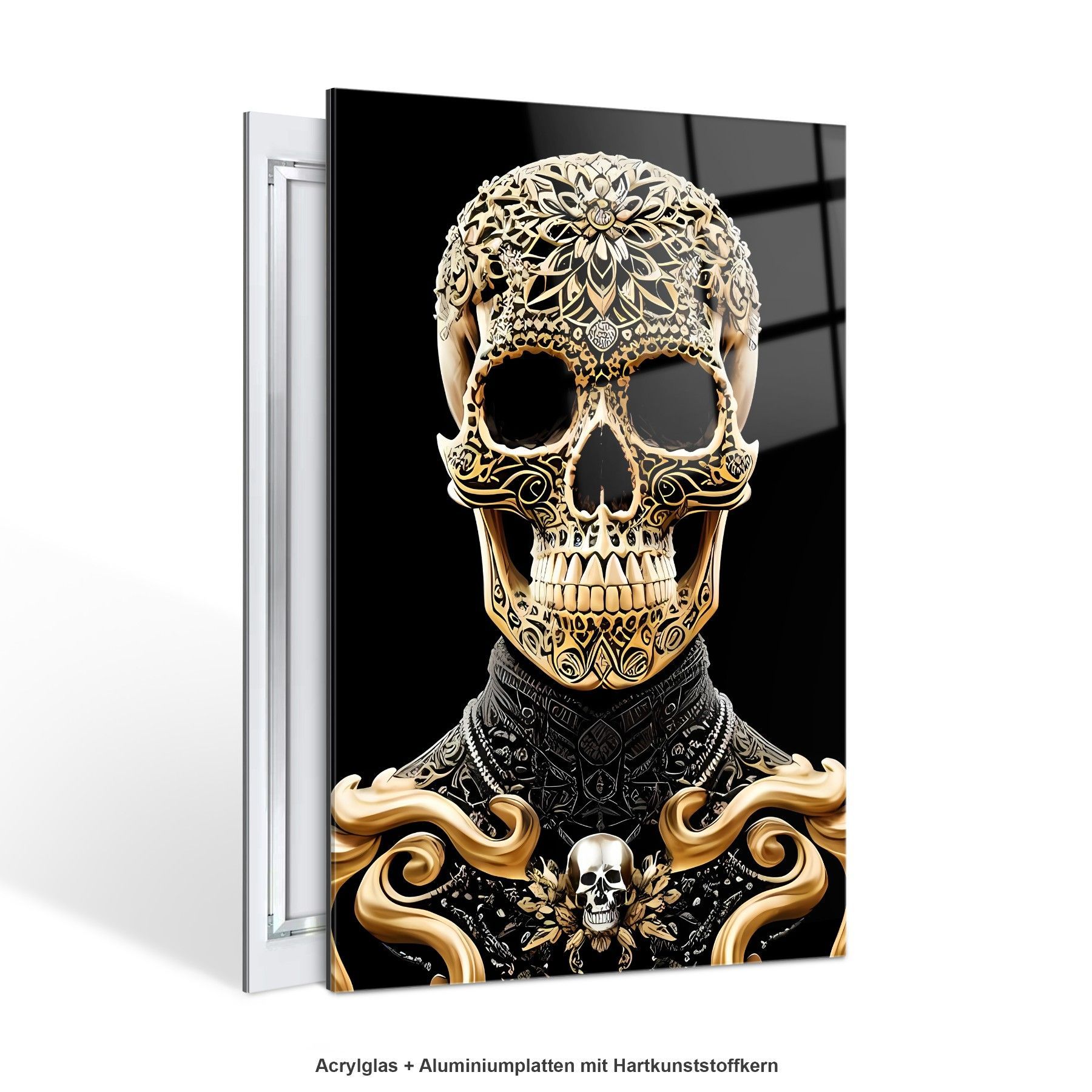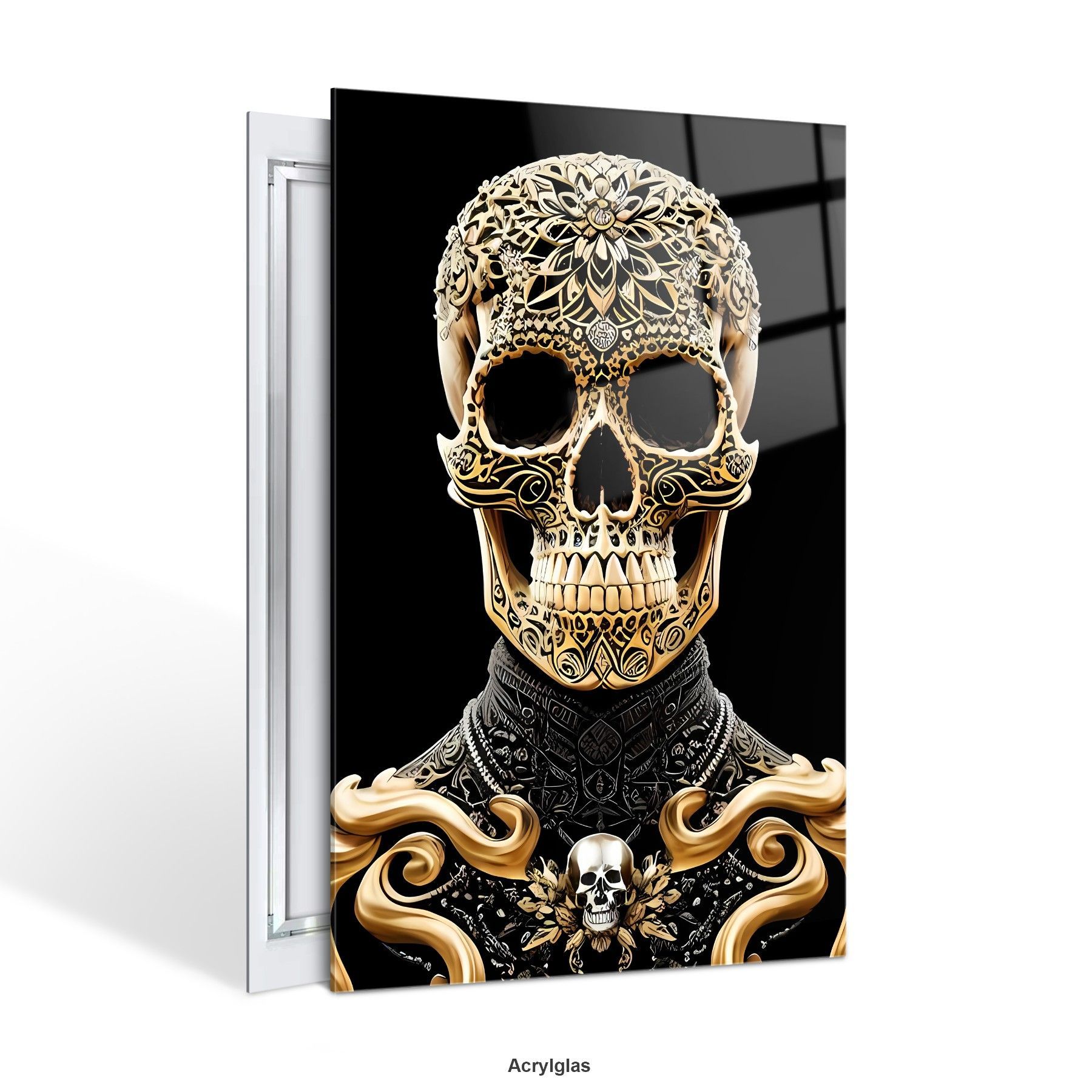 Wandbild Modern Art Golden Schädel Acrylglas + Aluminium , Leinwand , Poster