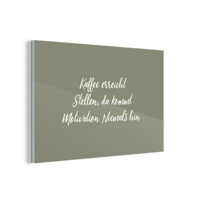 Glasbild Glasfoto Wandbild 80x60 cm Kaffee erreicht, da kommt Motivation nie hin - S