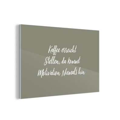 Glasbild Glasfoto Wandbild 80x60 cm Zitate - Kaffee erreicht, da kommt Motivation ni