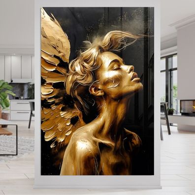 Frau mit Engelsflügeln, Gold Wandbild Kunst Leinwand, Acrylglas, Poster
