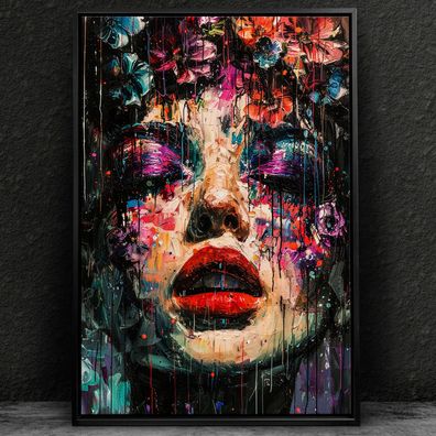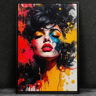 Frau in Farben Kunst, Wandbild Leinwand, Acrylglas oder Poster Bild