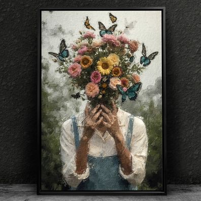 Wandbild, Abstrakte Frau mit Blumen im Kopf Kunst, Leinwand, Acrylglas oder Poster
