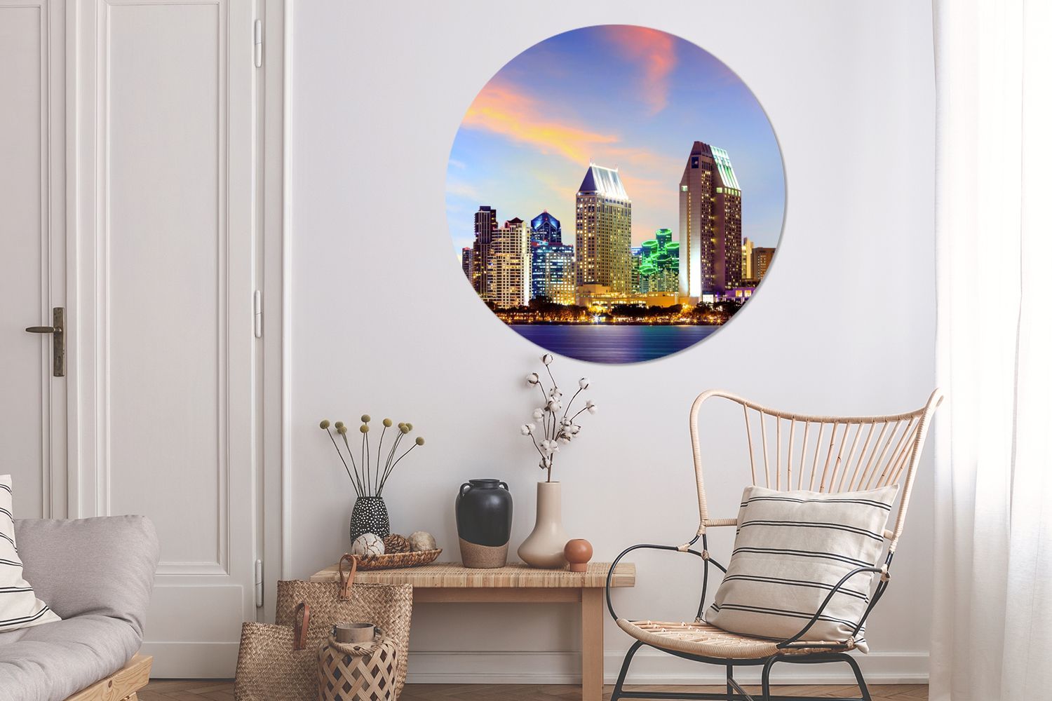 Wandbild Runde Bilder 120x120 cm Skyline - Vereinigte Staaten - Wasser