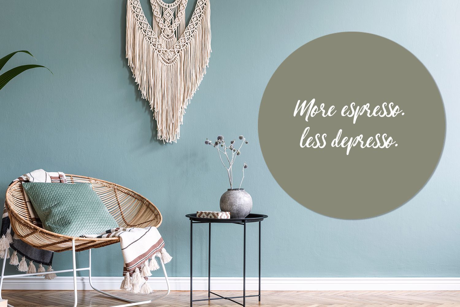 Wandbild Runde Bilder 120x120 cm Zitate - Mehr Espresso. Weniger Depresso. - Zitate -