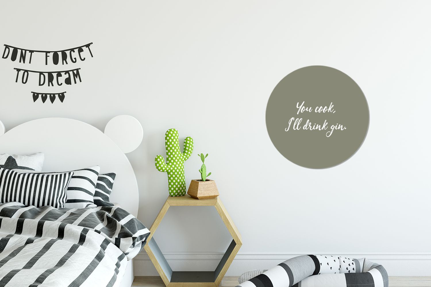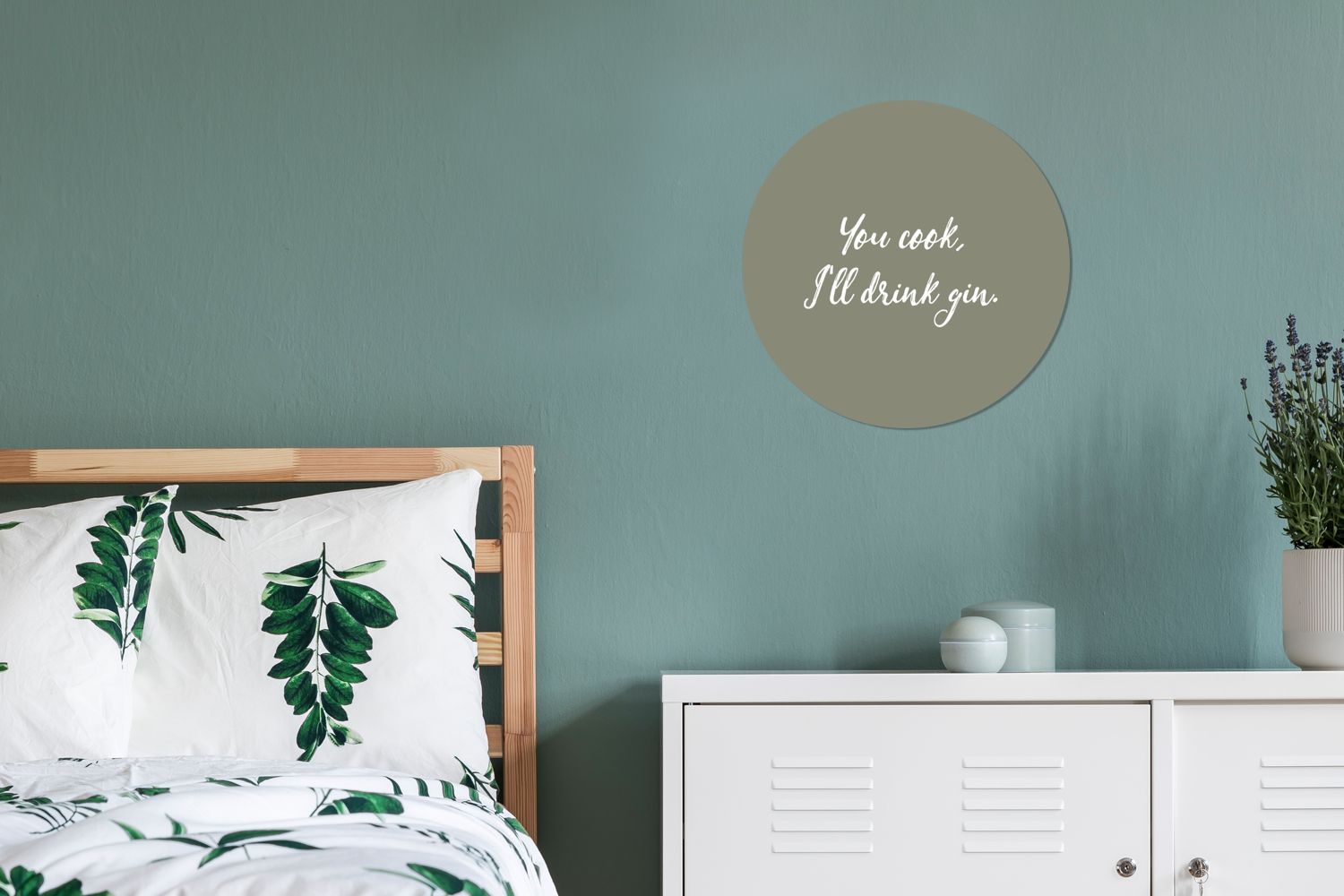 Wandbild Runde Bilder 30x30 cm Zitate - Du kochst, ich trinke Gin - Sprichwörter