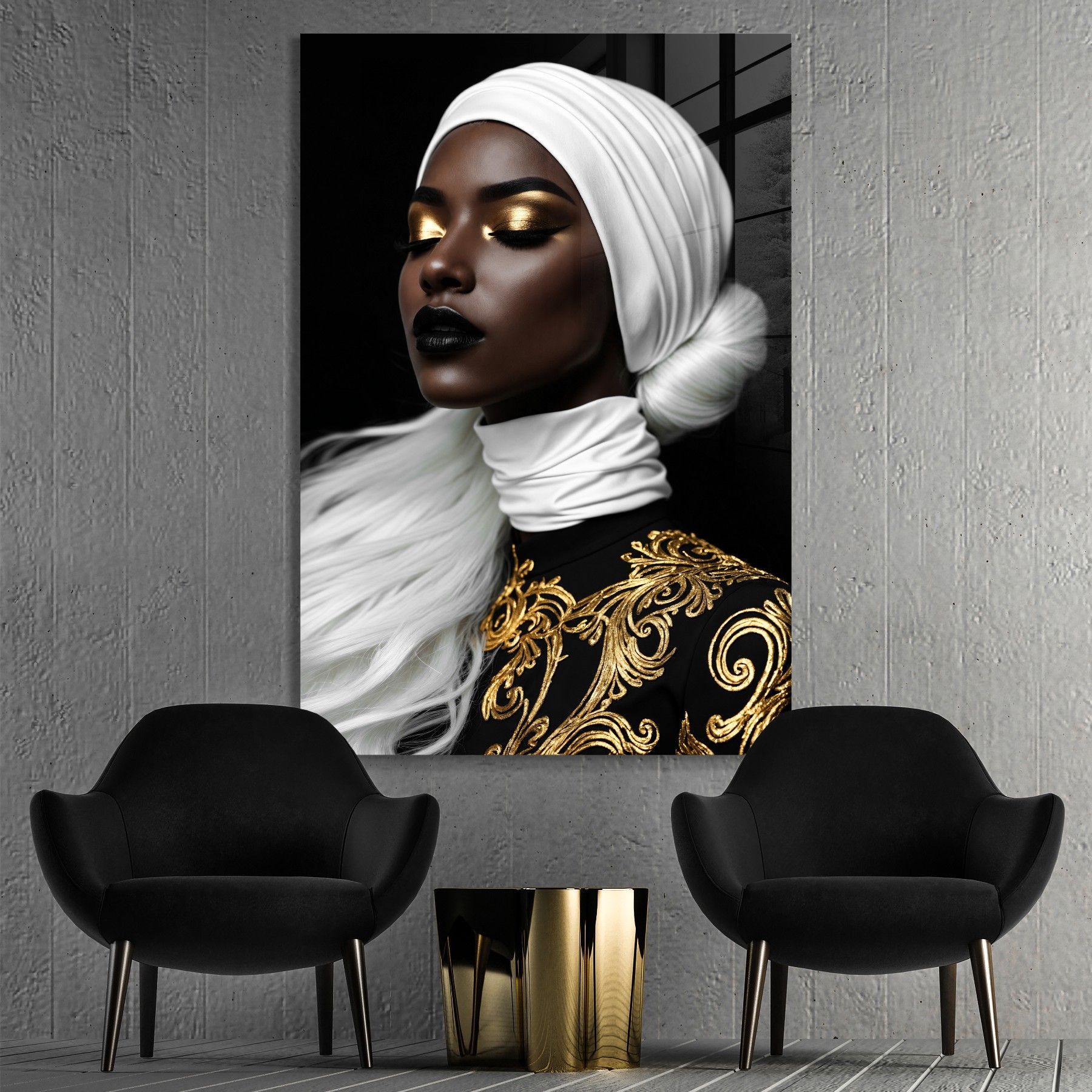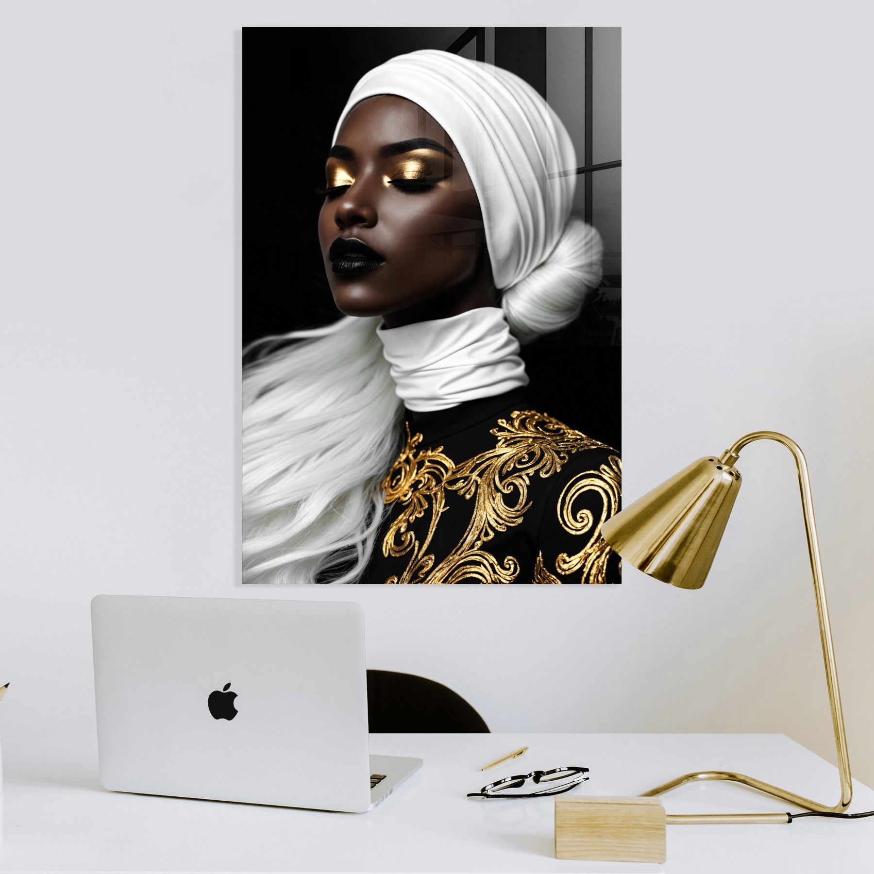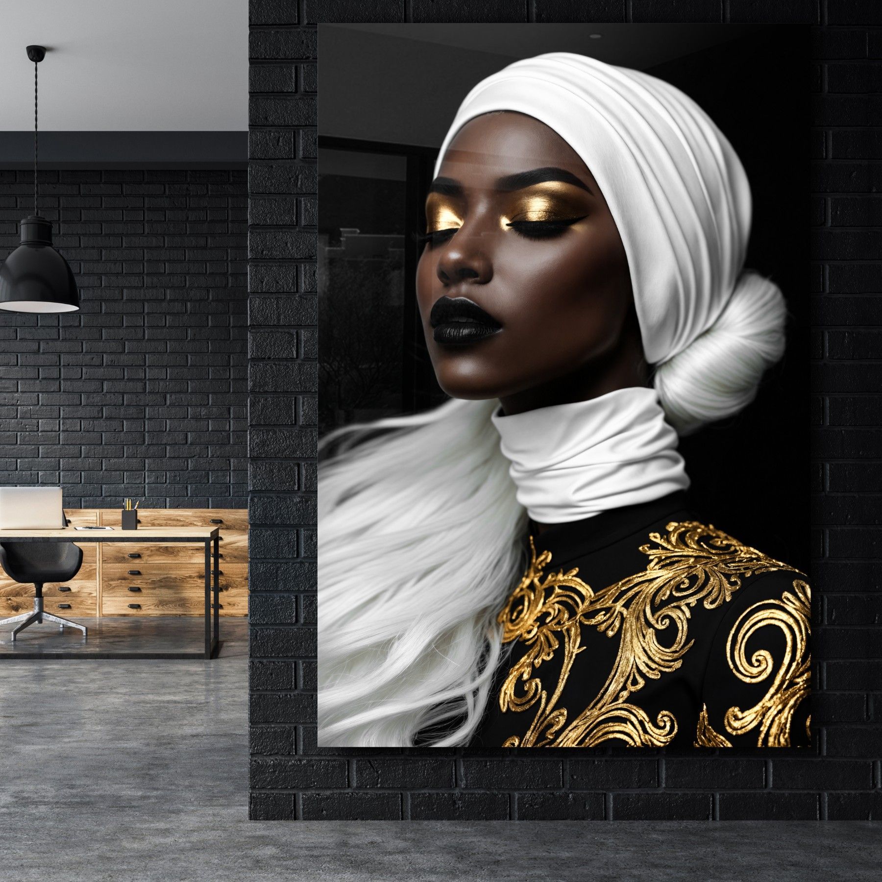Wandbild, Schwarzes Gold Mode Frau Kunst Leinwand, Acrylglas oder Poster