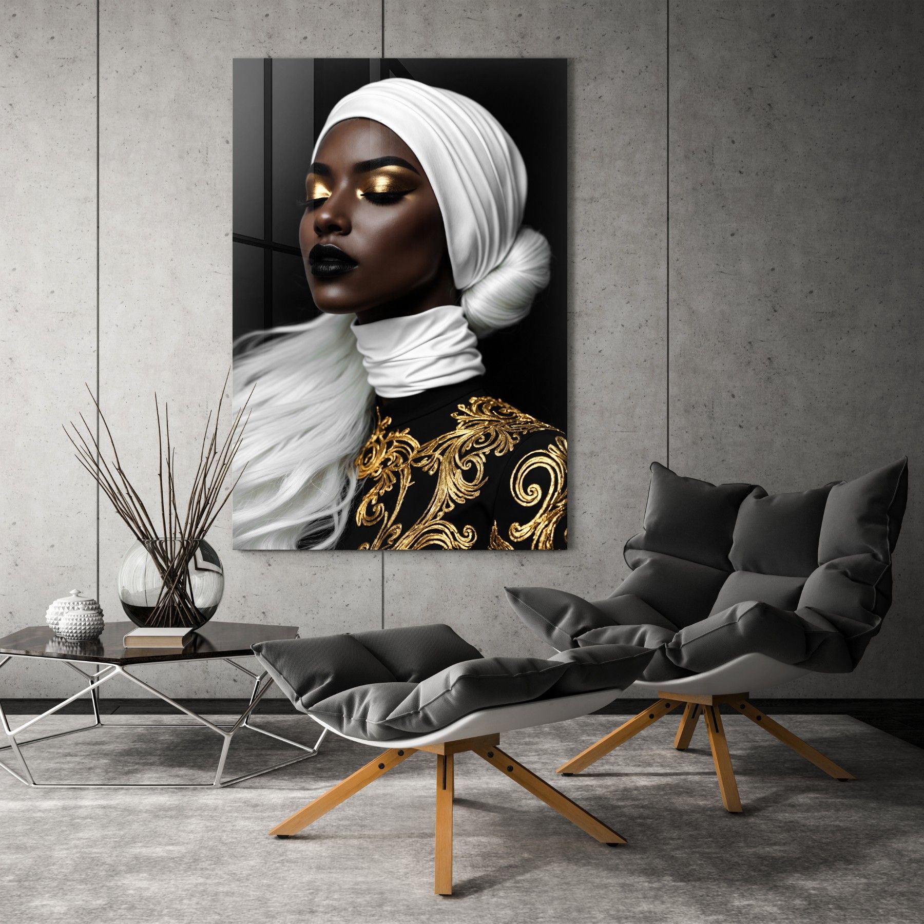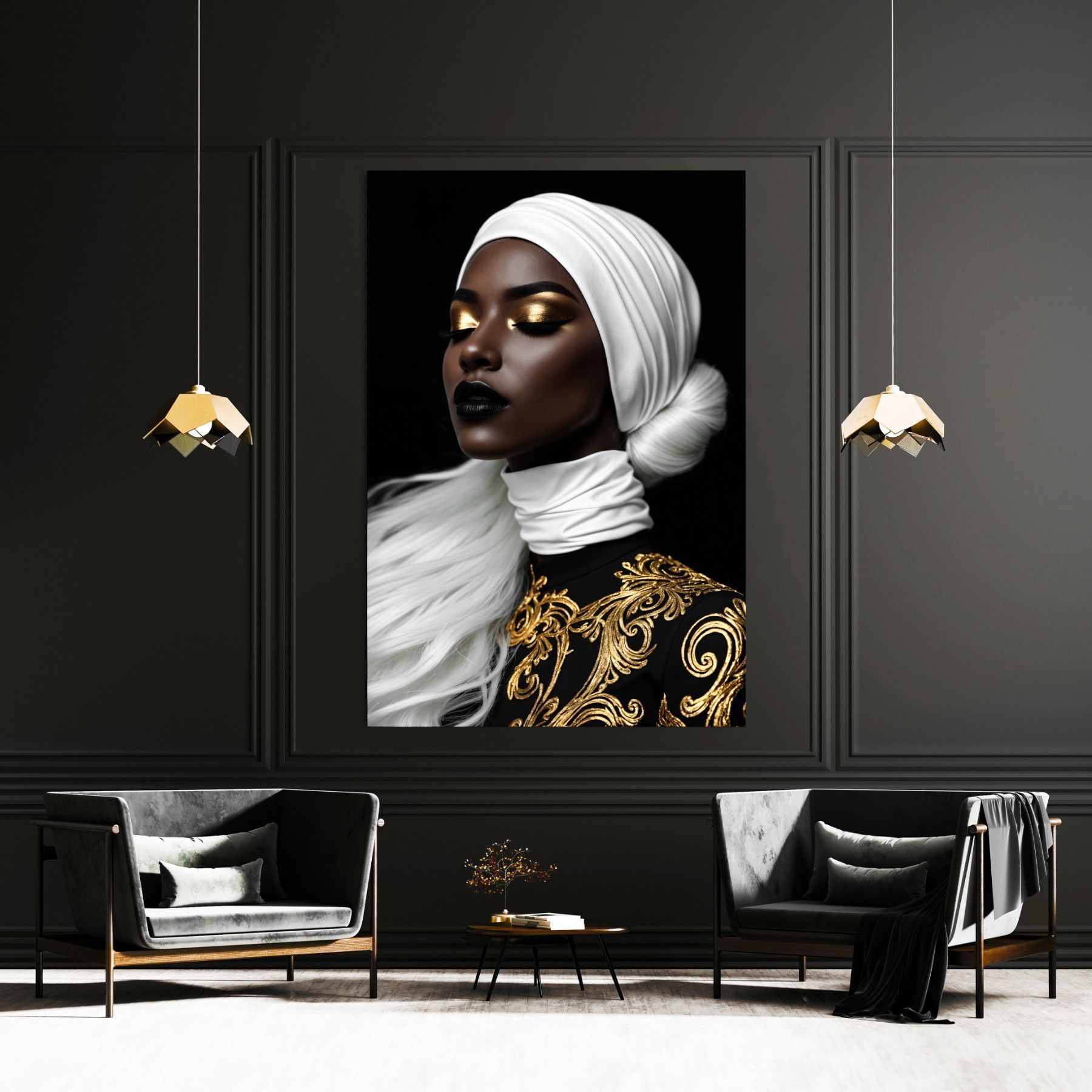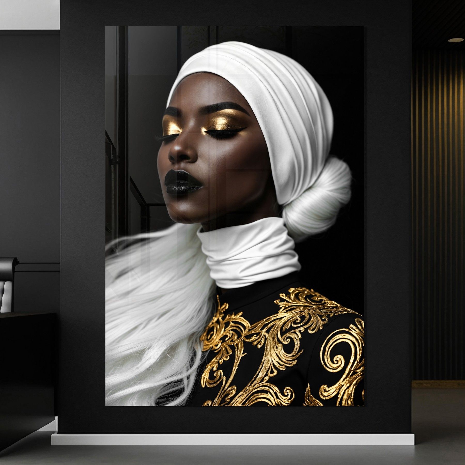 Wandbild, Schwarzes Gold Mode Frau Kunst Leinwand, Acrylglas oder Poster