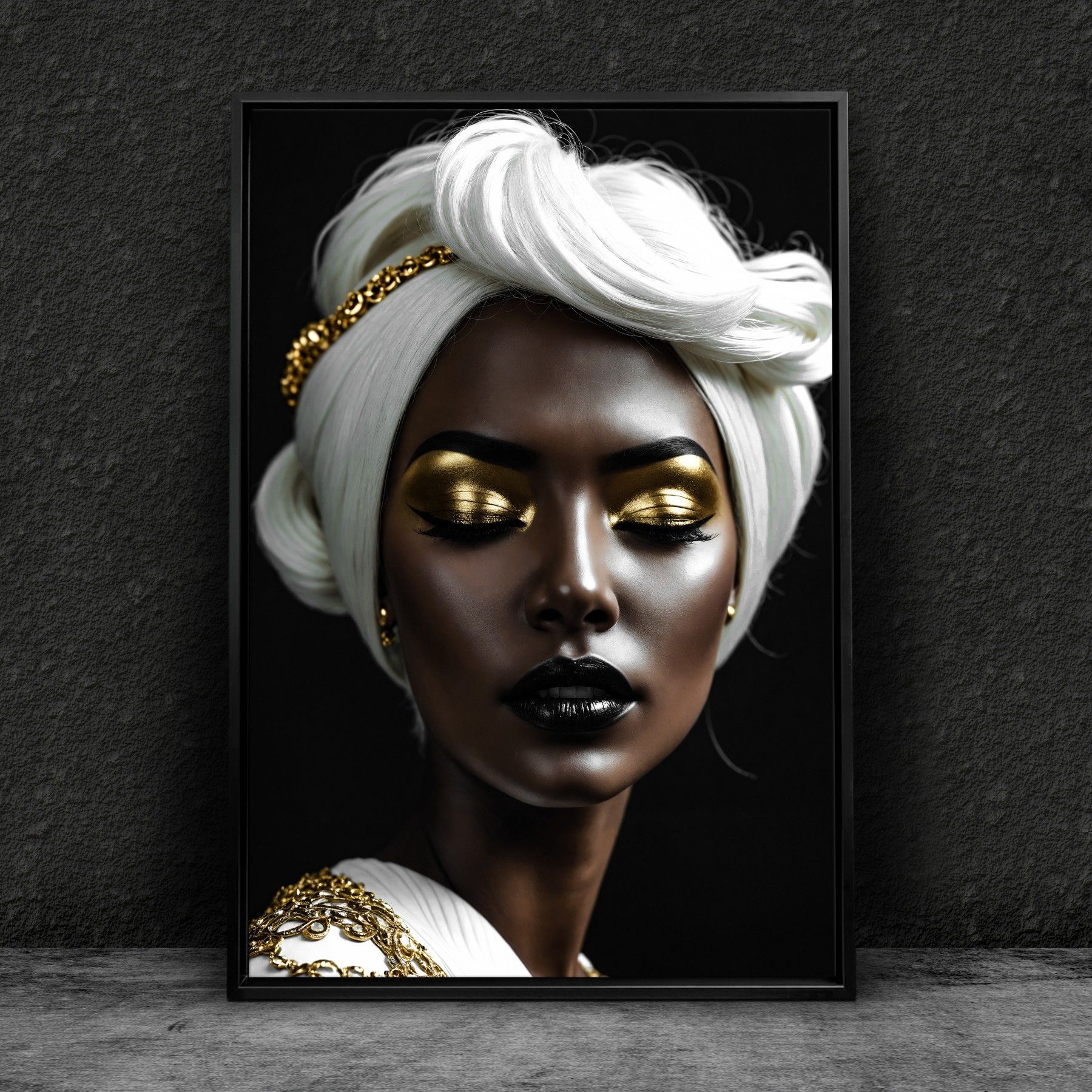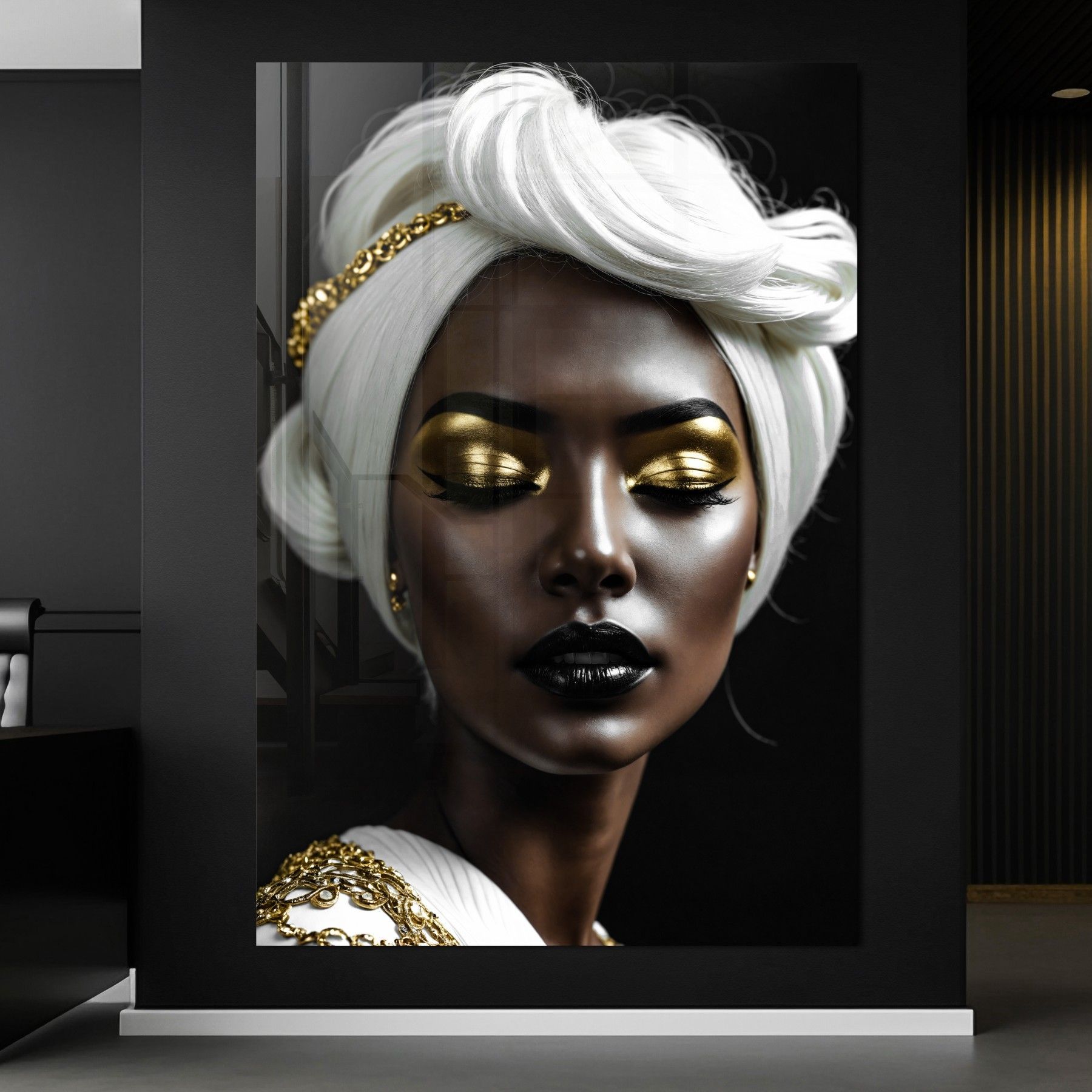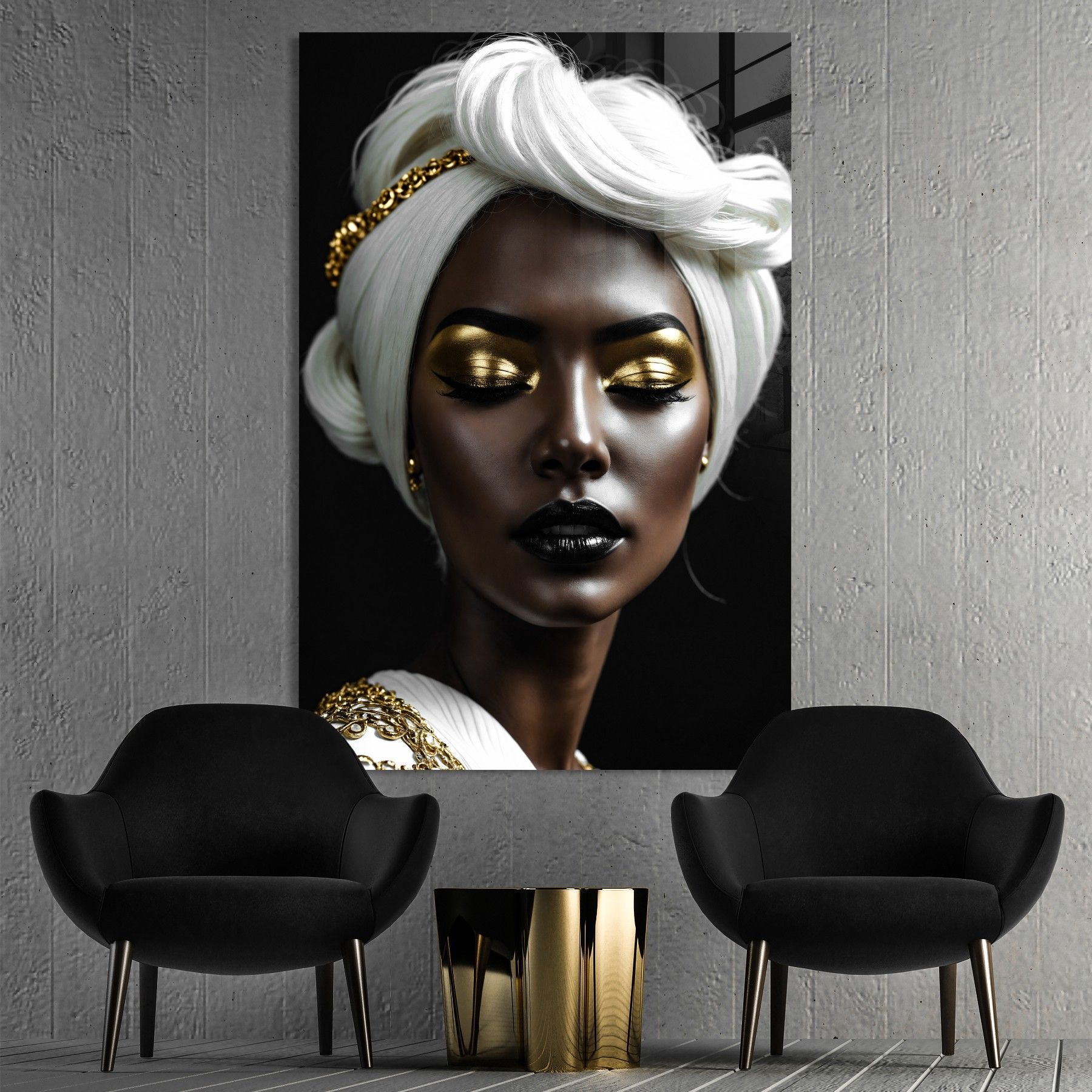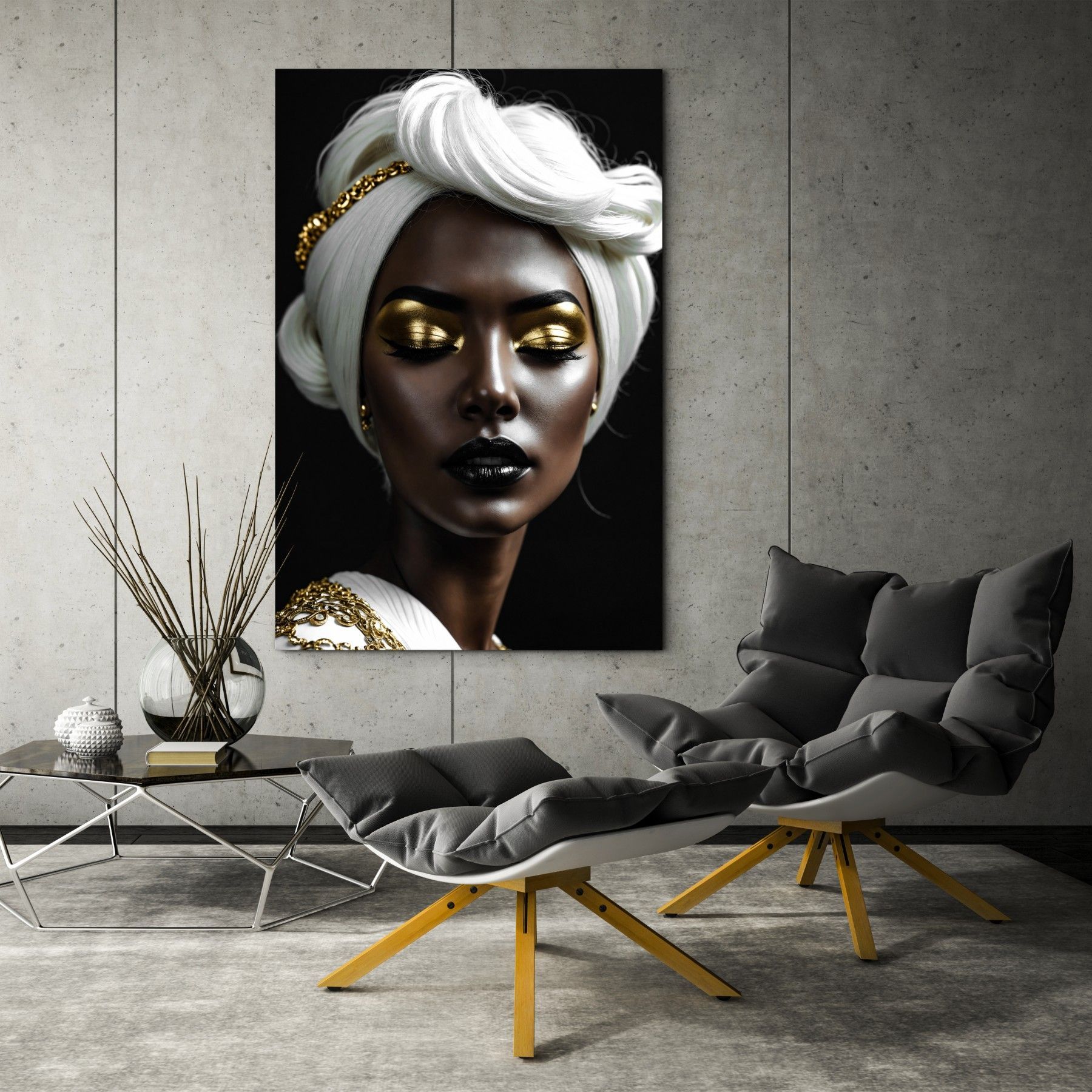Wandbild, Schwarzes Gold Mode Frau Kunst Poster, Leinwand, Acrylglas oder Poster