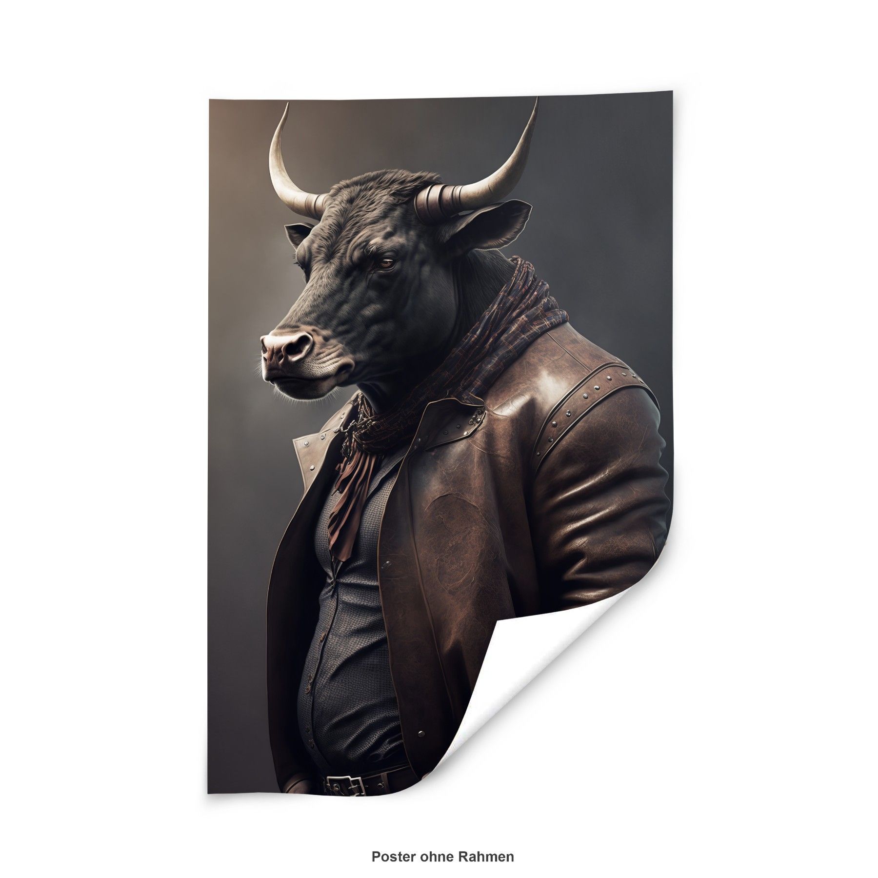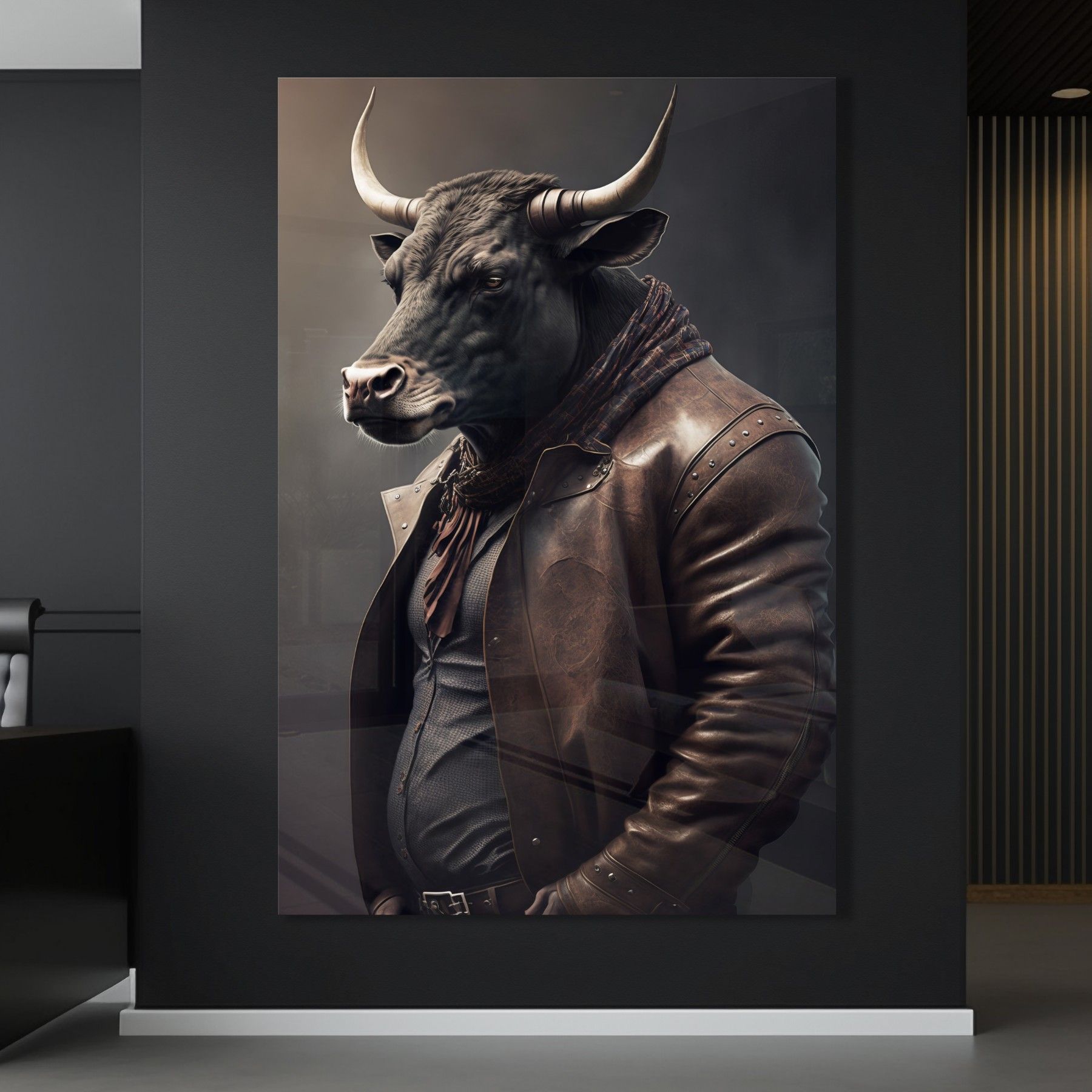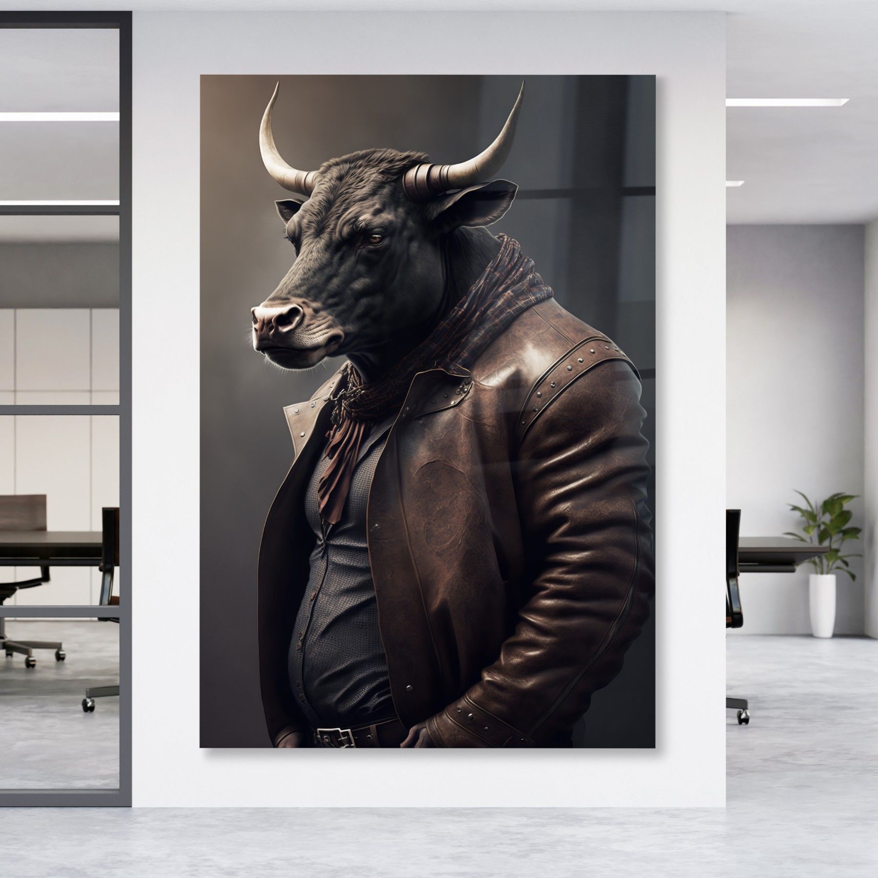 Wandbild Stier trägt eine Jacke Business Leinwand , Acrylglas + Aluminium, Poster
