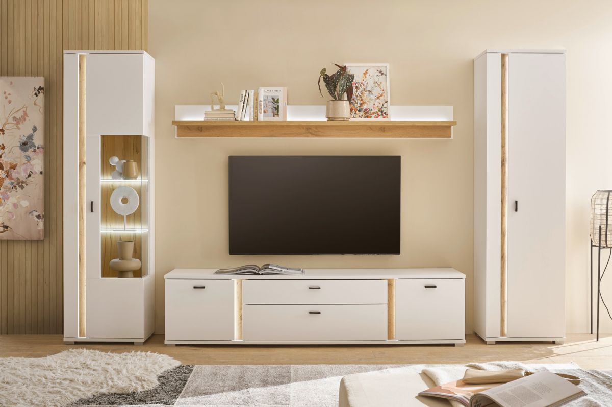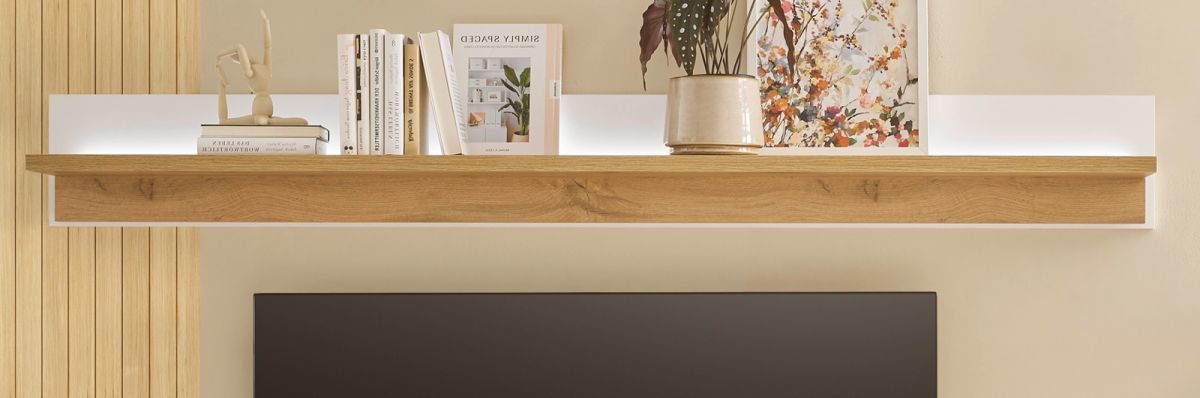 Wandboard Regal weiß matt Eiche Wandregal inkl. Beleuchtung Bücherregal Bellport