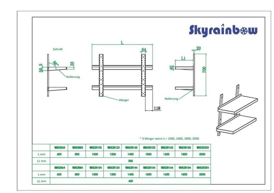 • Wandbord Edelstahl Verstärkt, 1 Boden, 140X40