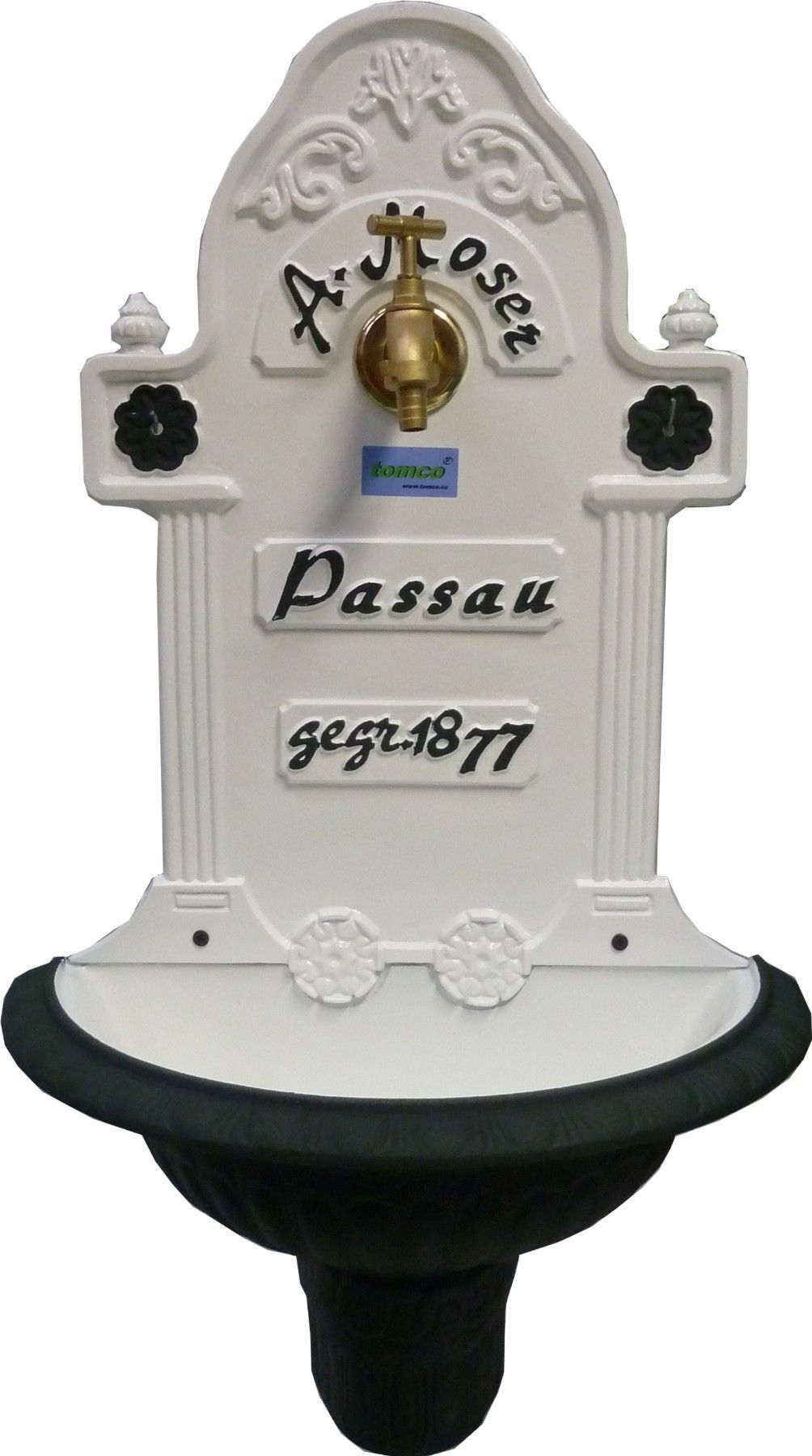 Wandbrunnen Modell Passau Aluminium speziallackiert weiß/grün mit Schlauchhalter grün