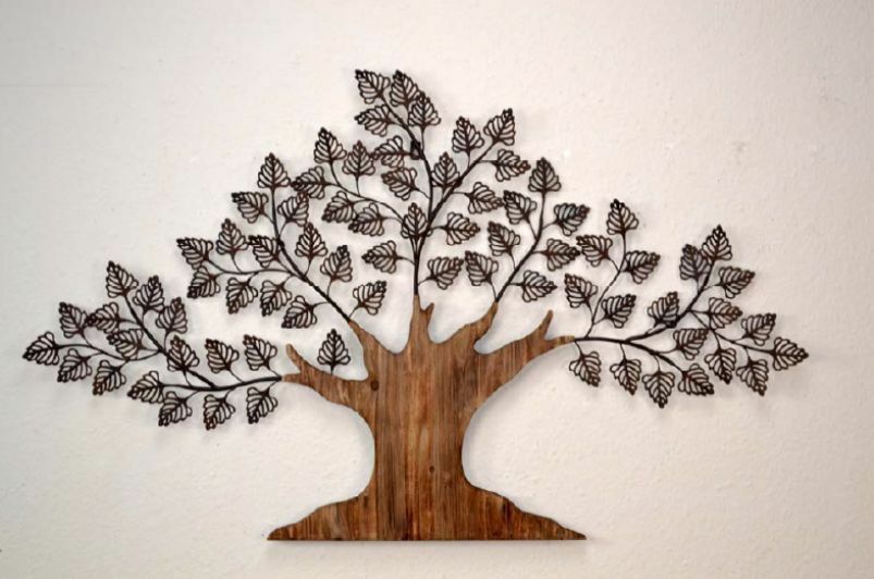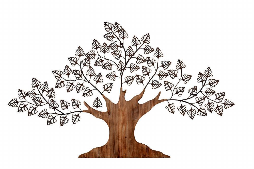 Wanddekoration Baum Wanddeko Deko Massivholz Metall braun Blätter Wandschmuck