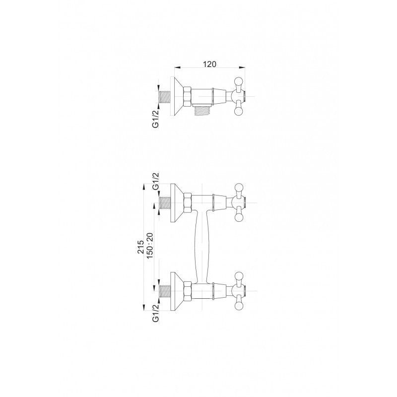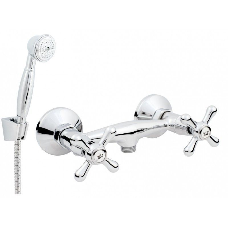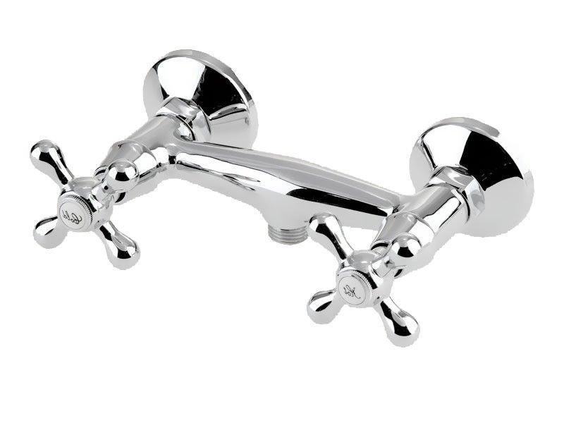 Wandduschmischer Duscharmatur Retro Brause Kreuzgriffe inkl. Handbrause