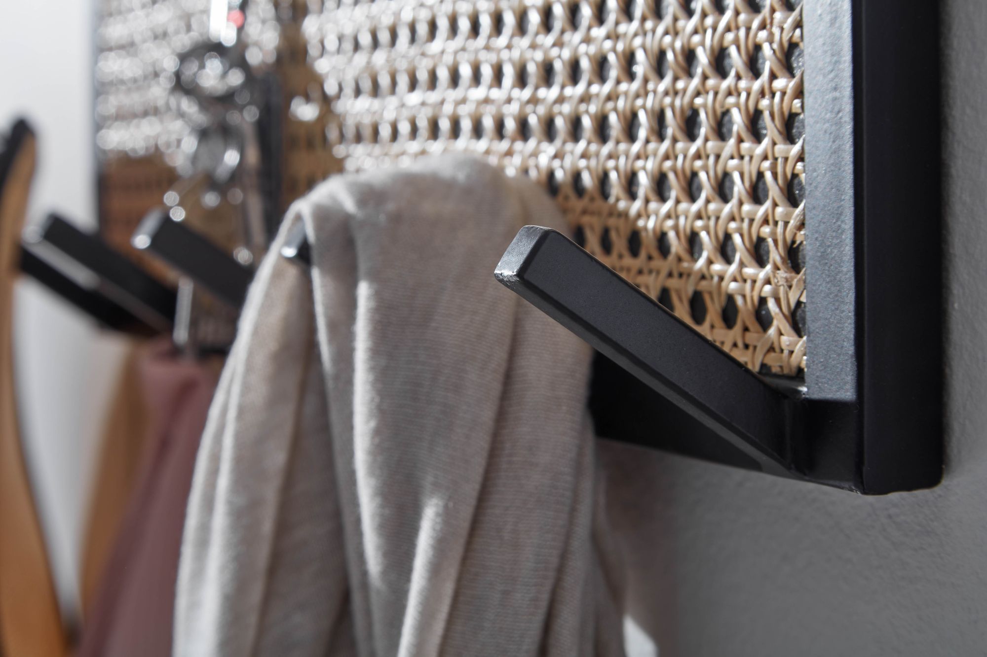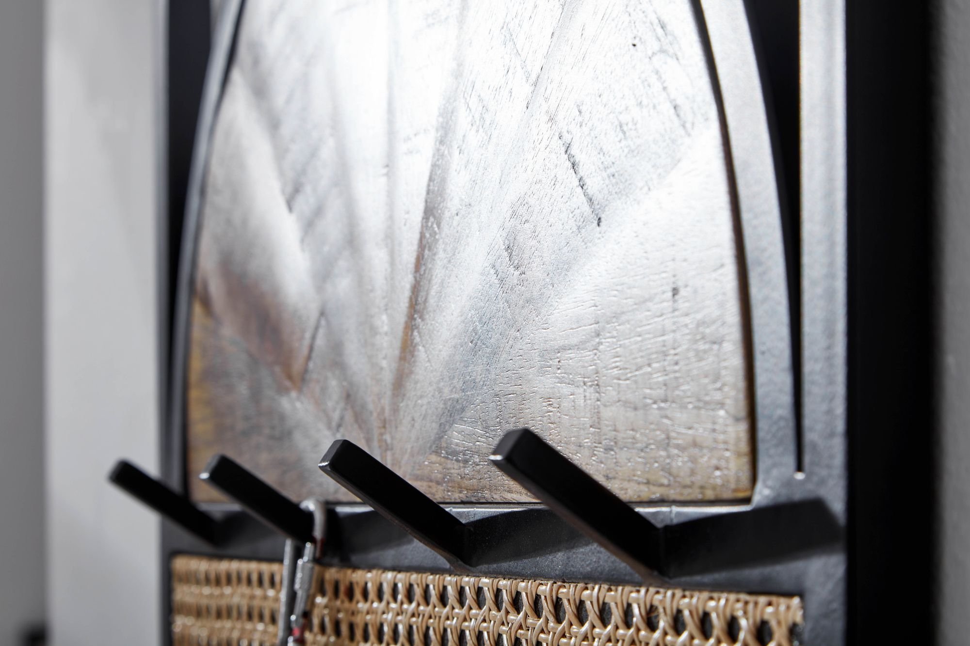 FineBuy Wandgarderobe FineBuy Massivholz 53 cm Garderobe Flur Wiener Geflecht Paneel