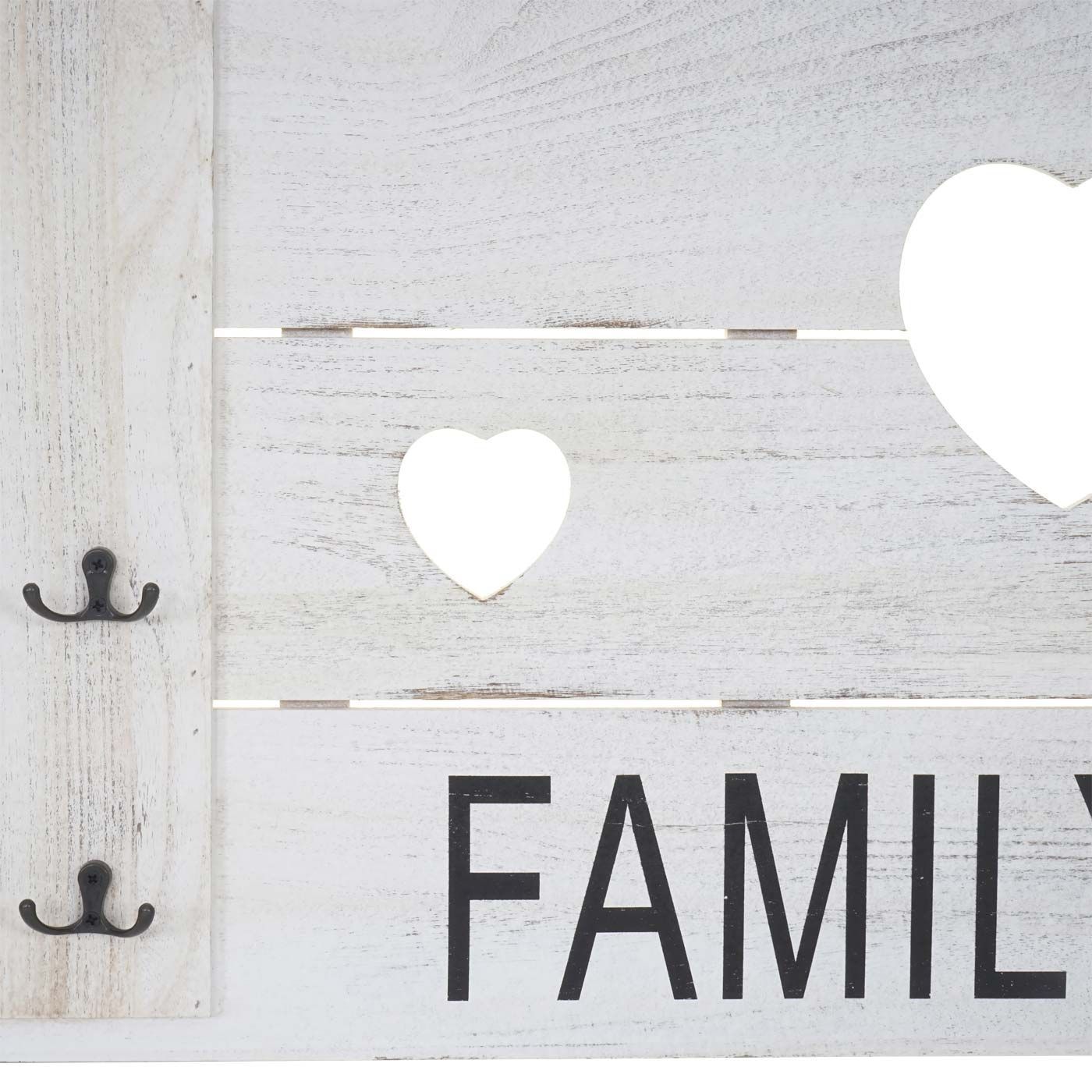 • Wandgarderobe Family Rules, Garderobe Shabby-Look Vintage mit 3 Haken 76x31cm