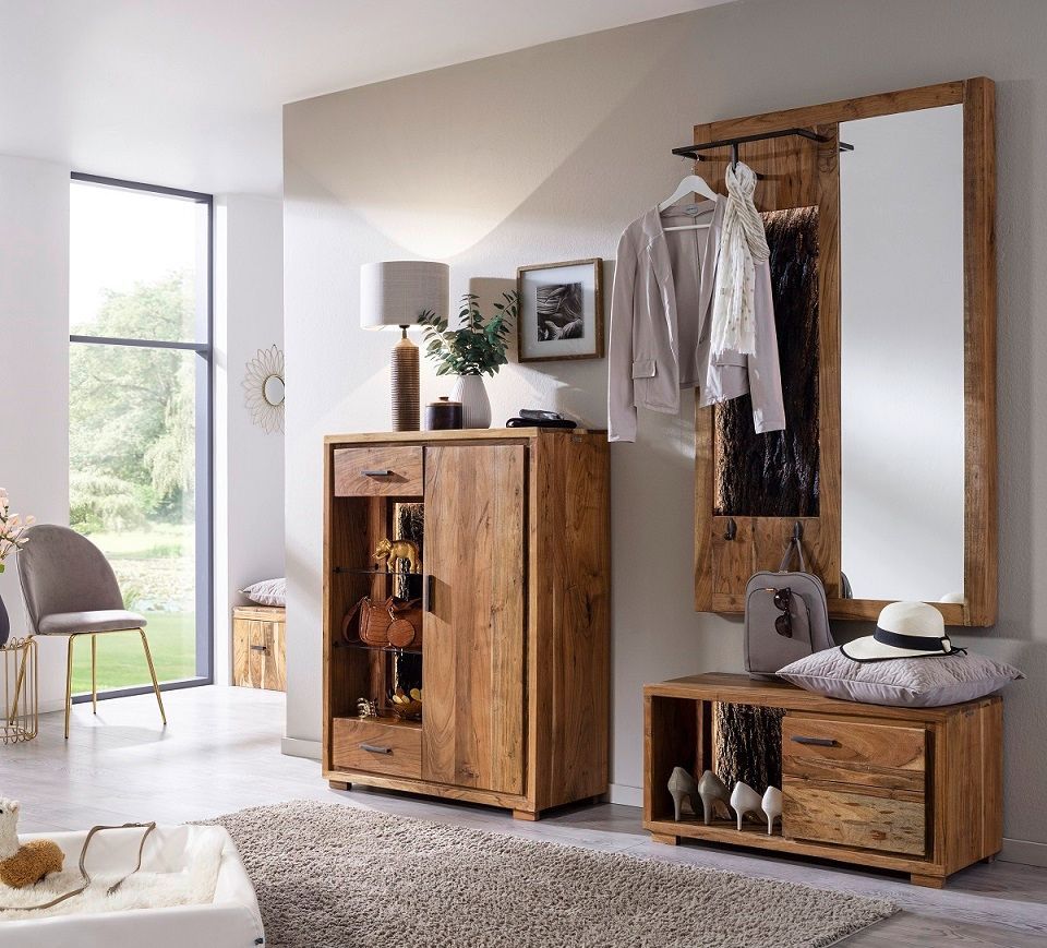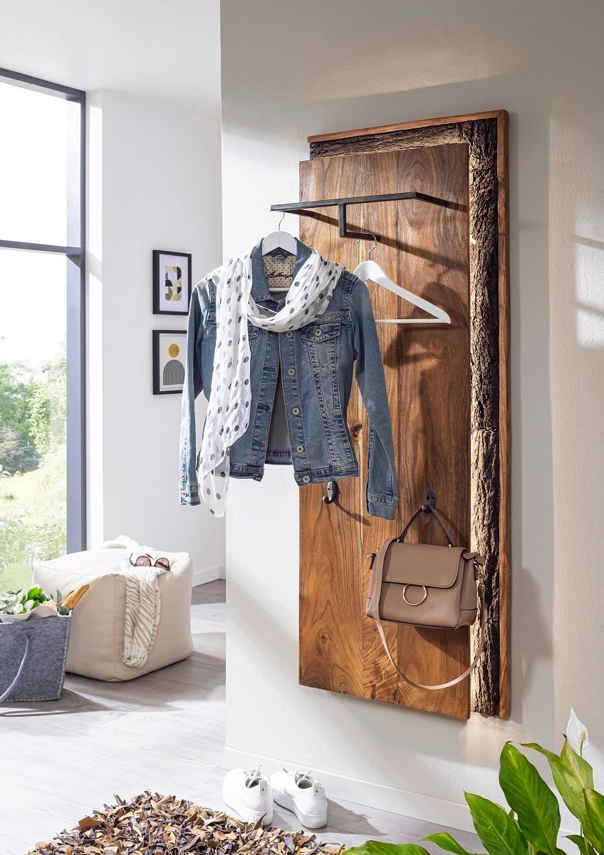 Wandgarderobe inkl. Beleuchtung 56x150cm 'Sadar' Akazie massiv