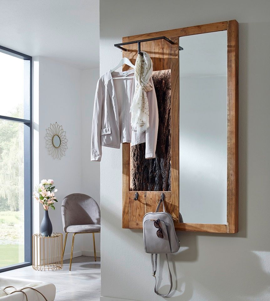 Wandgarderobe inkl. Beleuchtung 88x148cm 'Sadar' Akazie massiv