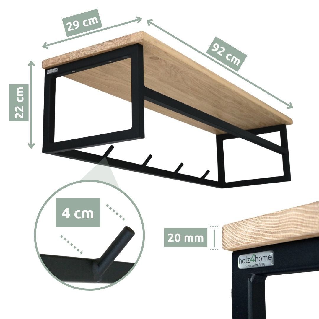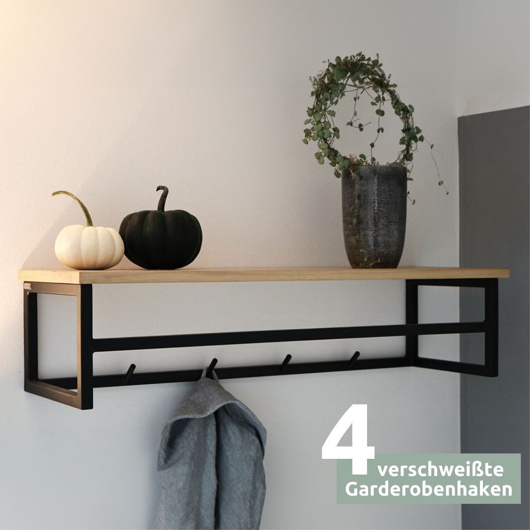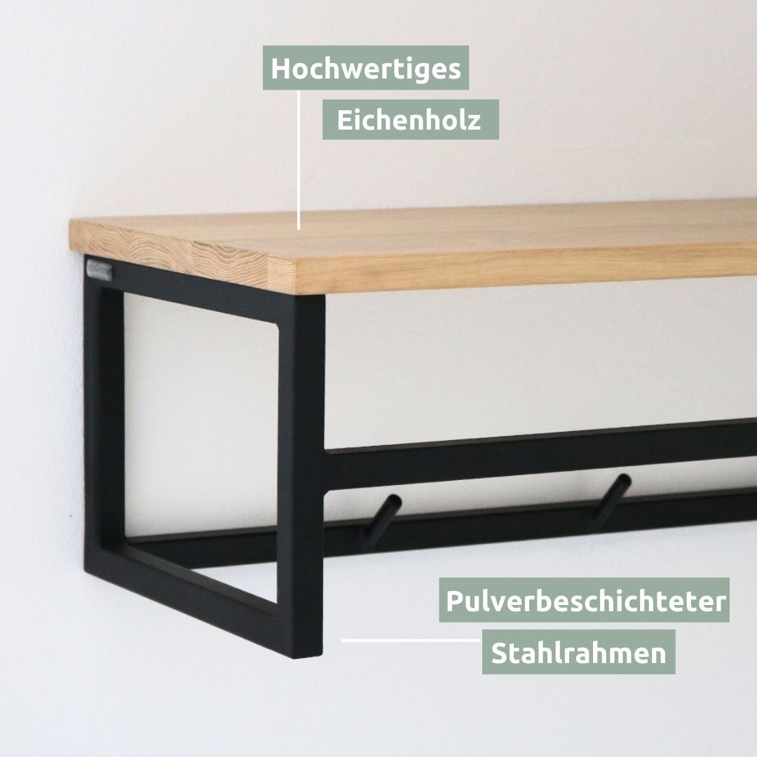Wandgarderobe mit Ablage aus Eiche und Metall - Kleidergarderobe Flur