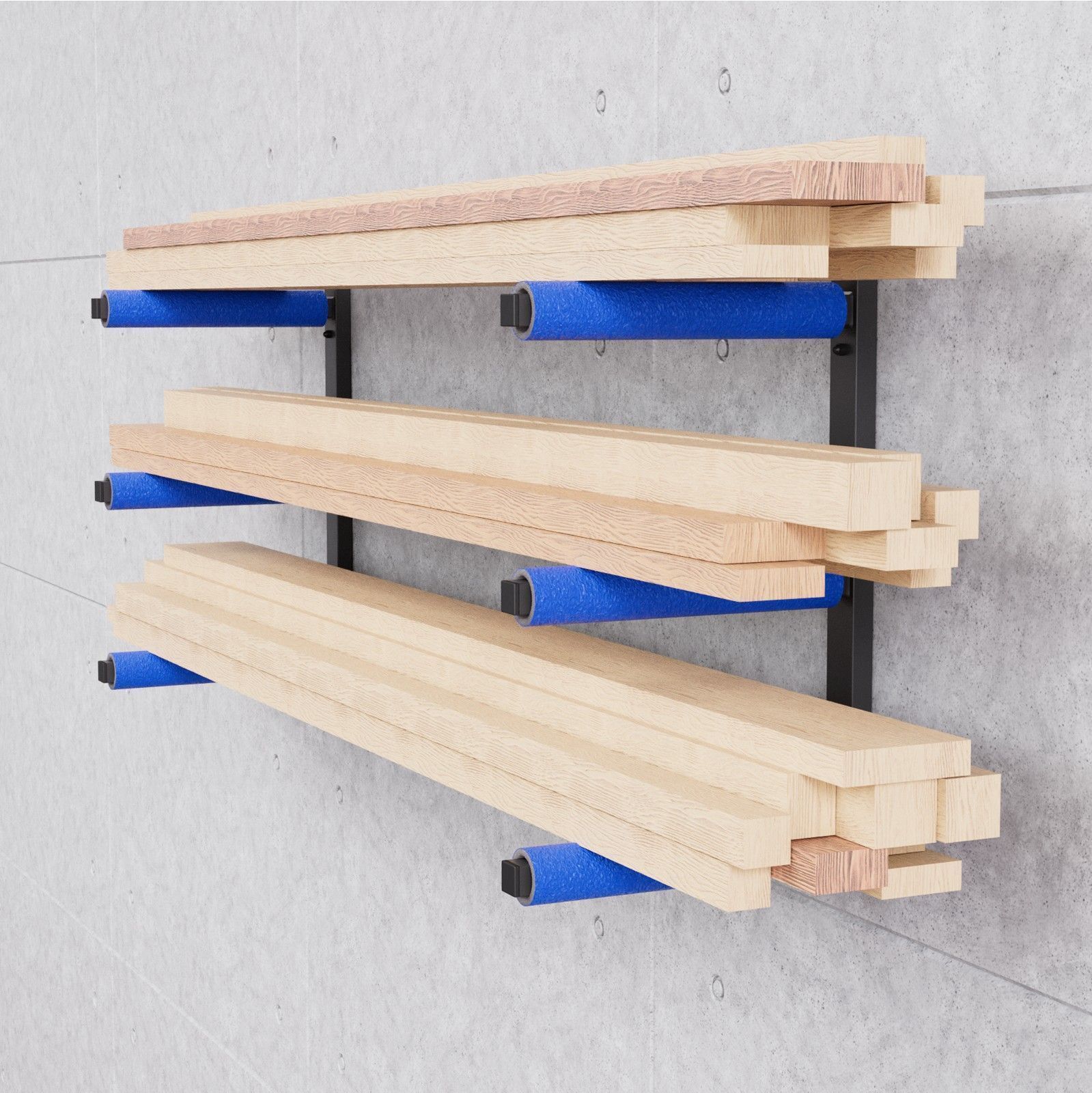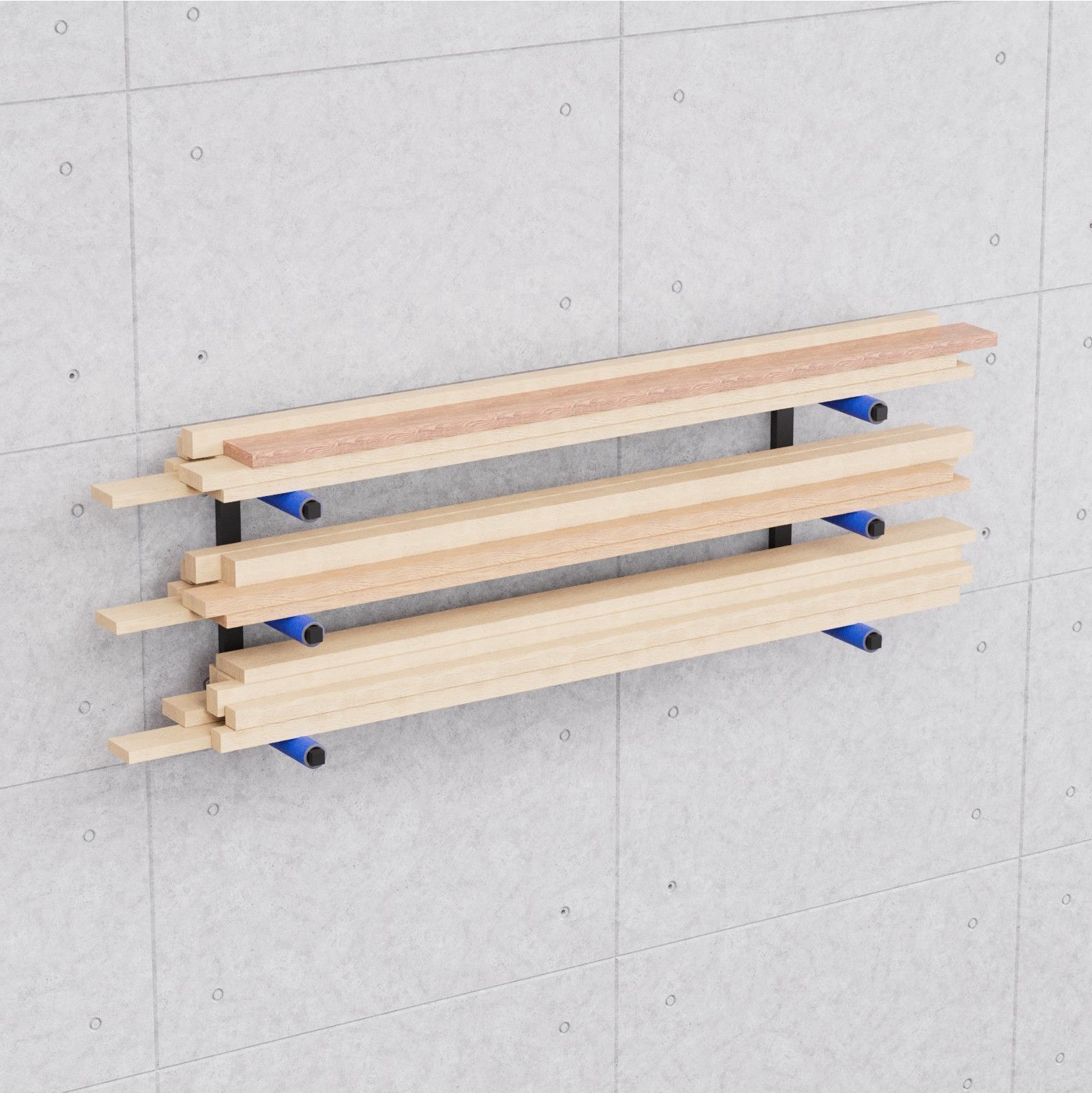 QLS Wandhalterung Werkstattregal Holzregal Wandbefestigung Garage 3 Ebenen Blau 10339