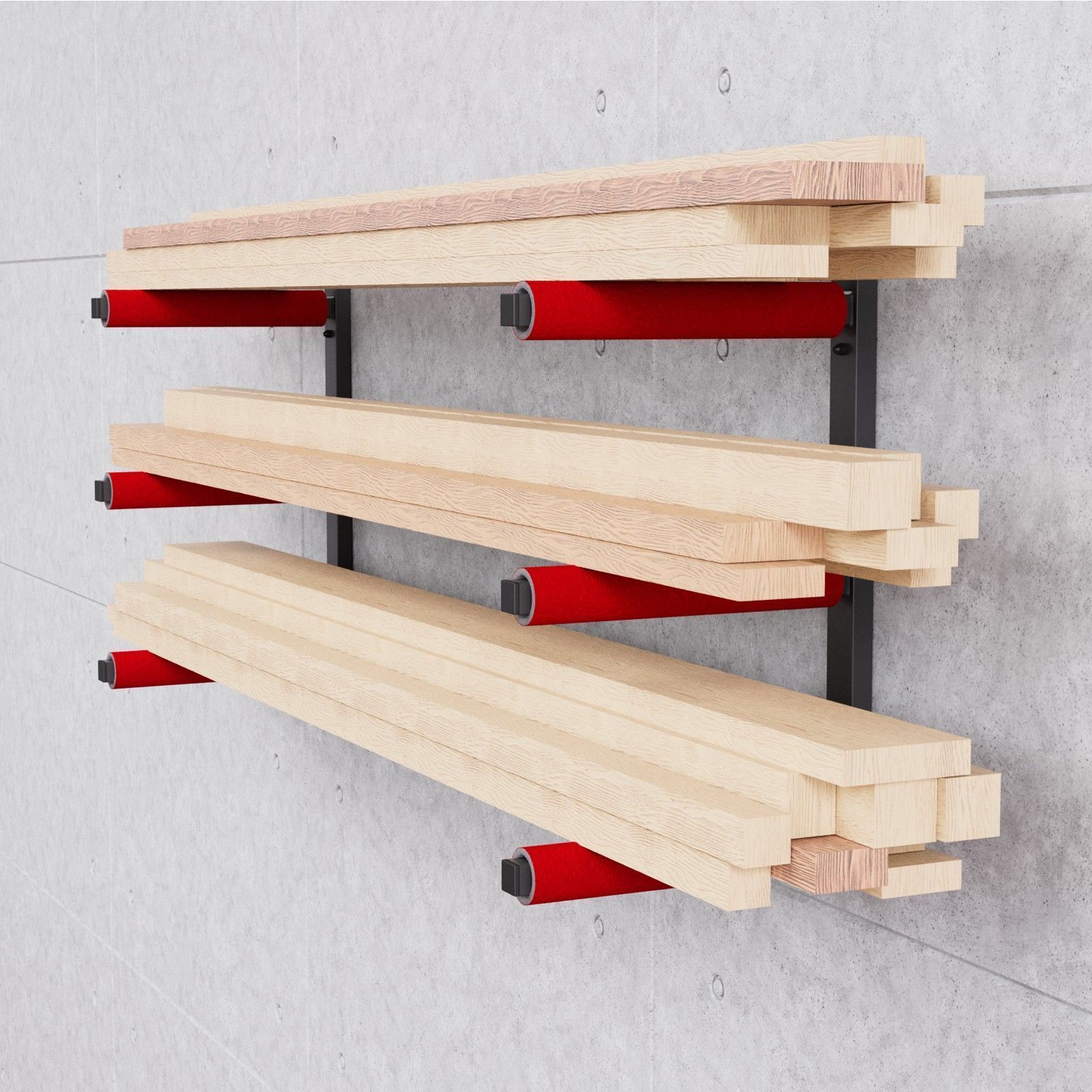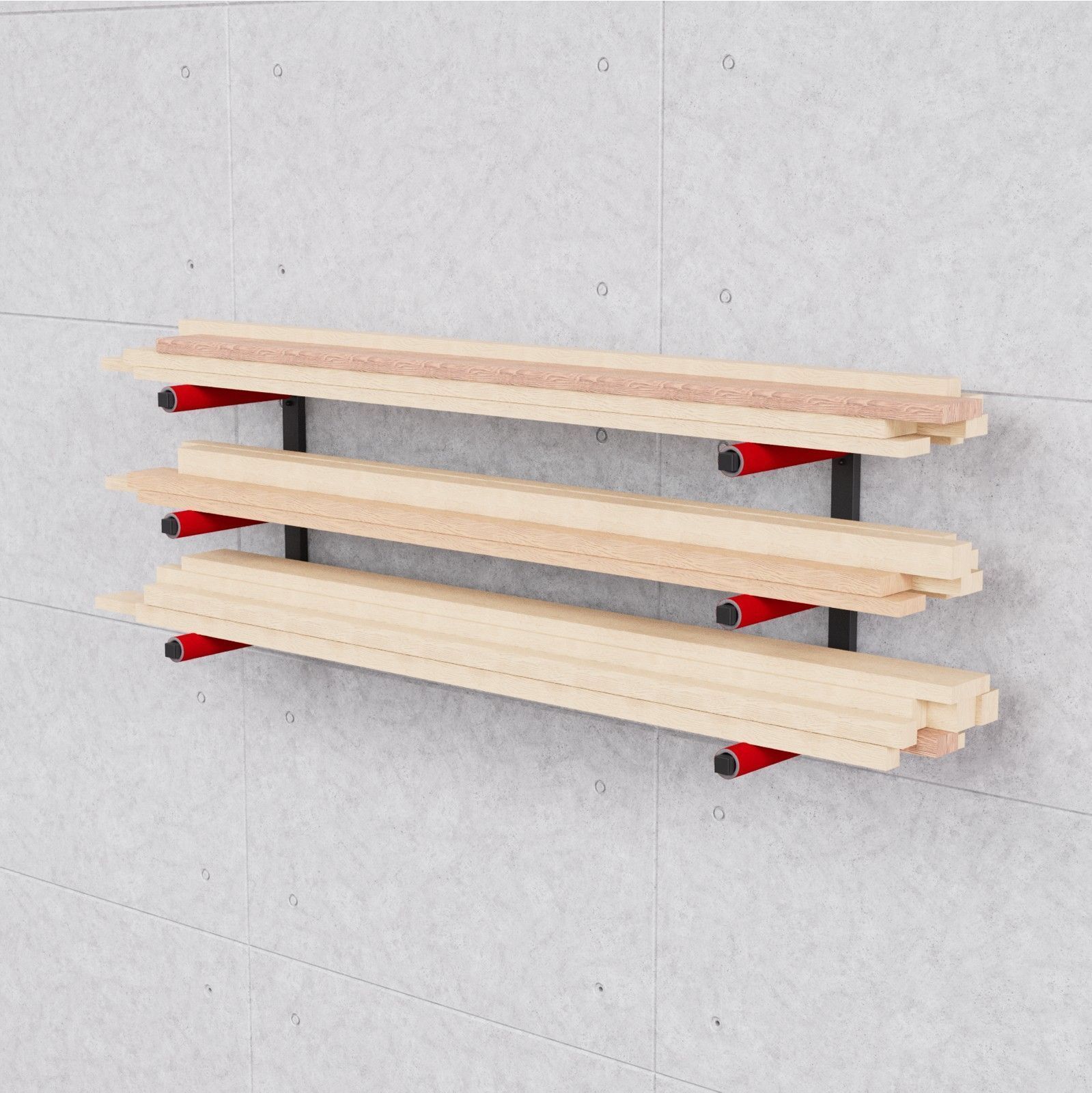 QLS Wandhalterung Werkstattregal Holzregal Wandbefestigung Garage 3 Ebenen Rot 10338