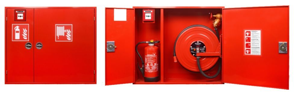 Wandhydrant Typ F DIN 14461-1 Komplett Feuerlöscherkasten Druckknopfmelder