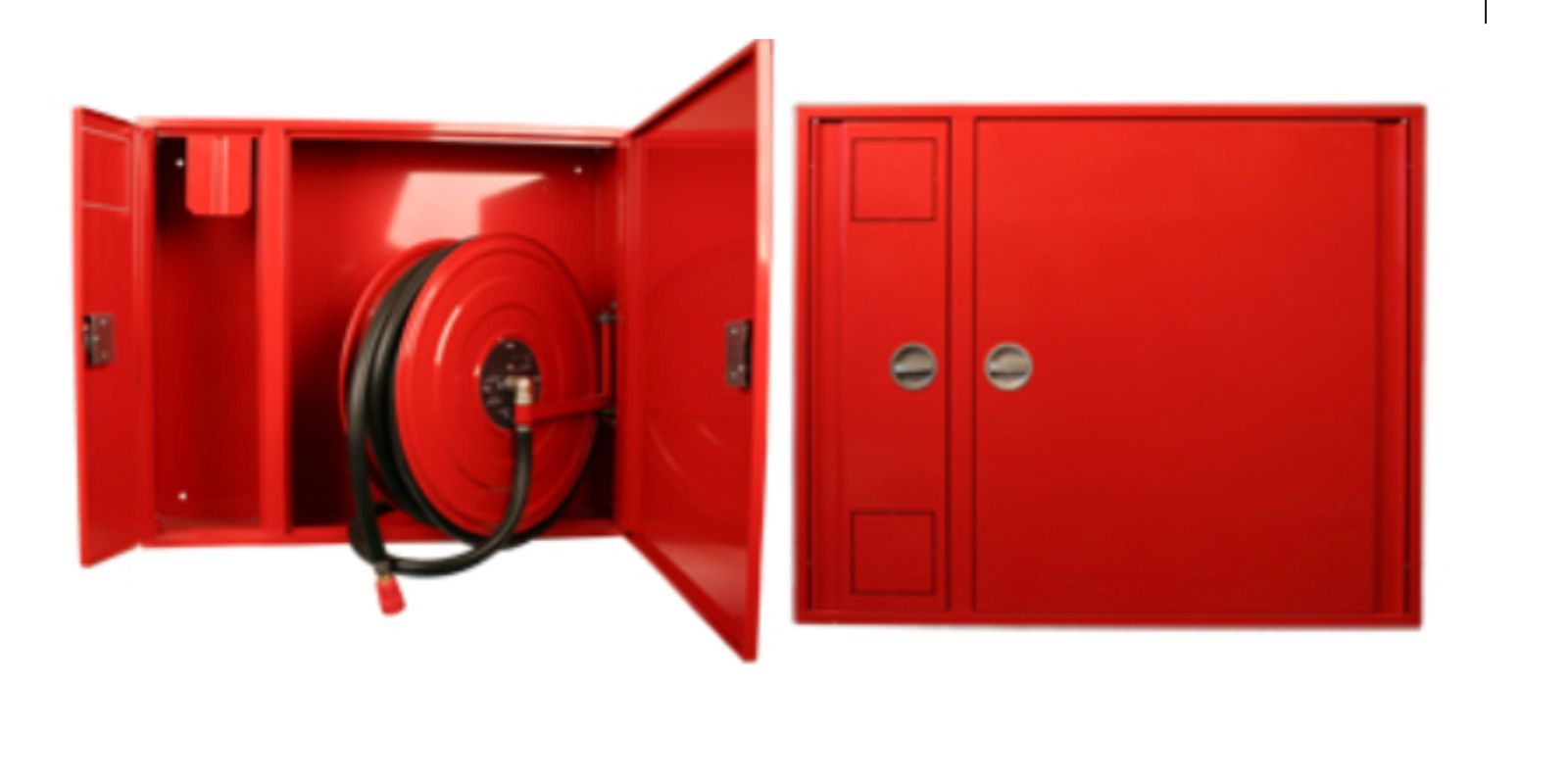 Wandhydranten mit formstabilem Schlauch Typ S nach DIN 14461-1 mit Schlauchhaspel nach DIN EN 671-1 zum Anschluss an die Trinkwasserleitung nach DIN 1988-6 zur Erstbrandbekämpfung durch Laien Aufputzschrank Bauart C, inkl. Feuerlöscherfach linke Seite 990 x 740 x 220 mm (Breite x Höhe x Tiefe) nach