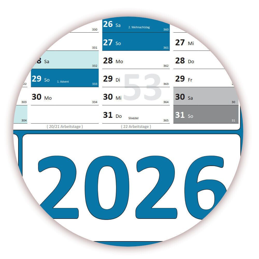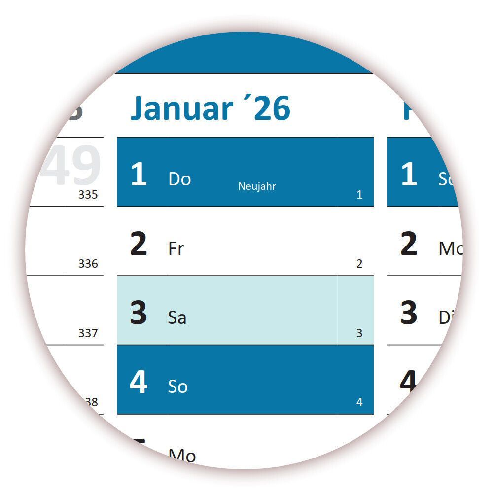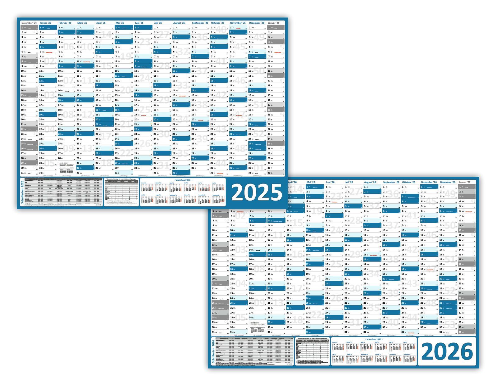 Wandkalender DIN A1 2025 + 2026 blau gerollt Wandplaner Ferien & Feiertage