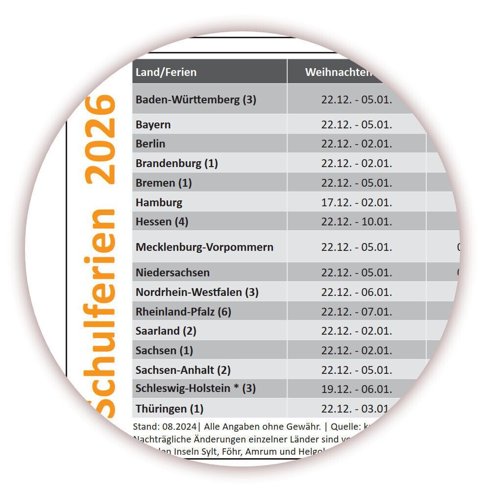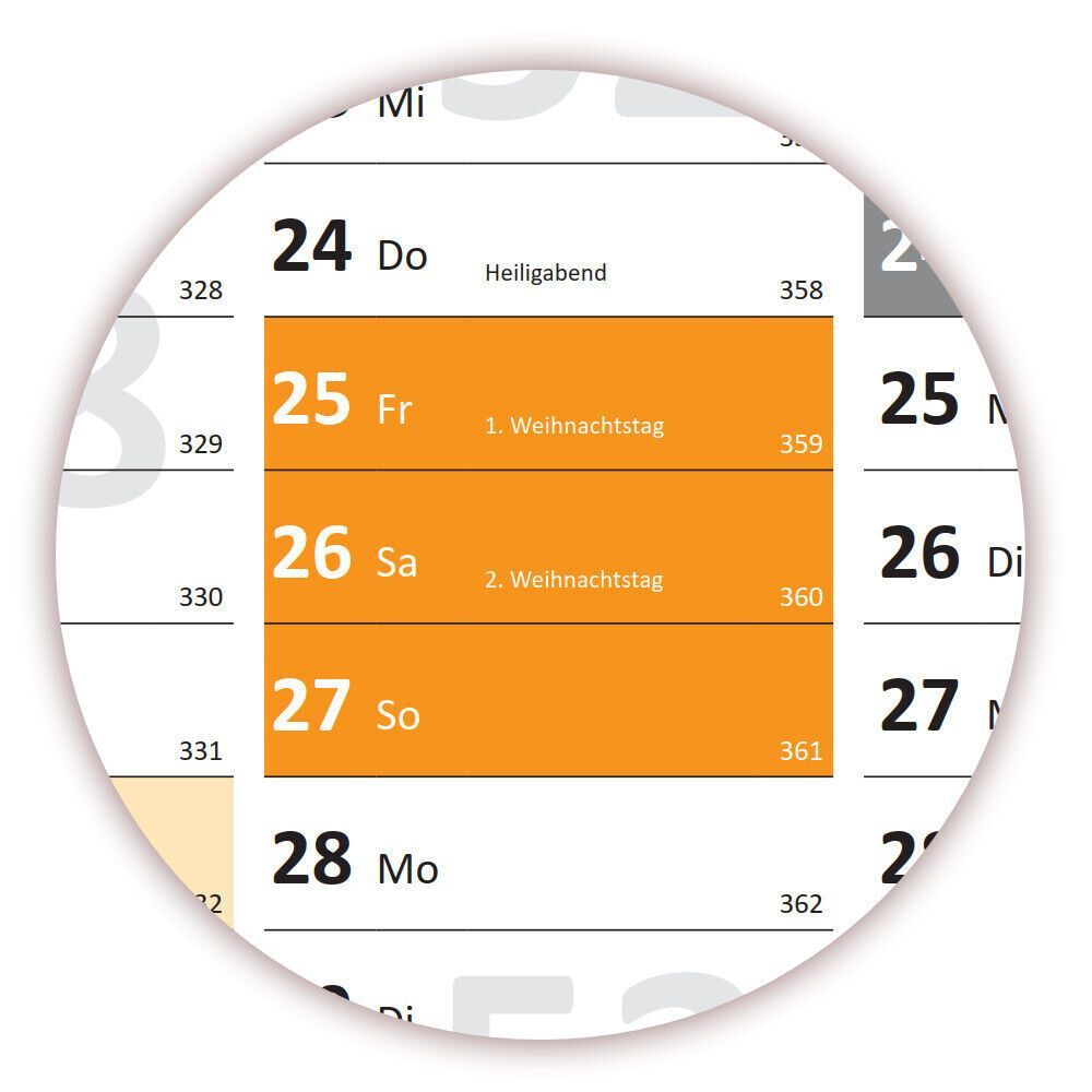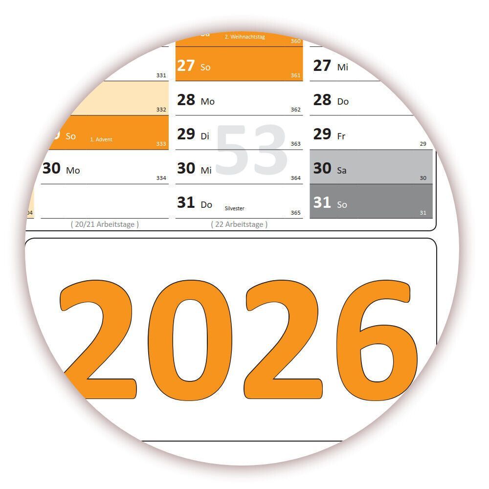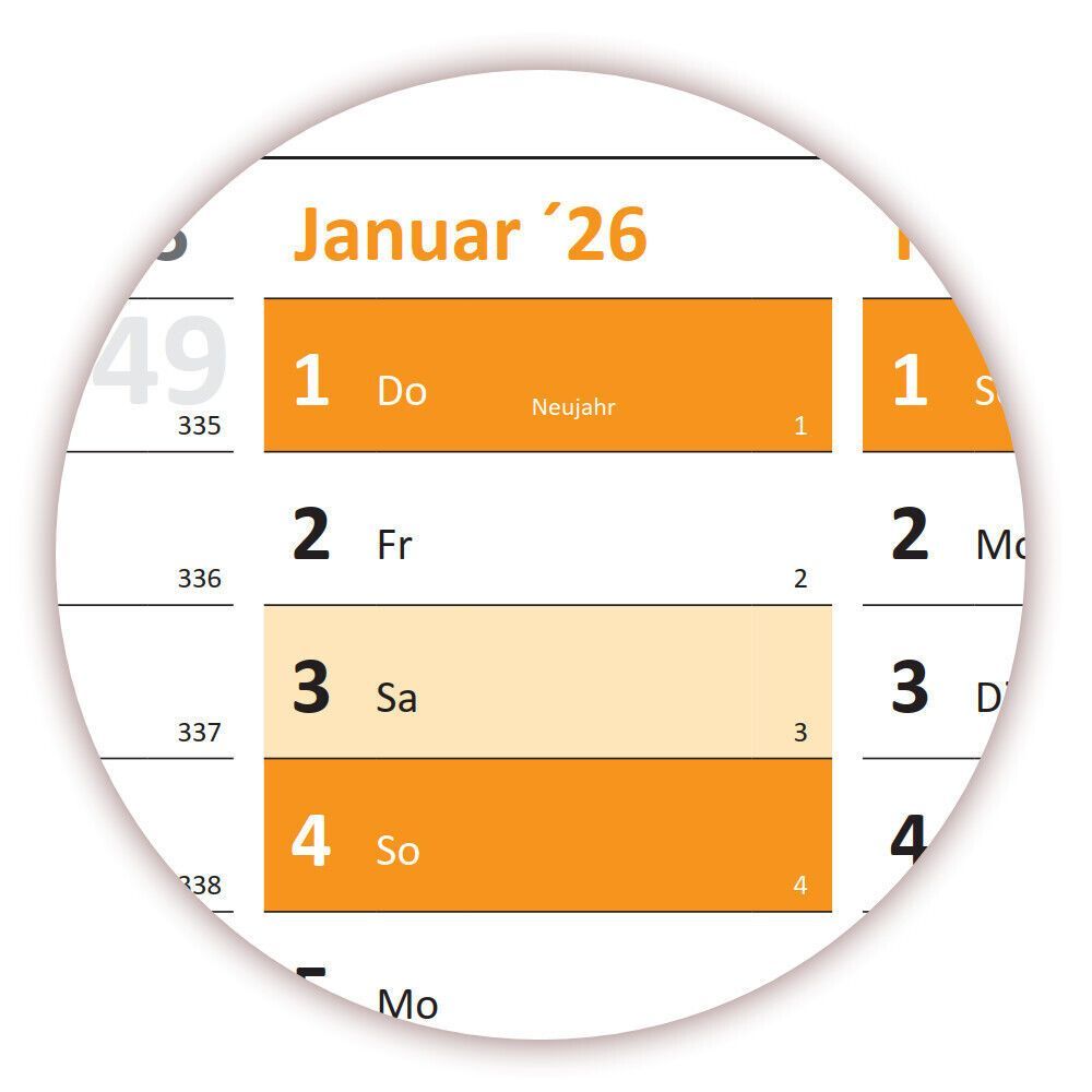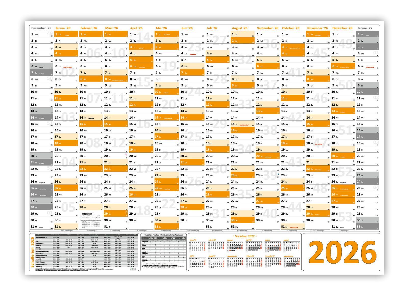Wandkalender DIN A1 2026 orange gerollt Wandplaner Ferien & Feiertage