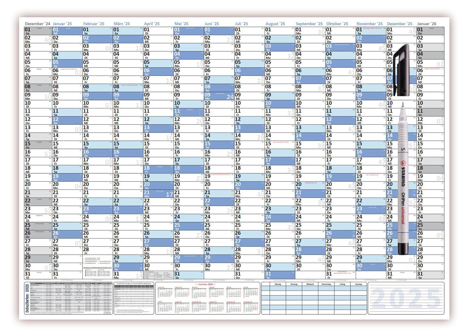 Wandkalender DIN B1 2025 nass abwischbar + Folienstift 100x70cm Kalender gerollt