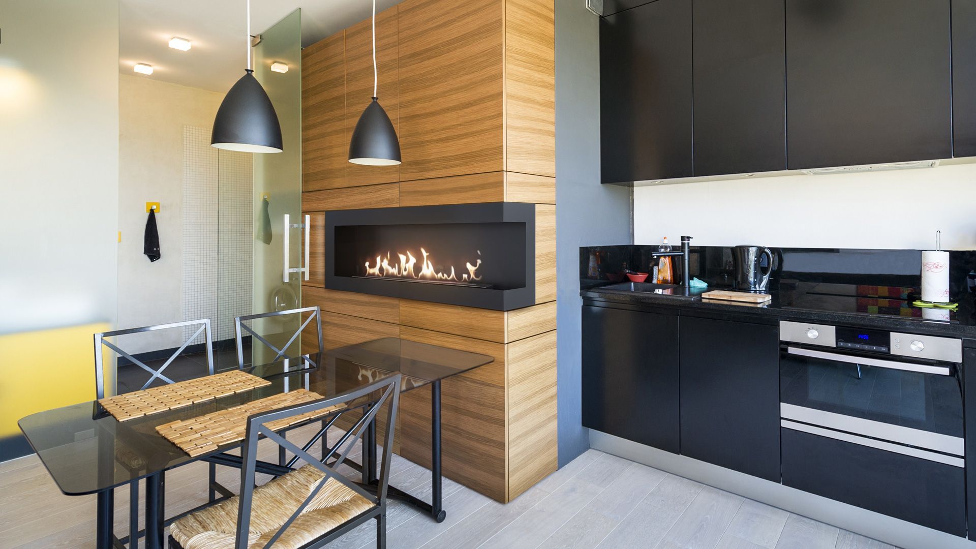 Wandkamin Bioethanol DELTA 1200 TÜV rechts Deko Steine Set