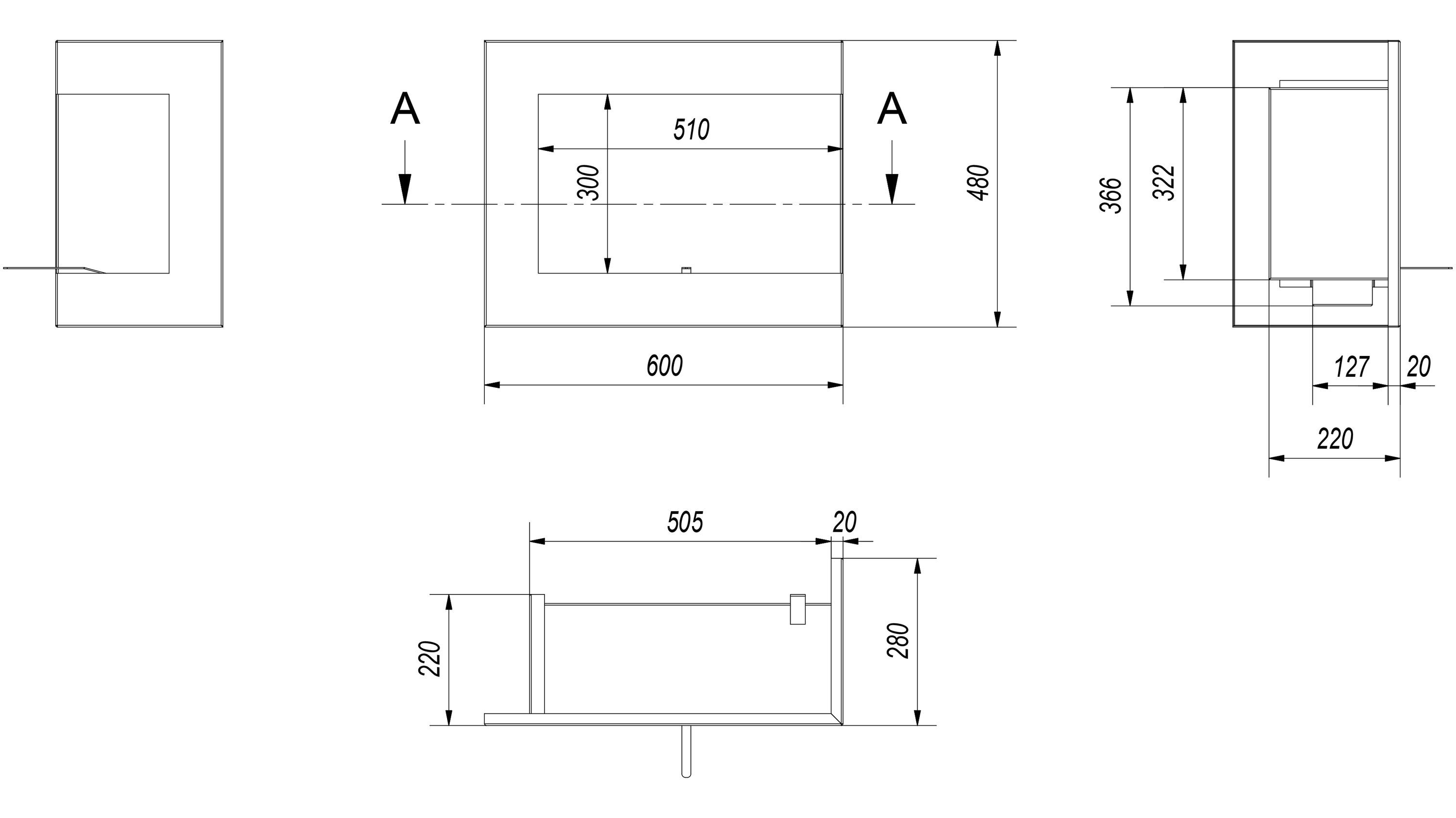 Wandkamin Bioethanol DELTA 600 TÜV rechts
