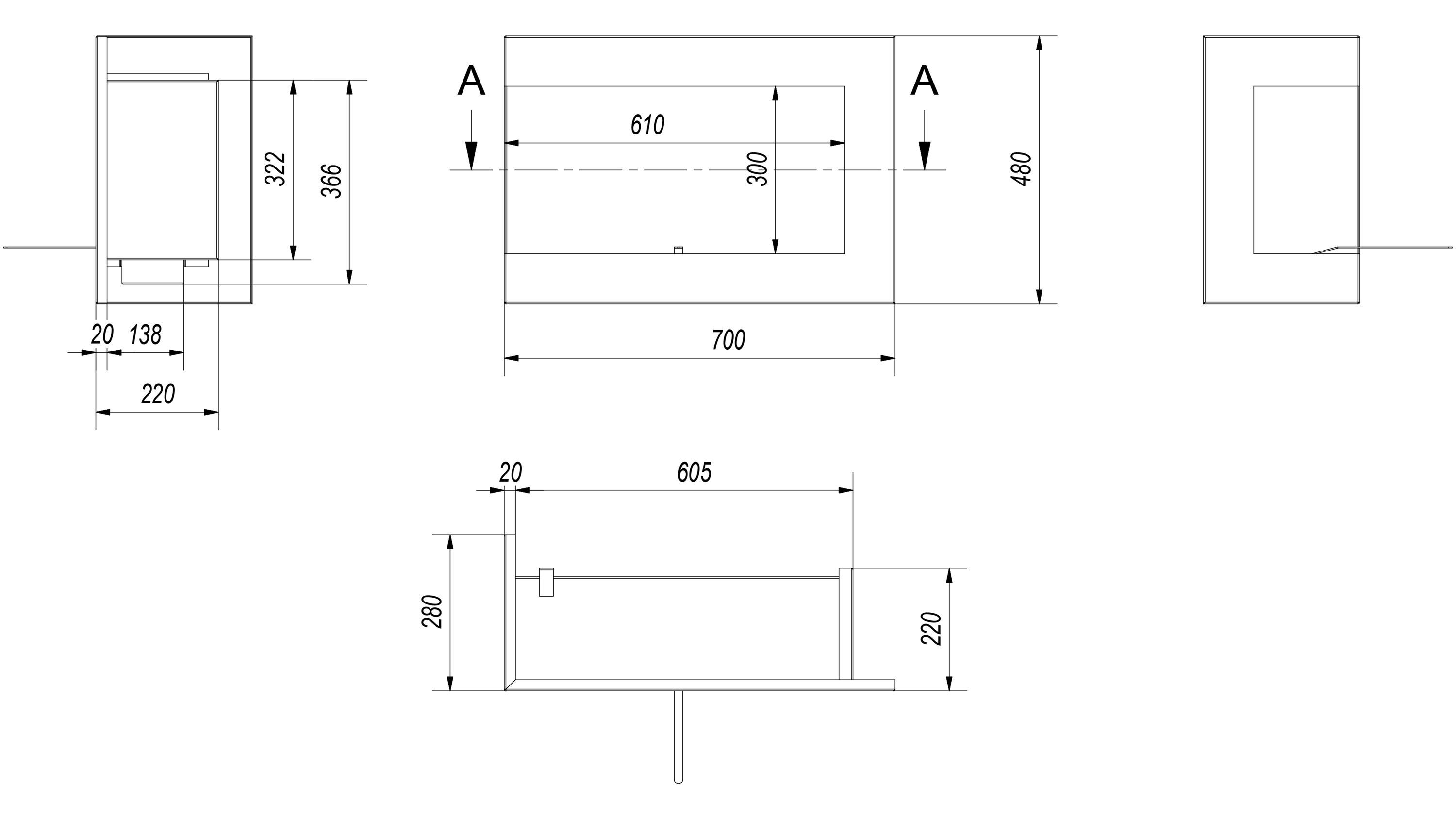 Wandkamin Bioethanol DELTA 700 TÜV links