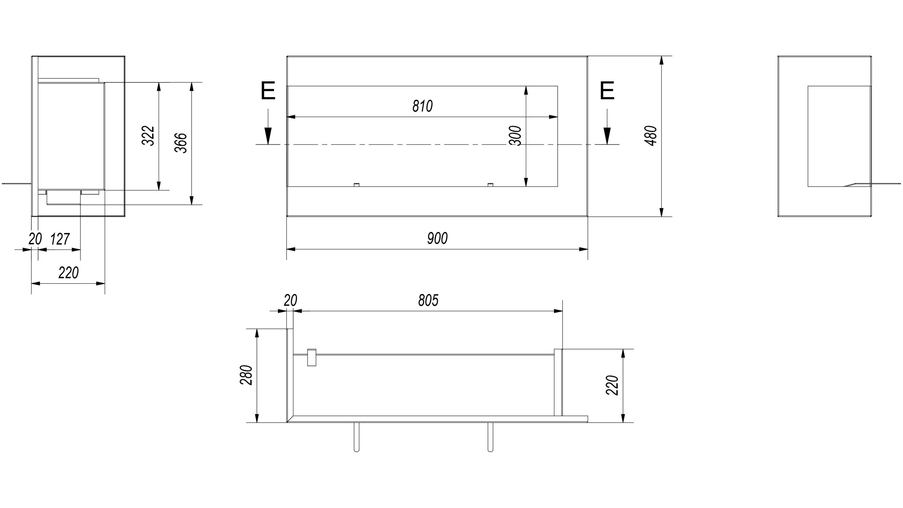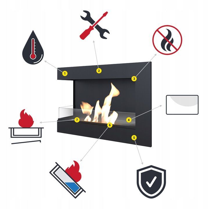 Wandkamin Bioethanol DELTA 900 TÜV links Deko Steine Set