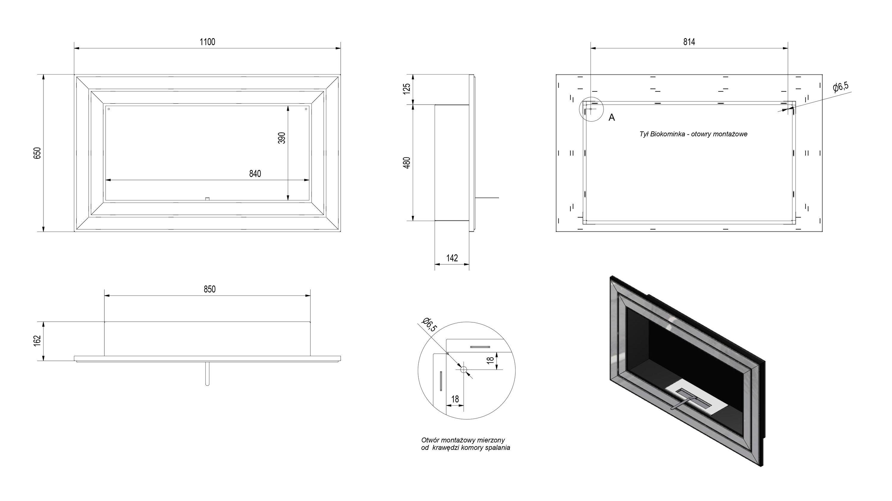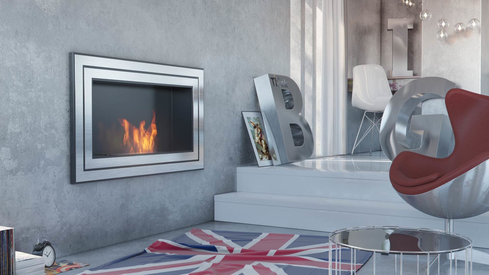 Wandkamin Bioethanol JULIET 1100 TÜV Deko Steine Set