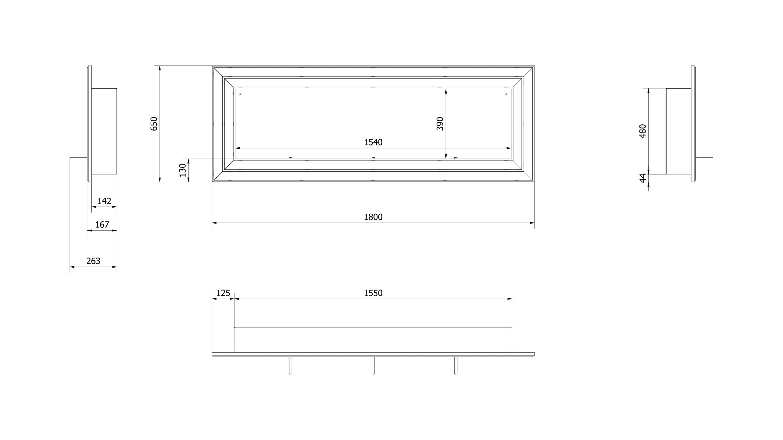 Wandkamin Bioethanol JULIET 1800 TÜV schwarz